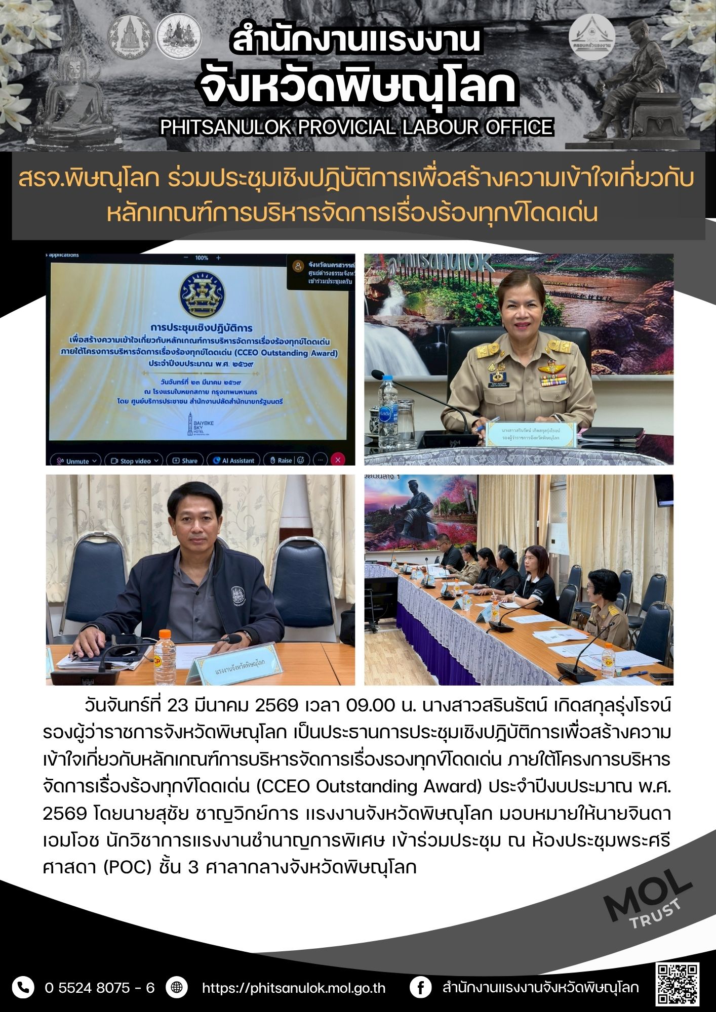 สรจ.พิษณุโลก ร่วมประชุมเชิงปฏิบัติการเพื่้อสร้างความเข้าใจเกี่ยวกับ หลักเกณฑ์การบริหารจัดการเรื่องร้องทุกข์โดดเด่น