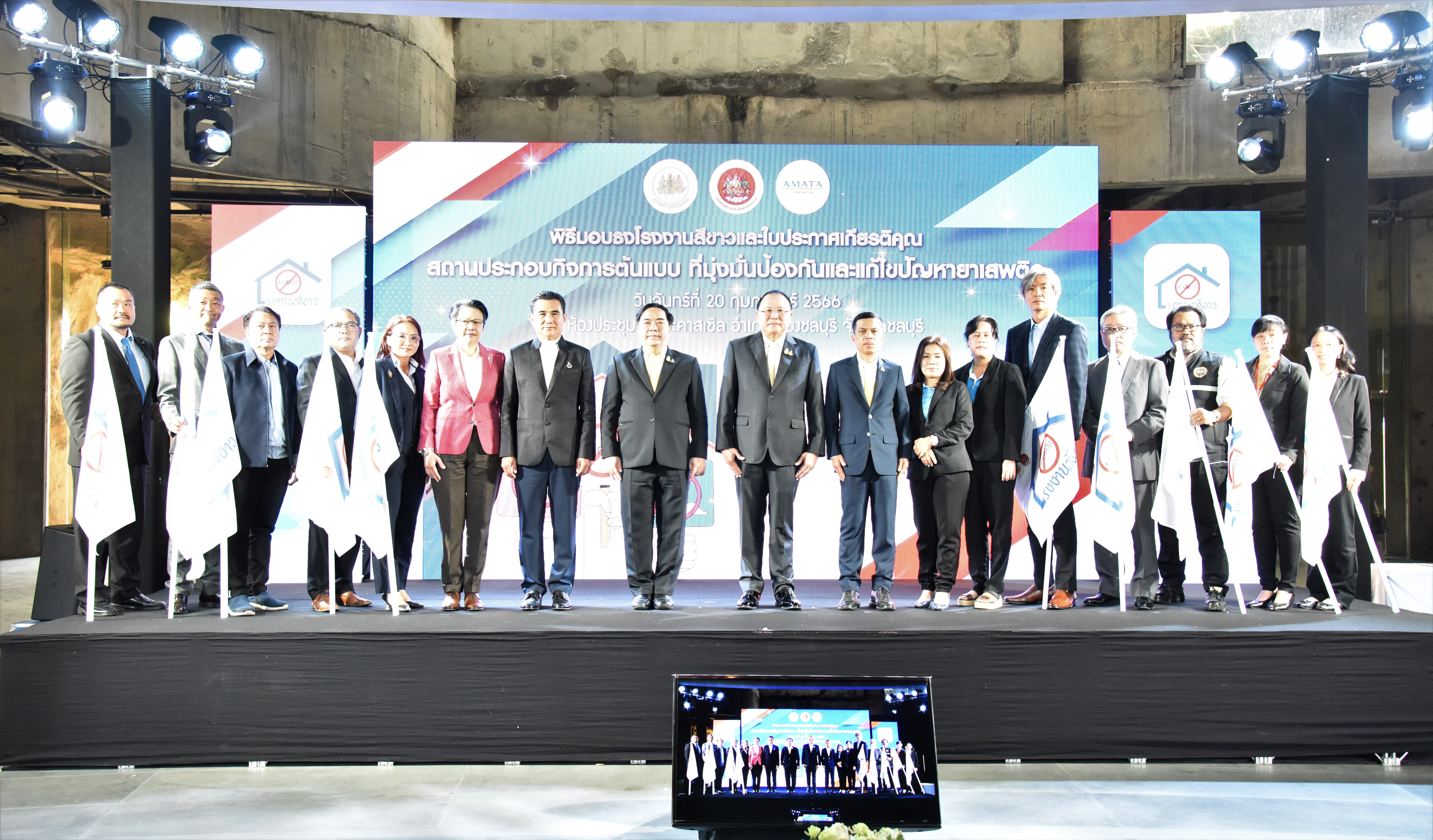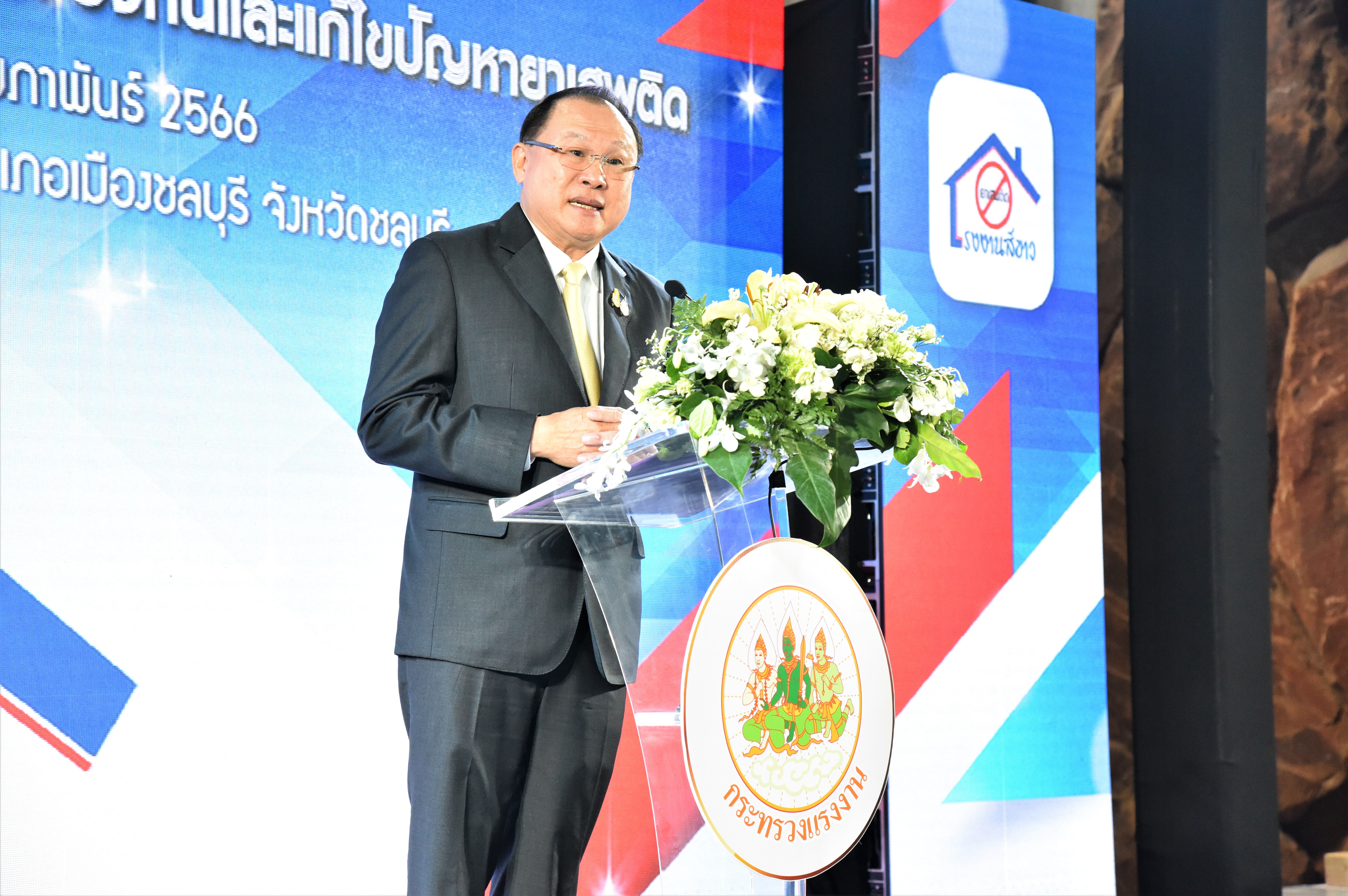 วันที่ 20 กุมภาพันธ์ 2566 นายสุชาติ ชมกลิ่น รัฐมนตรีว่าการกระทรวงแรงงาน มอบหมายให้ นายสุรชัย ชัยตระกูลทอง ผู้ช่วยรัฐมนตรีประจำกระทรวงแรงงาน เป็นประธานในพิธีมอบธงและประกาศเกียรติคุณให้แก่สถานประกอบกิจการต้นแบบ 10 แห่ง โดยมี นายสุเทพ ชิตยวงษ์ เลขานุการรัฐมนตรีว่าการกระทรวงแรงงาน นายสุทธิ สุโกศล ประจำสำนักเลขาธิการนายกรัฐมนตรี ปฏิบัติหน้าที่ประจำกระทรวงแรงงาน ร่วมเป็นเกียรติในพิธีเปิดโครงการโรงงานสีขาวป้องกันยาเสพติดฯ ณ ห้องประชุมอมตะคาสเซิล นิคม อมตะซิตี้ จังหวัดชลบุรี สร้างแรงบันดาลใจสถานประกอบกิจการให้ความสำคัญในการป้องกันและแก้ไขปัญหายาเสพติด