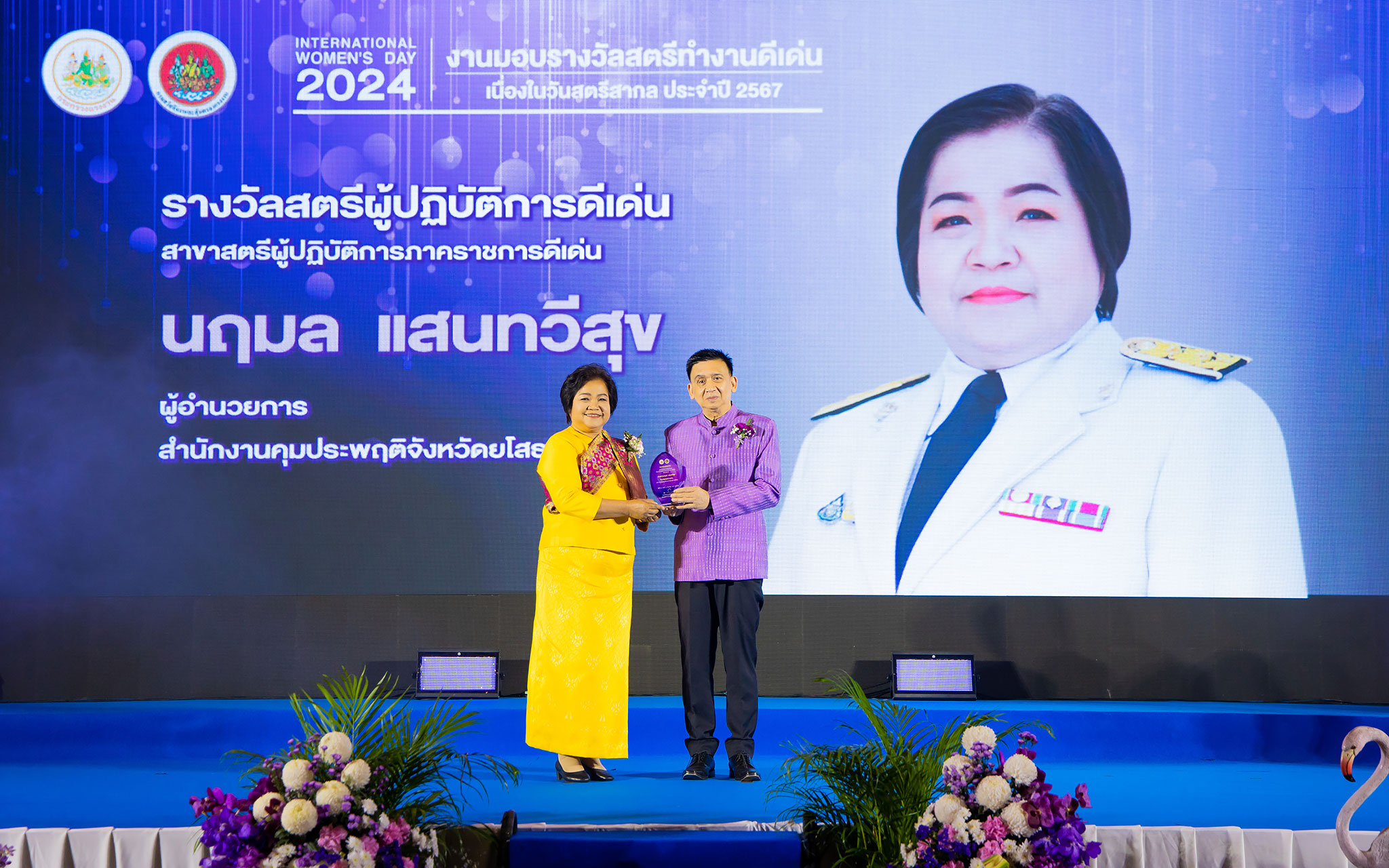 On March 8, 2024, the Permanent Secretary of Labour, Mr. Phairoj Chotikasathien, chaired the award ceremony for outstanding working women On International Women’s Day 2024. The event honoured 31 female role models who create valuable work and have developed their potential equally and equitably. The Ministry of Labour is ready to strengthen and drive the workforce’s welfare toward social and economic development sustainably. The occasion took place at the Miracle Grand Convention Hotel in Bangkok. The Deputy Permanent Secretary of Labour, Mr. Wannarat Srisuksai, the Legal Advisor and Acting Deputy Permanent Secretary of Labour, Lieutenant Saroj Komkhai, the Assistant to the Permanent Secretary of Labour, Ms. Kornjirat Pongjansat, the Department of Employment’s Deputy Director-Generals and Acting Inspector-General to the Ministry of Labour, Ms. Bunyawee Khaipan and Mr. Santi Nantasuwan, and the Deputy Secretary-General of the Social Security Office and Acting Inspector-General to the Ministry of Labour, Mrs. Marasri Jairangsi, also joined the event.