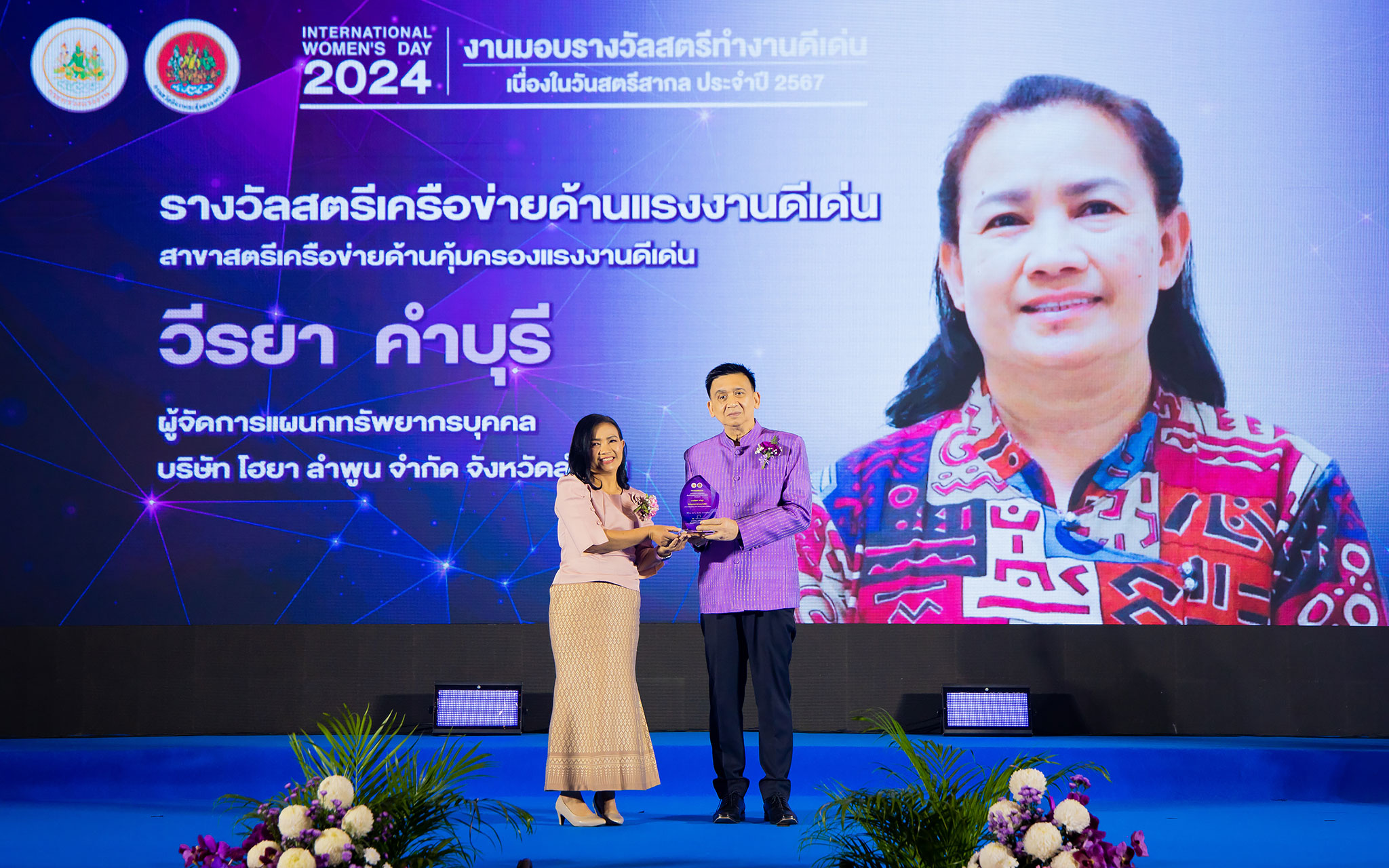 วันที่ 8 มีนาคม 2567 นายไพโรจน์ โชติกเสถียร ปลัดกระทรวงแรงงาน เป็นประธานมอบรางวัลสตรีทำงานดีเด่น เนื่องในวันสตรีสากล ประจำปี 2567 ยกย่อง 31 สตรีต้นแบบสร้างสรรค์งานที่มีคุณค่า พัฒนาศักยภาพตนเองได้อย่างเสมอภาคและเท่าเทียม พร้อมเสริมพลังในการร่วมขับเคลื่อนสวัสดิการแรงงาน สู่การพัฒนาสังคมเศรษฐกิจ และประเทศชาติได้อย่างยั่งยืน ณ โรงแรมมิราเคิล แกรนด์ คอนเวนชั่น กรุงเทพฯ โดยมี นายวรรณรัตน์ ศรีสุขใส รองปลัดกระทรวงแรงงาน เรือเอก สาโรจน์ คมคาย ที่ปรึกษากฎหมาย รักษาราชการแทนรองปลัดกระทรวงแรงงาน นางสาวกรจิรัฏฐ์ พงจันทร์ศธร ผู้ช่วยปลัดกระทรวงแรงงาน นางสาวบุณยวีร์ ไขว้พันธุ์ รองอธิบดีกรมการจัดหางาน รักษาการในตำแหน่งผู้ตรวจราชการกระทรวงแรงงาน นายสันติ นันตสุวรรณ รองอธิบดีกรมการจัดหางาน รักษาการในตำแหน่งผู้ตรวจราชการกระทรวงแรงงาน พร้อมด้วย นางมารศรี ใจรังษี รองเลขาธิการสำนักงานประกันสังคม รักษาการในตำแหน่งผู้ตรวจราชการกระทรวงแรงงาน ร่วมเป็นเกียรติในงาน