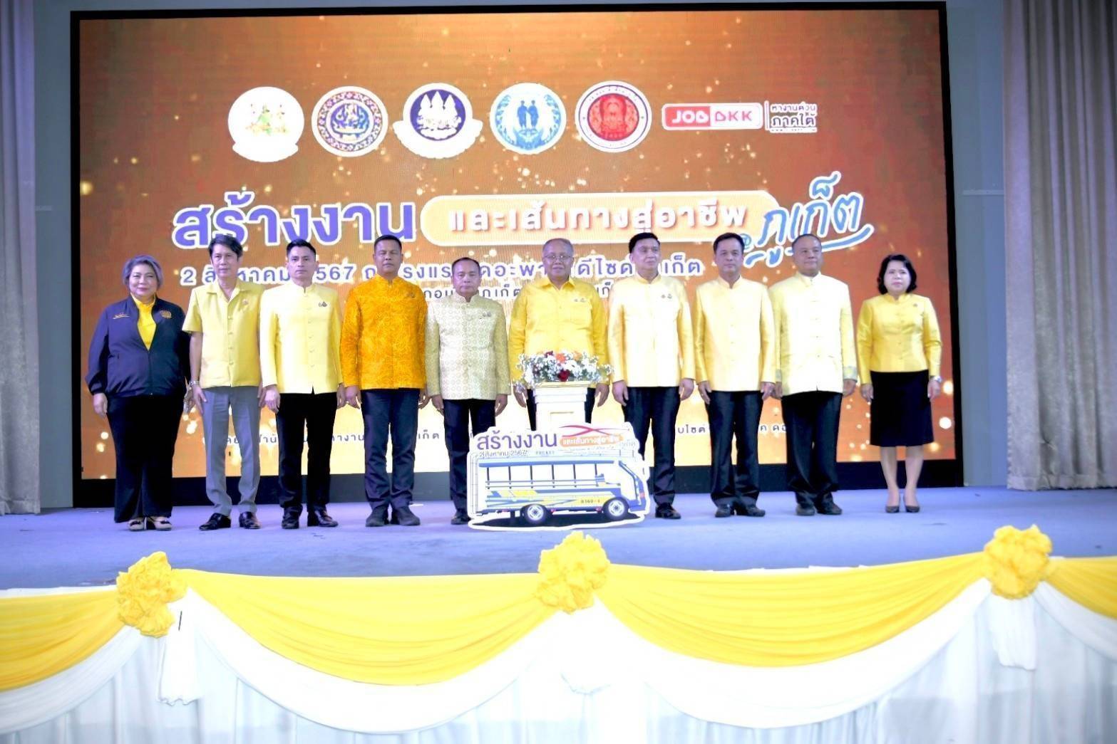 วันที่ 2 สิงหาคม 2567 นายพิพัฒน์ รัชกิจประการ รัฐมนตรีว่าการกระทรวงแรงงาน มอบหมายนายสิรภพ ดวงสอดศรี ผู้ช่วยรัฐมนตรีประจำกระทรวงแรงงาน เป็นประธานในพิธีเปิดงาน “สร้างงานและเส้นทางสู่อาชีพ @ภูเก็ต” โดยมีนายสิบหมื่นชัย โพธิสินธุ์ รองอธิบดีกรมการจัดหางาน กล่าวรายงาน นายอารี ไกรนรา เลขานุการรัฐมนตรีว่าการกระทรวงแรงงาน นายไพโรจน์ โชติกเสถียร ปลัดกระทรวงแรงงาน ร่วมเป็นเกียรติ นายกองเอกอดุลย์ ชูทอง รองผู้ว่าราชการจังหวัดภูเก็ต นายพิชิต สิงห์ทองคำ จัดหางานจังหวัดภูเก็ต พร้อมด้วยหัวหน้าส่วนราชการสังกัดกระทรวงแรงงานในจังหวัดภูเก็ตให้การต้อนรับ ณ โรงแรม เดอะ พาโก้ ดีไซด์ ภูเก็ต อำเภอเมืองภูเก็ต จังหวัดภูเก็ต
