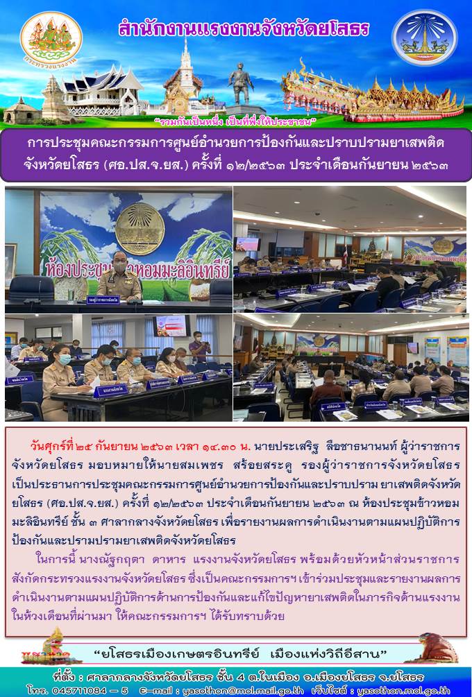 ศูนย์อำนวยการป้องกันและปราบปรามยาเสพติดจังหวัดยโสธร (ศอ.ปส.จ.ยส.) ครั้งที่ 12/2563
