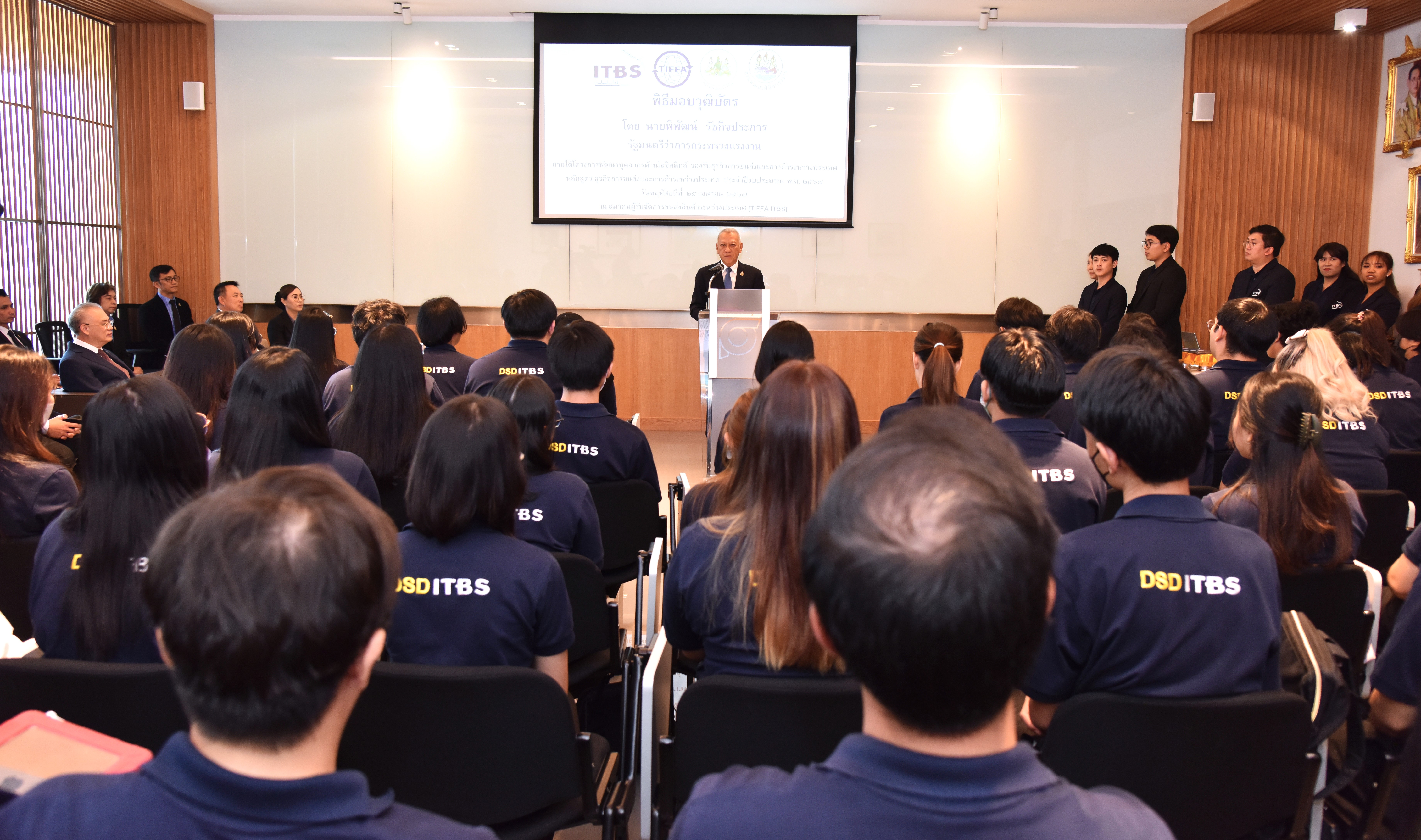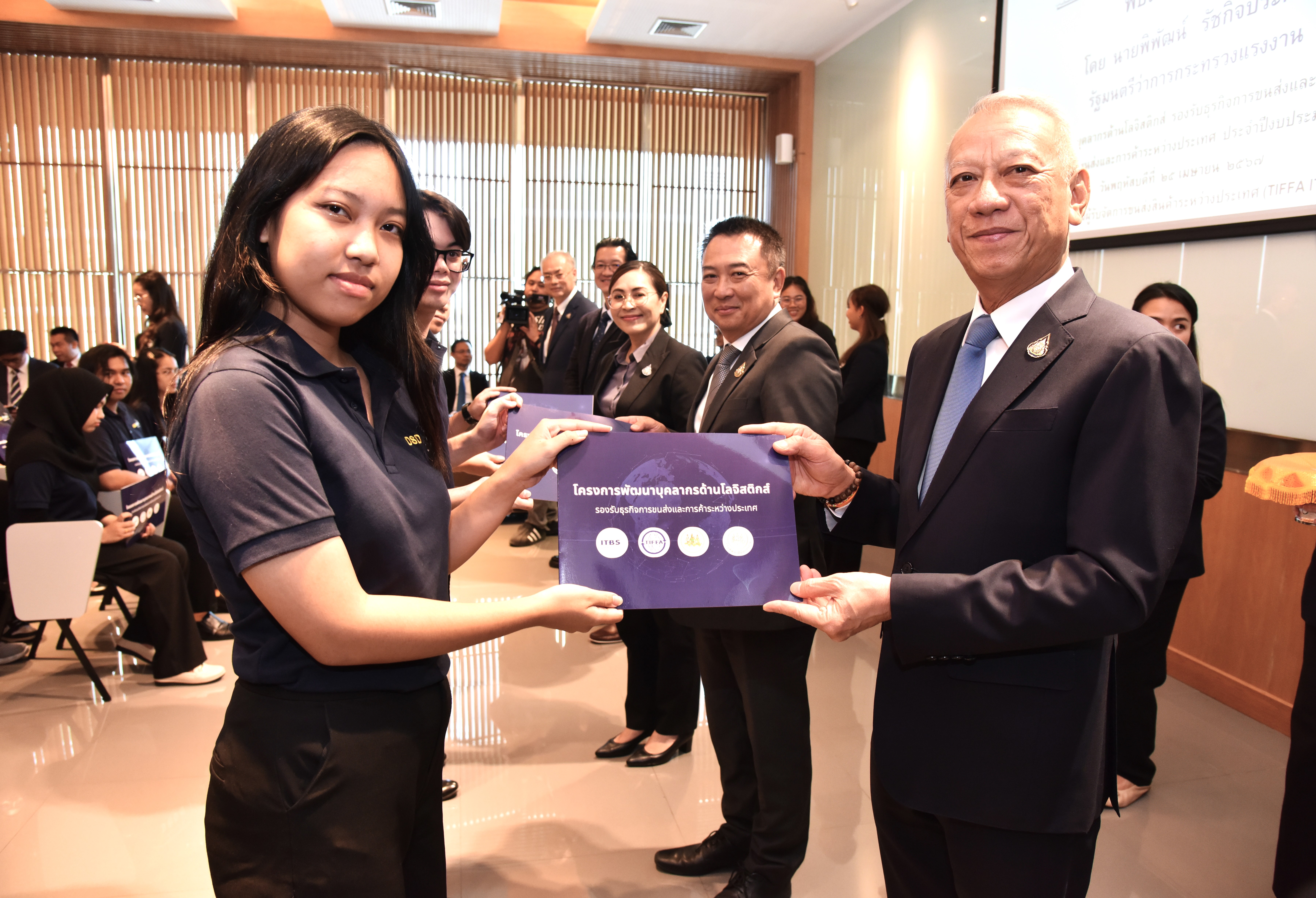 นายพิพัฒน์ รัชกิจประการ รัฐมนตรีว่าการกระทรวงแรงงาน กล่าวว่า ผู้ที่ผ่านการฝึกอบรมหลักสูตรธุรกิจขนส่งและการค้าระหว่างประเทศในครั้งนี้จะเป็นกำลังแรงงานที่สำคัญในการขับเคลื่อนอุตสาหกรรมโลจิสติกส์ของประเทศให้บรรลุเป้าหมาย ซึ่งปัจจุบันการเปลี่ยนแปลงในอุตสาหกรรม บริบทต่างๆ การดำเนินชีวิตประจำวันที่มีความทันสมัยและรวดเร็วมากขึ้น ล้วนแล้วแต่ส่งผลให้อุตสาหกรรมโลจิสติกส์เข้ามามีบทบาทการพัฒนาเศรษฐกิจของประเทศ โดยเป็นกลไกที่ส่งผ่านมูลค่าของสินค้าและบริการจากผู้ผลิตไปยังผู้รับหรือผู้บริโภค ดังนั้น ระบบโลจิสติกส์ที่มีประสิทธิภาพจึงเป็นตัวช่วยในการลดต้นทุนและเพิ่มขีดความสามารถในการแข่งขันของประเทศ โดยอุตสาหกรรมโลจิสติกส์จะประสบความสำเร็จหรือไม่ต้องขึ้นอยู่กับการมีกำลังแรงงานที่มีทักษะฝีมือ ความร่วมมือกันระหว่างกรมพัฒนาฝีมือแรงงานกับสมาคมผู้รับจัดการขนส่งสินค้าระหว่างประเทศ (TIFFA) ซึ่งประเทศไทยเป็นศูนย์กลางโลจิติกส์ในอาเซียน จึงเป็นโอกาสที่ดี สำหรับกลุ่มเป้าหมายเป็นบัณฑิตที่จบการศึกษาใหม่ระดับป.ตรี พัฒนาให้มีศักยภาพ ผลิตบุคลากร ตรงกับสายงานโลจิสติกส์ ร่วมกับภาคเอกชนเพื่อป้อนเข้าสู่ตลาดแรงงาน พร้อมรับทำงานทันที
