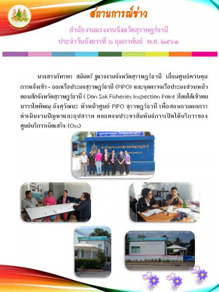 การเยี่ยมศูนย์ควบคุมการแจ้งเข้า – ออกเรือประมงสุราษฎร์ธานี (PIPO) และจุดตรวจเรือประมงส่วนหน้า ดอนสัก จังหวัดสุราษฎร์ธานี