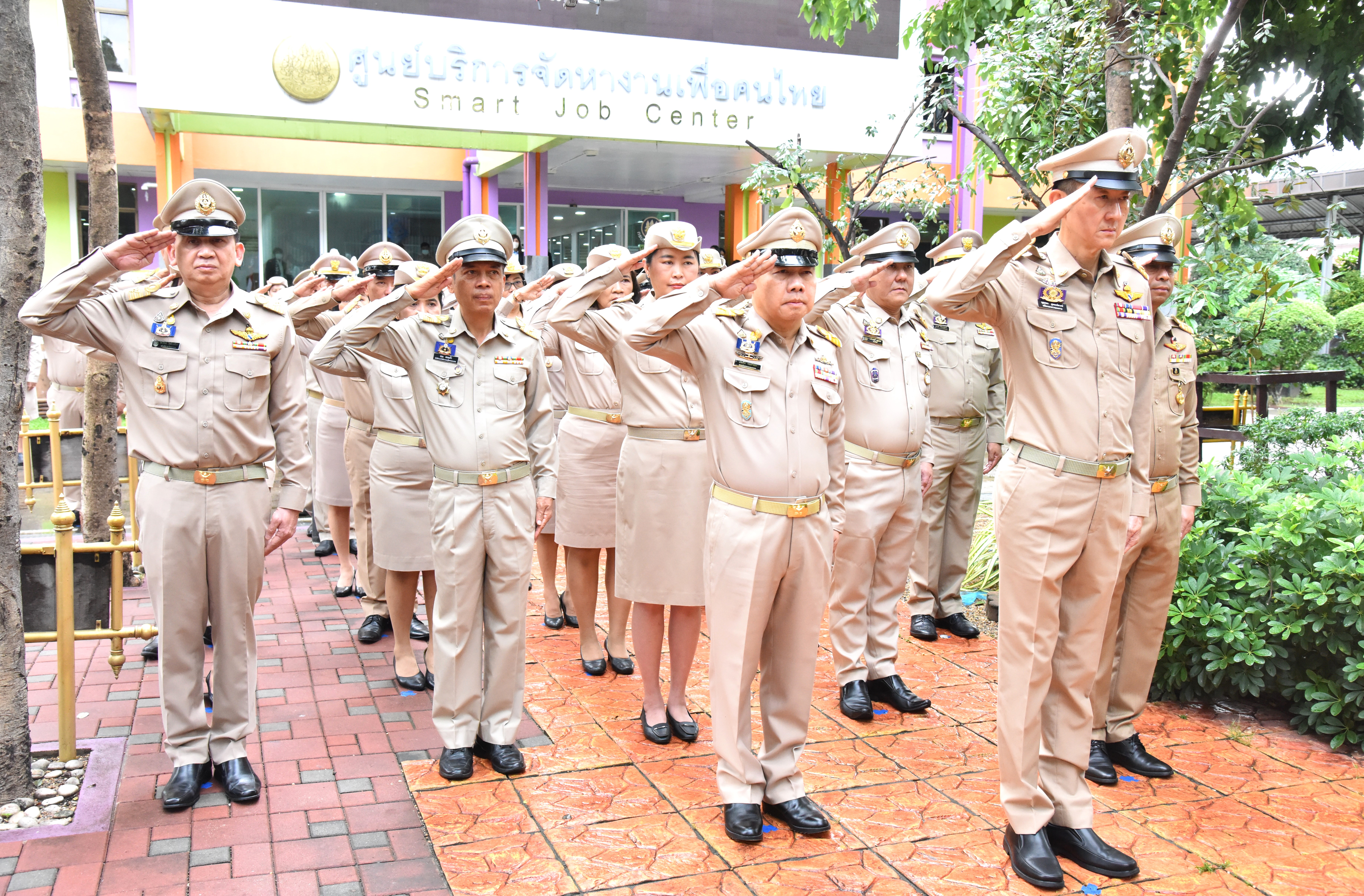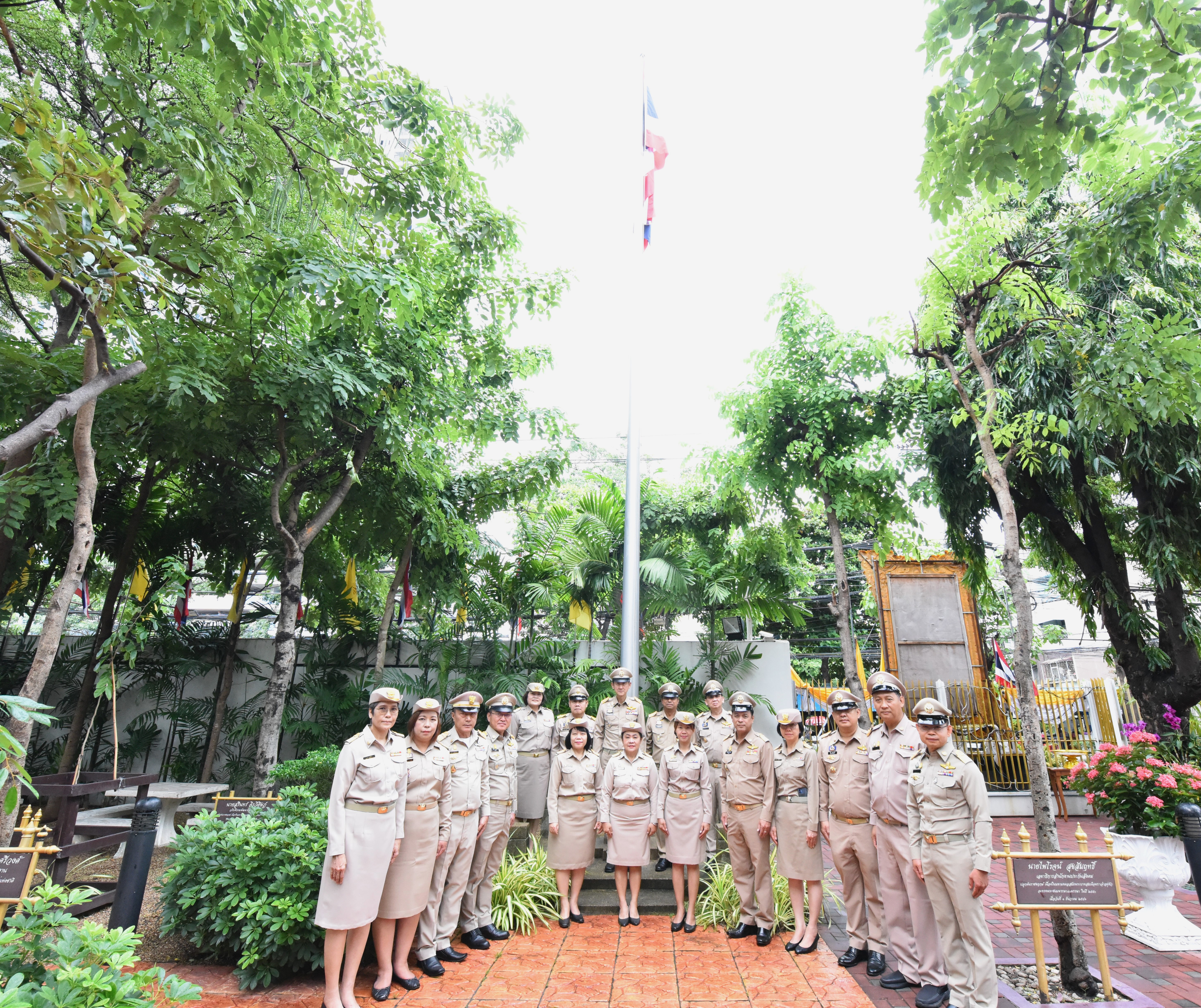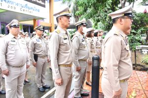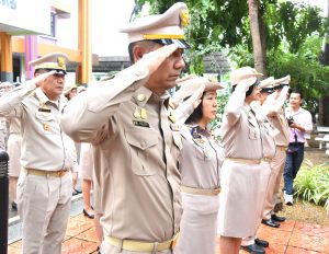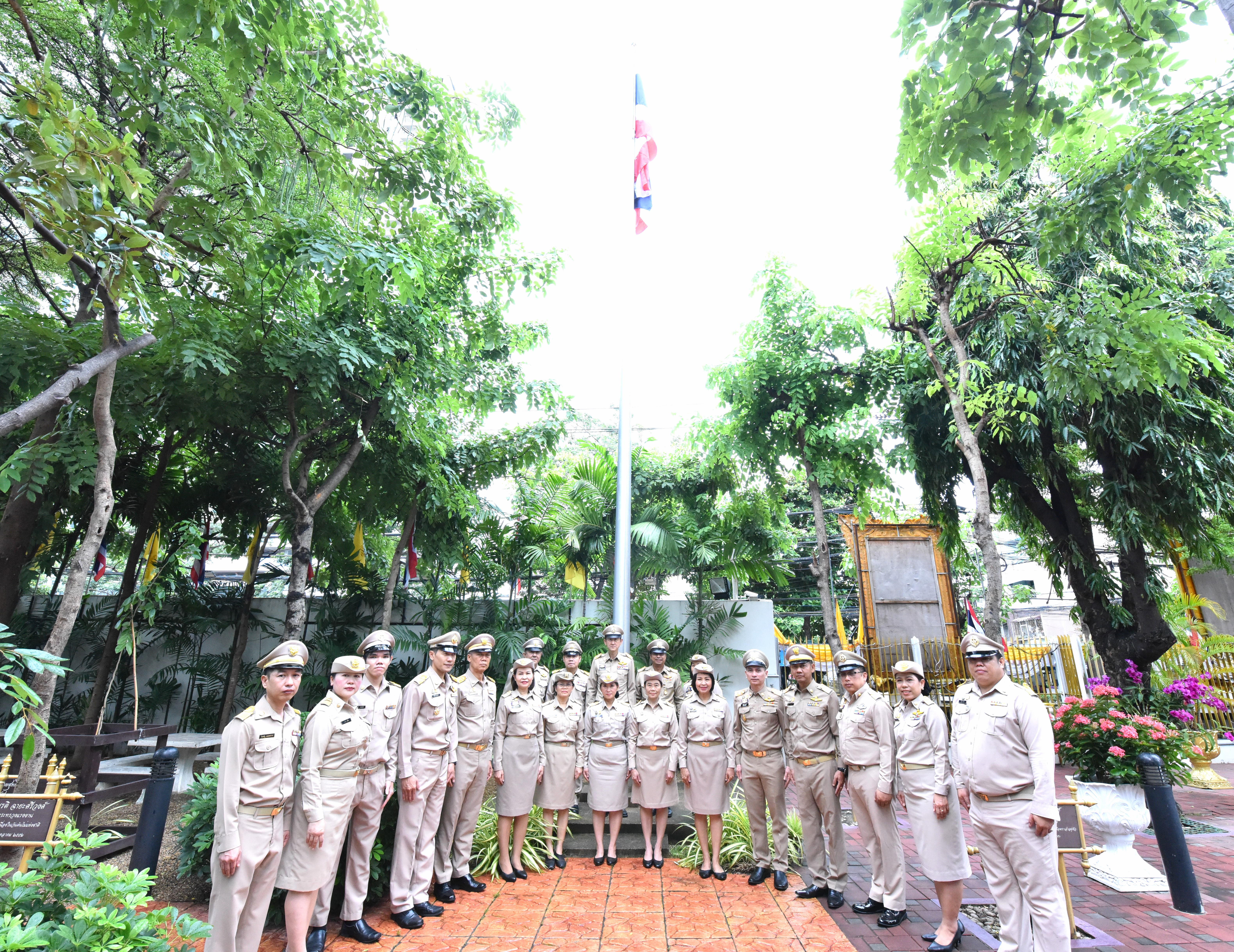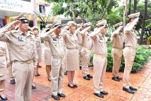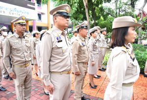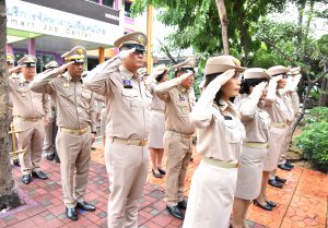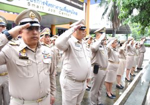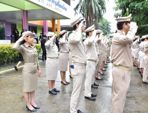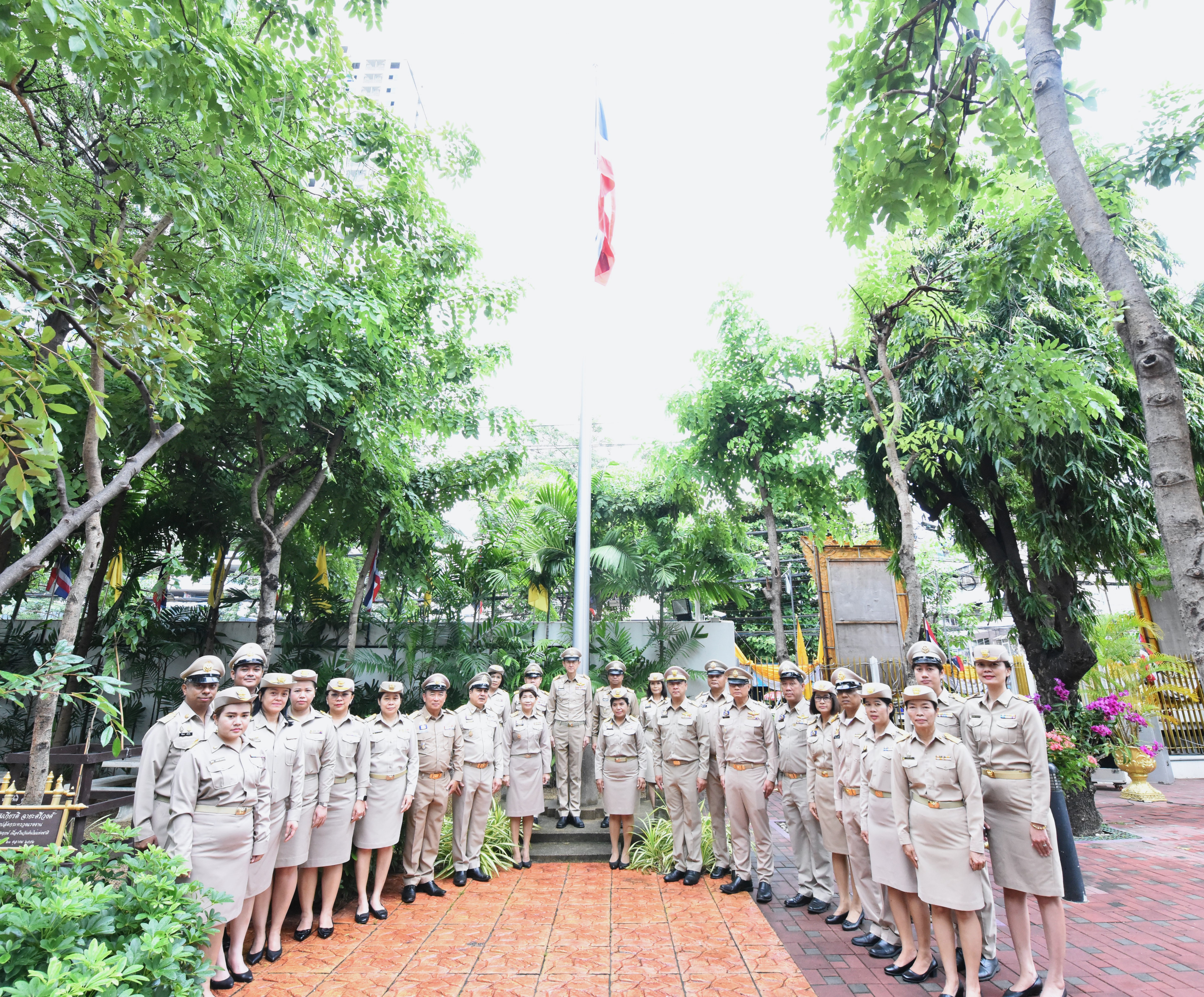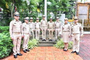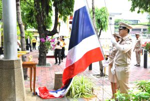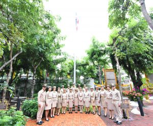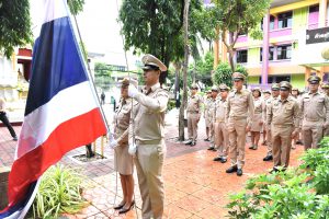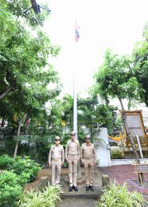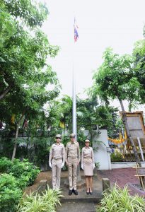 On September 28, 2023, at 08.00 hours, the Permanent Secretary of Labour, Mr. Boonchob Suttamanaswong, chaired the event to honour the national flag and sing the Thai national anthem on Thai National Flag Day 2023. The Deputy Permanent Secretary of Labour, Mr. Prateep Songlamyong, the Deputy Permanent Secretary of Labour, Mr. Wannarat Srisuksai, and senior executives under the Ministry of Labour participated in the activity at the flagpole area in front of the Smart Job Center building, Ministry of Labour.
