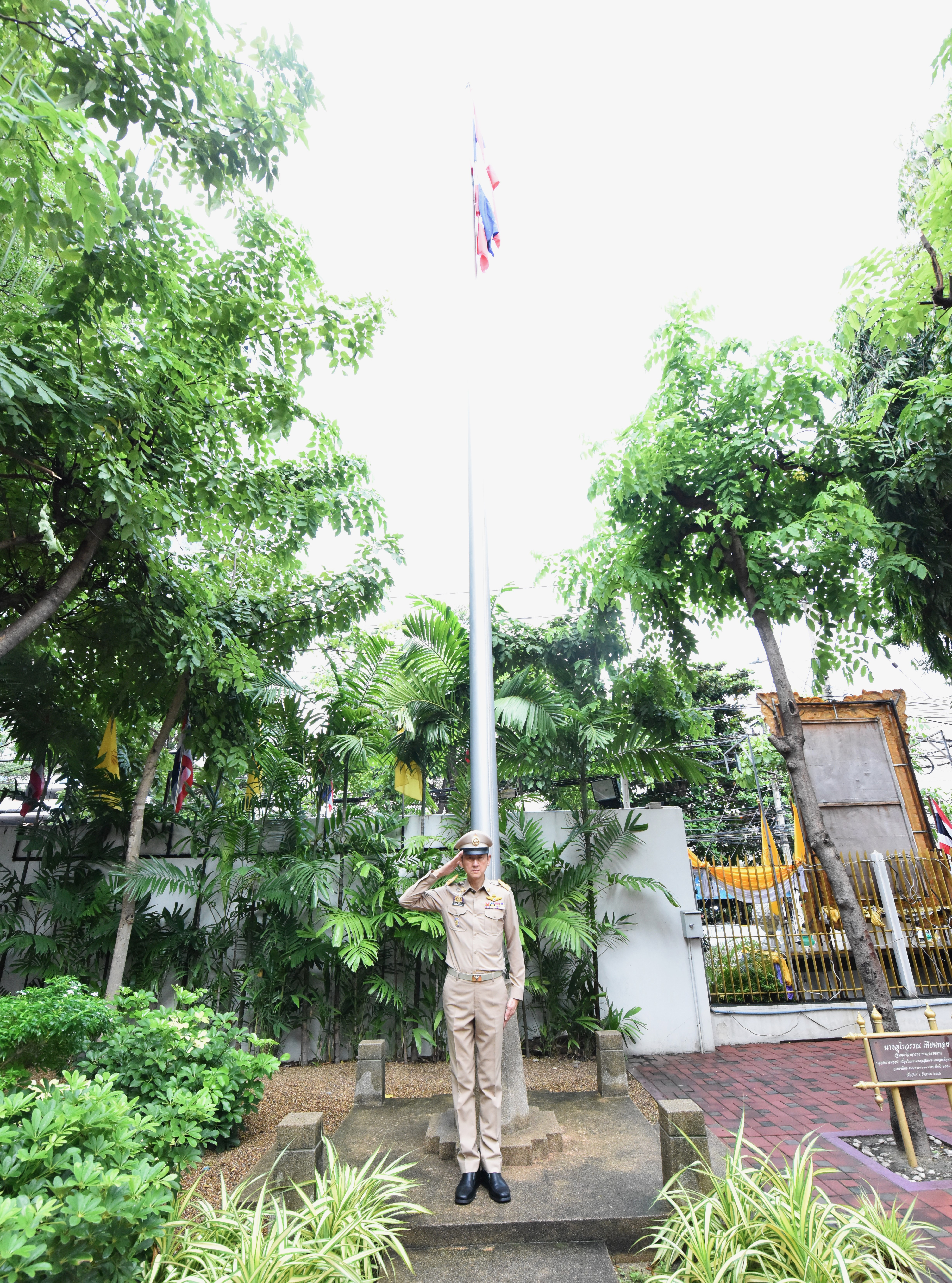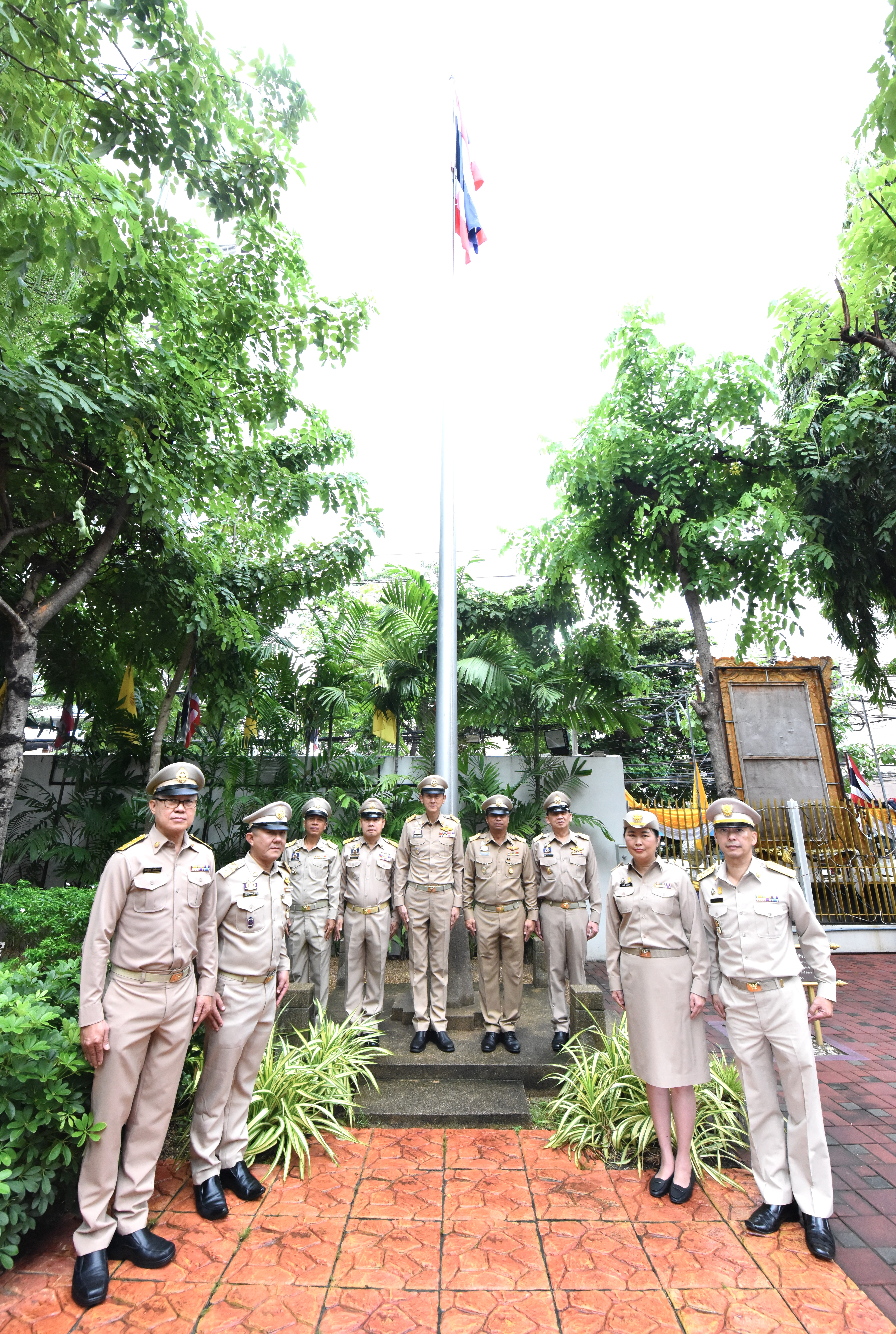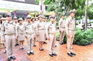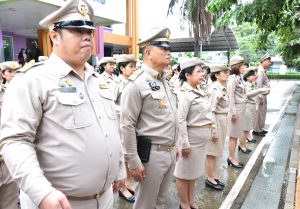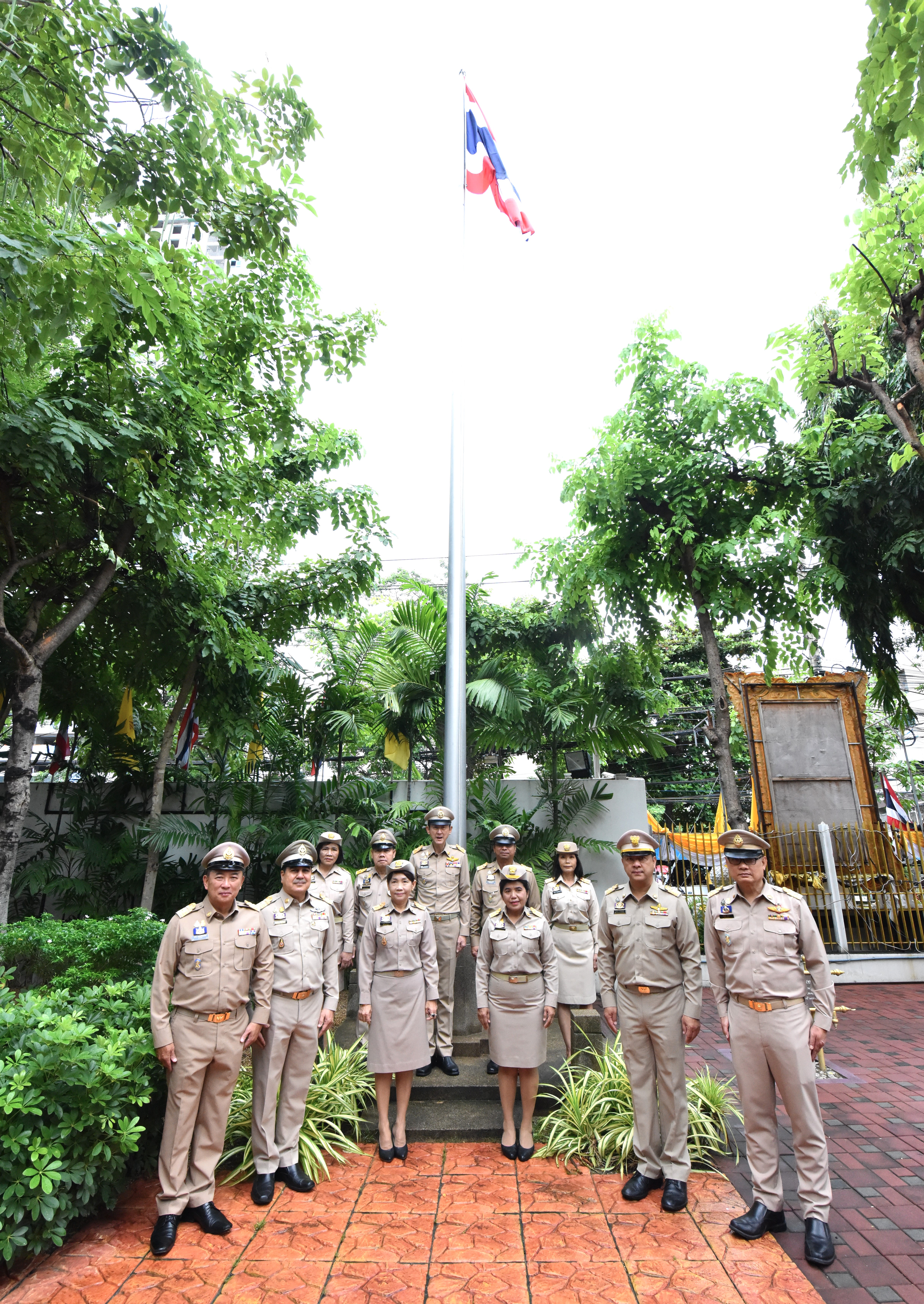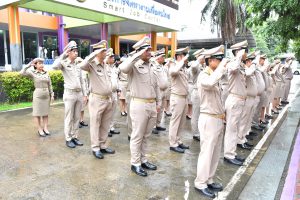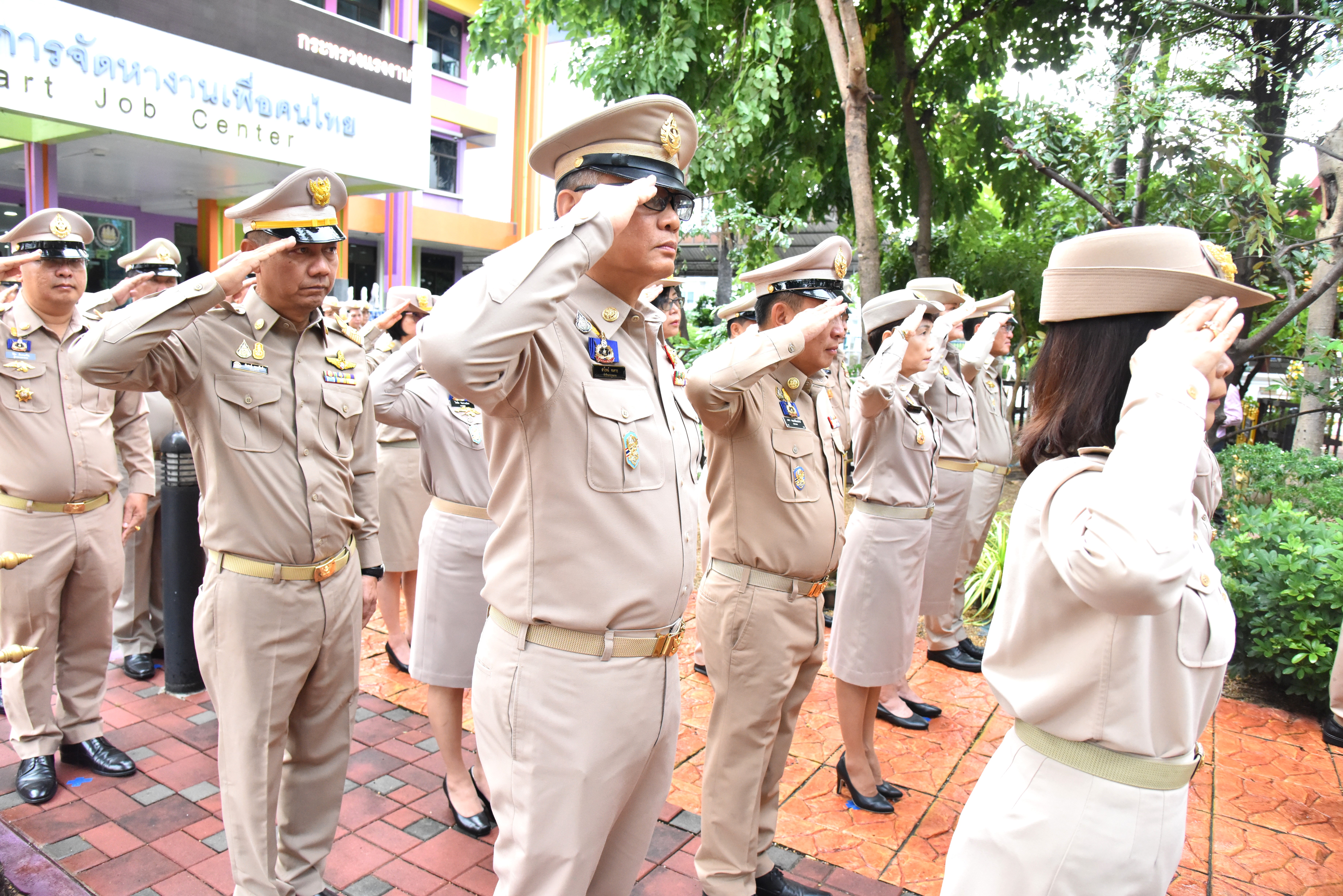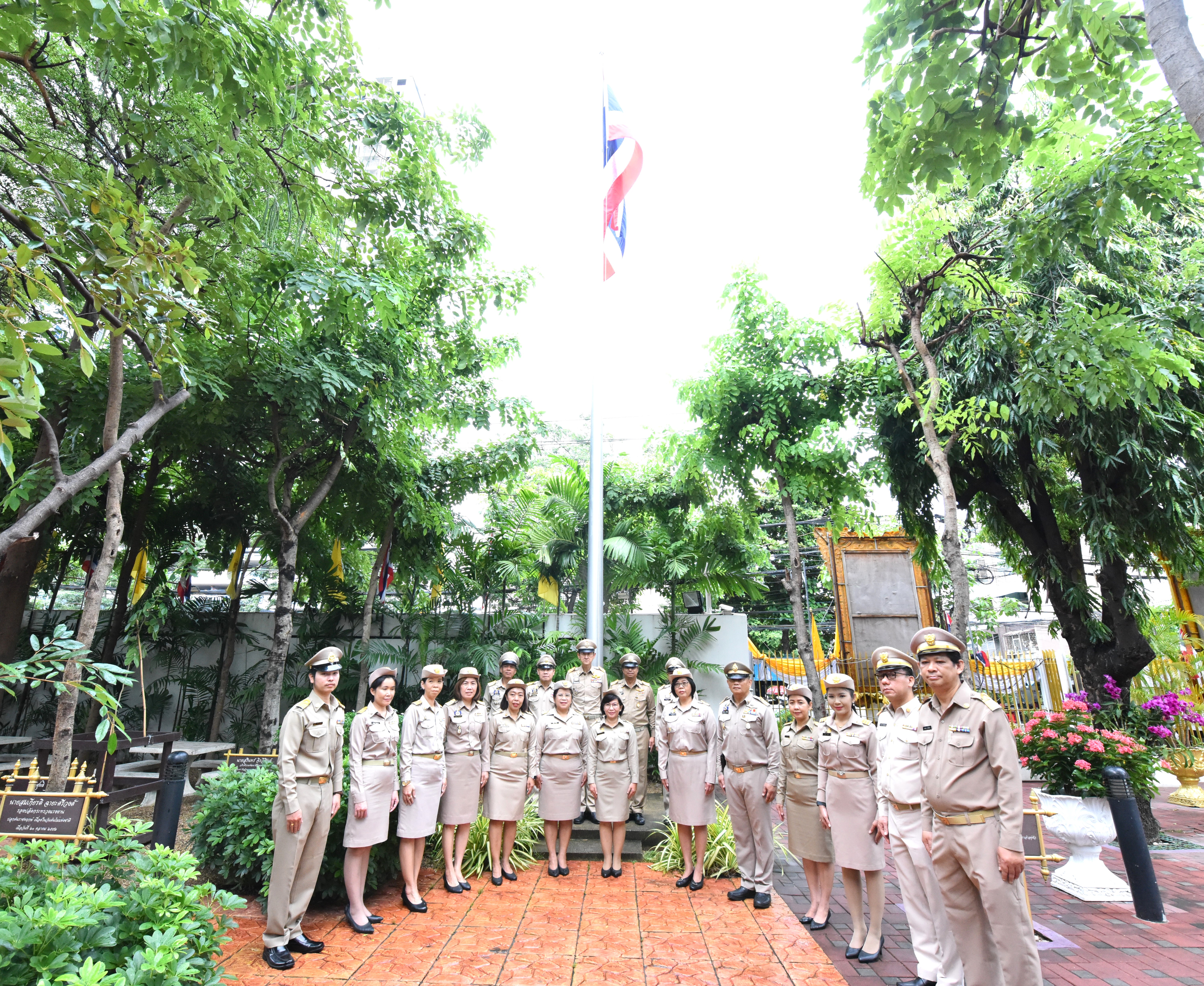 On September 28, 2023, at 08.00 hours, the Permanent Secretary of Labour, Mr. Boonchob Suttamanaswong, chaired the event to honour the national flag and sing the Thai national anthem on Thai National Flag Day 2023. The Deputy Permanent Secretary of Labour, Mr. Prateep Songlamyong, the Deputy Permanent Secretary of Labour, Mr. Wannarat Srisuksai, and senior executives under the Ministry of Labour participated in the activity at the flagpole area in front of the Smart Job Center building, Ministry of Labour.