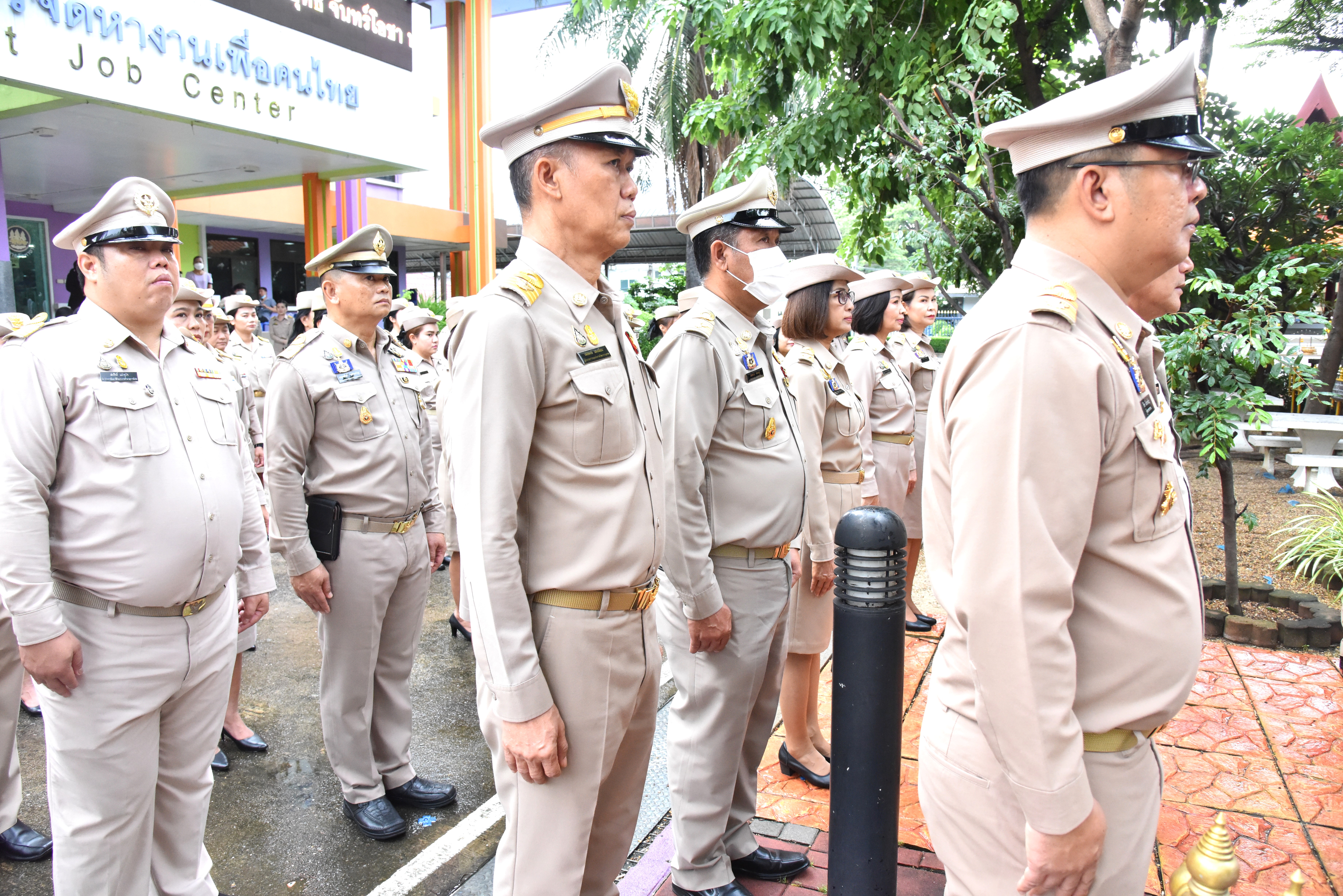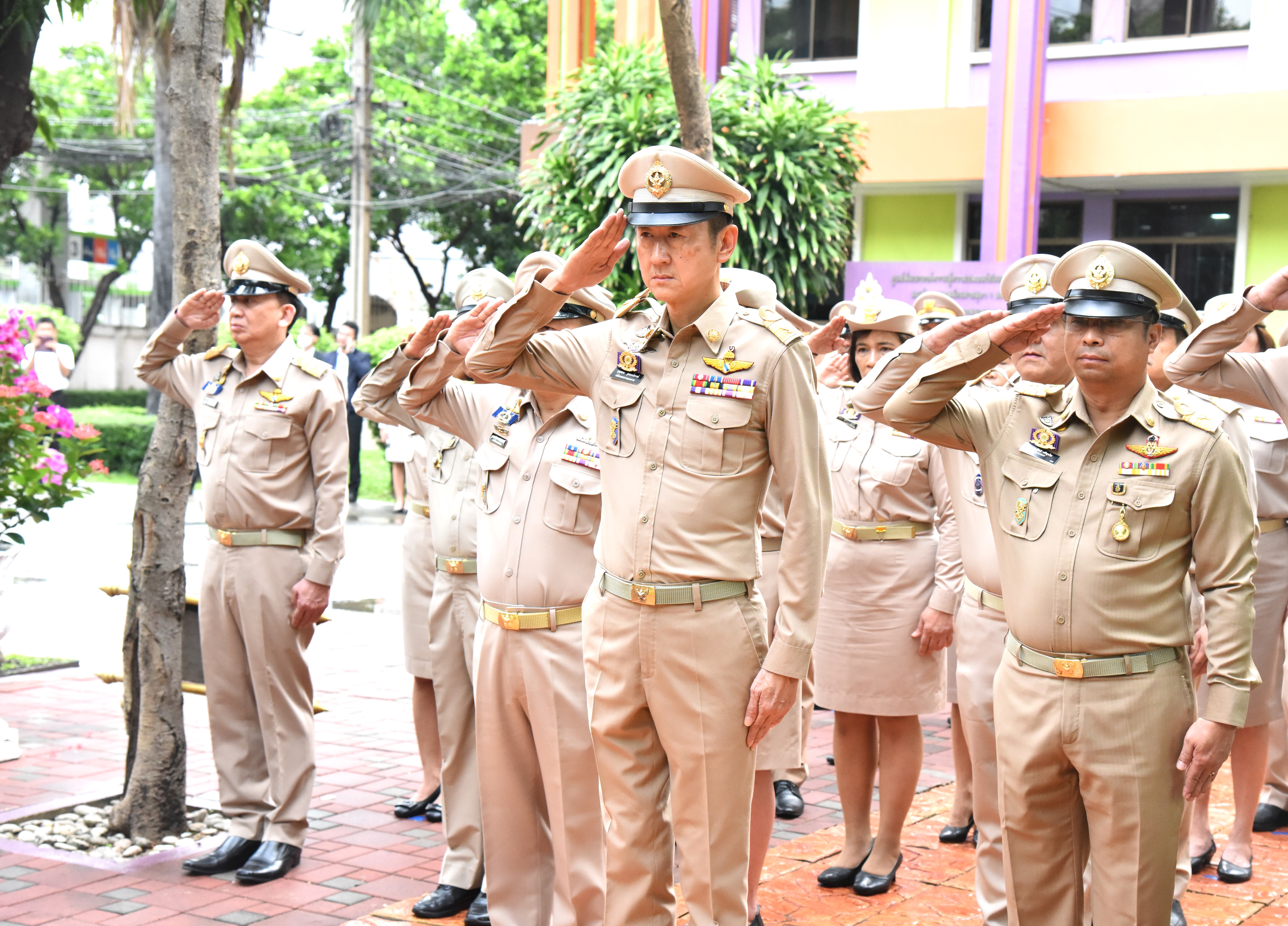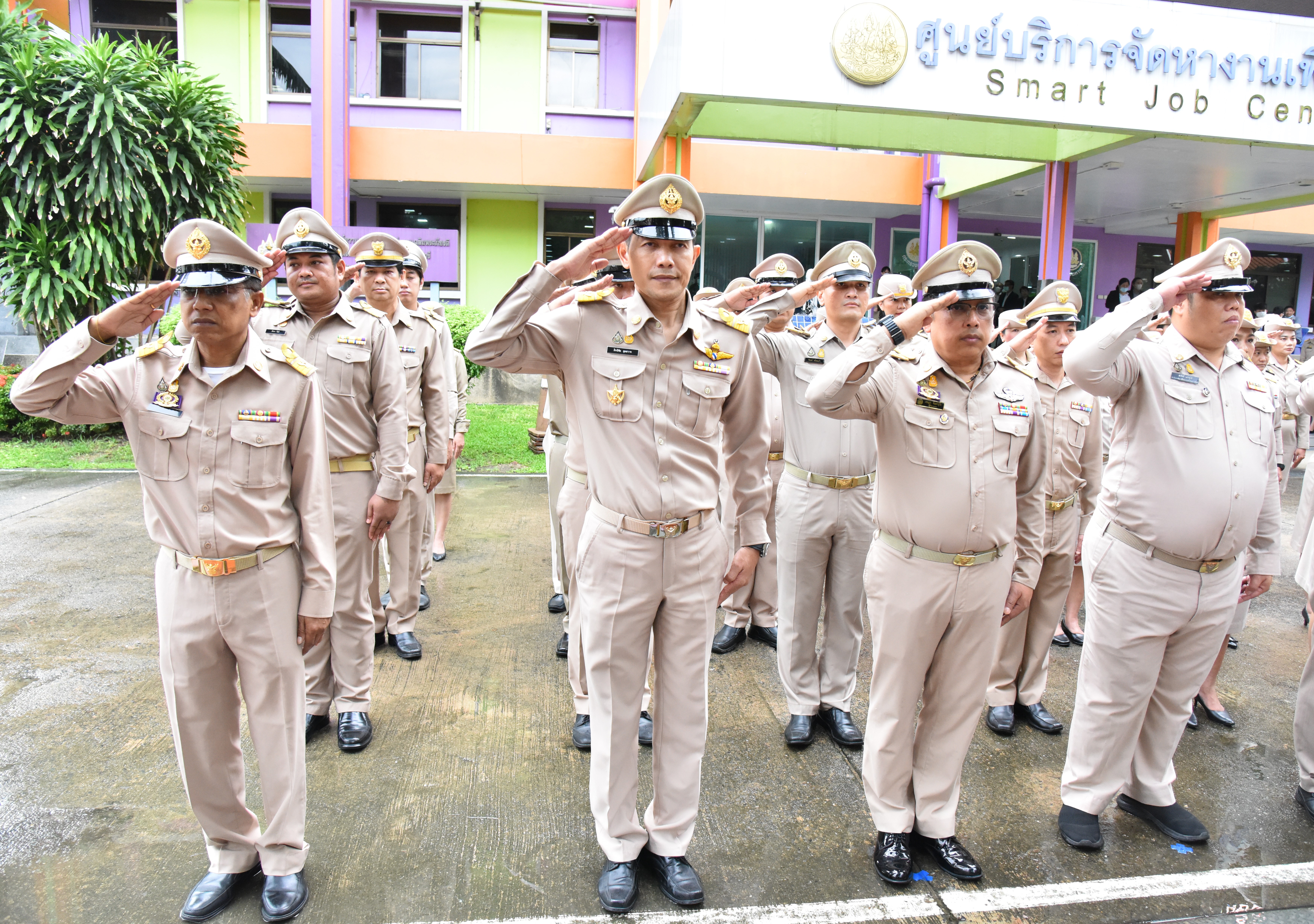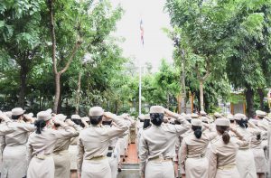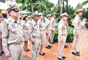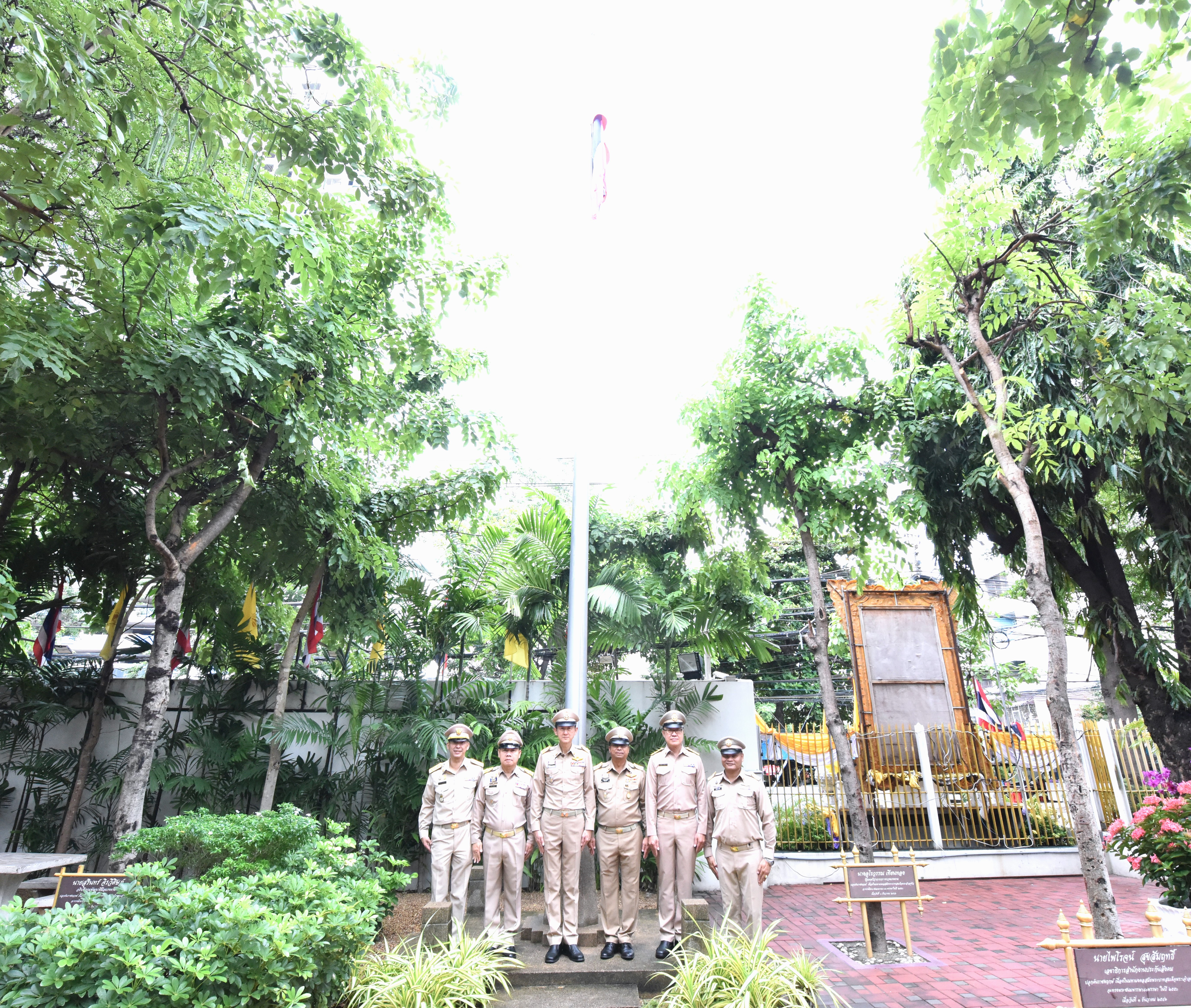On September 28, 2023, at 08.00 hours, the Permanent Secretary of Labour, Mr. Boonchob Suttamanaswong, chaired the event to honour the national flag and sing the Thai national anthem on Thai National Flag Day 2023. The Deputy Permanent Secretary of Labour, Mr. Prateep Songlamyong, the Deputy Permanent Secretary of Labour, Mr. Wannarat Srisuksai, and senior executives under the Ministry of Labour participated in the activity at the flagpole area in front of the Smart Job Center building, Ministry of Labour.