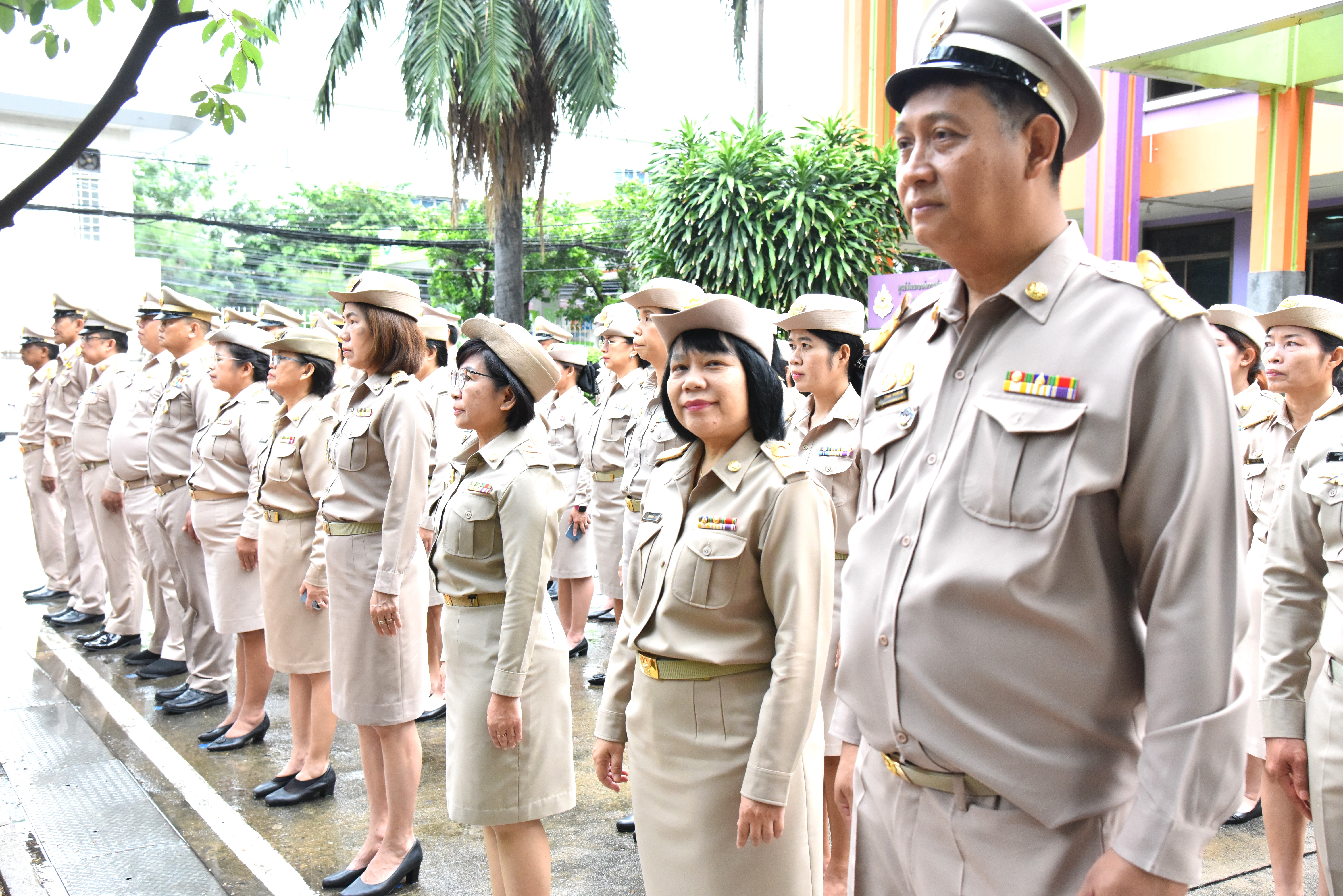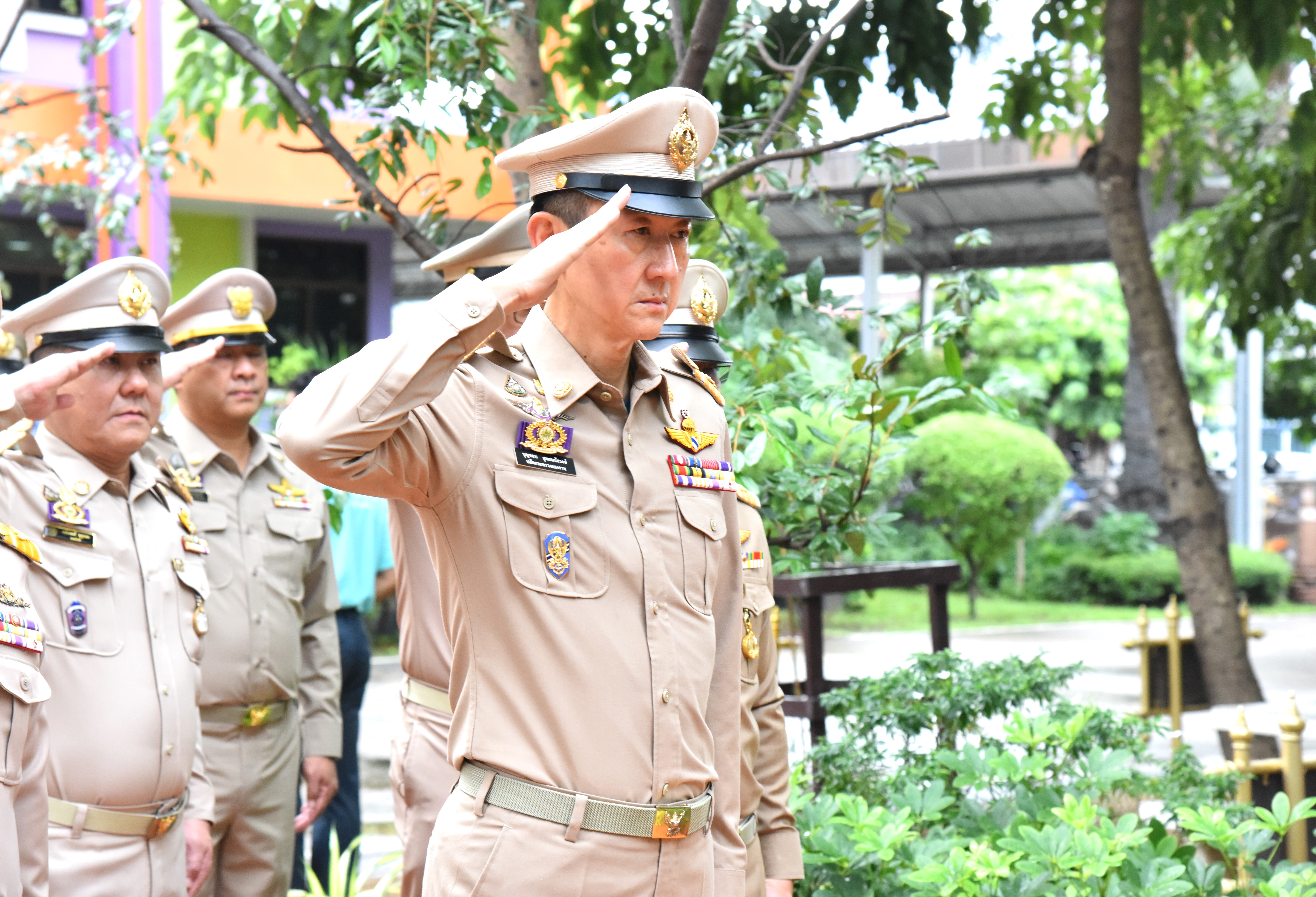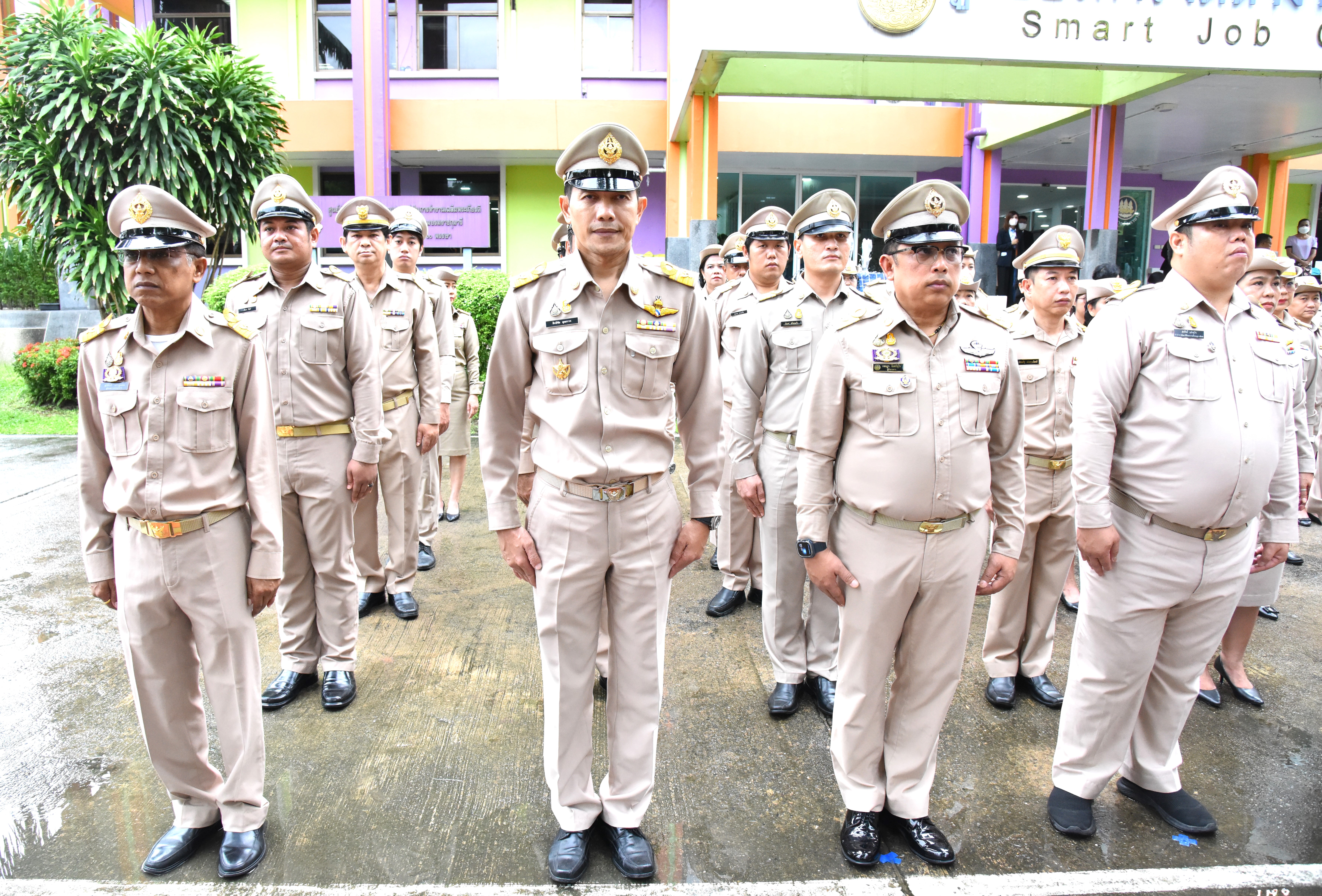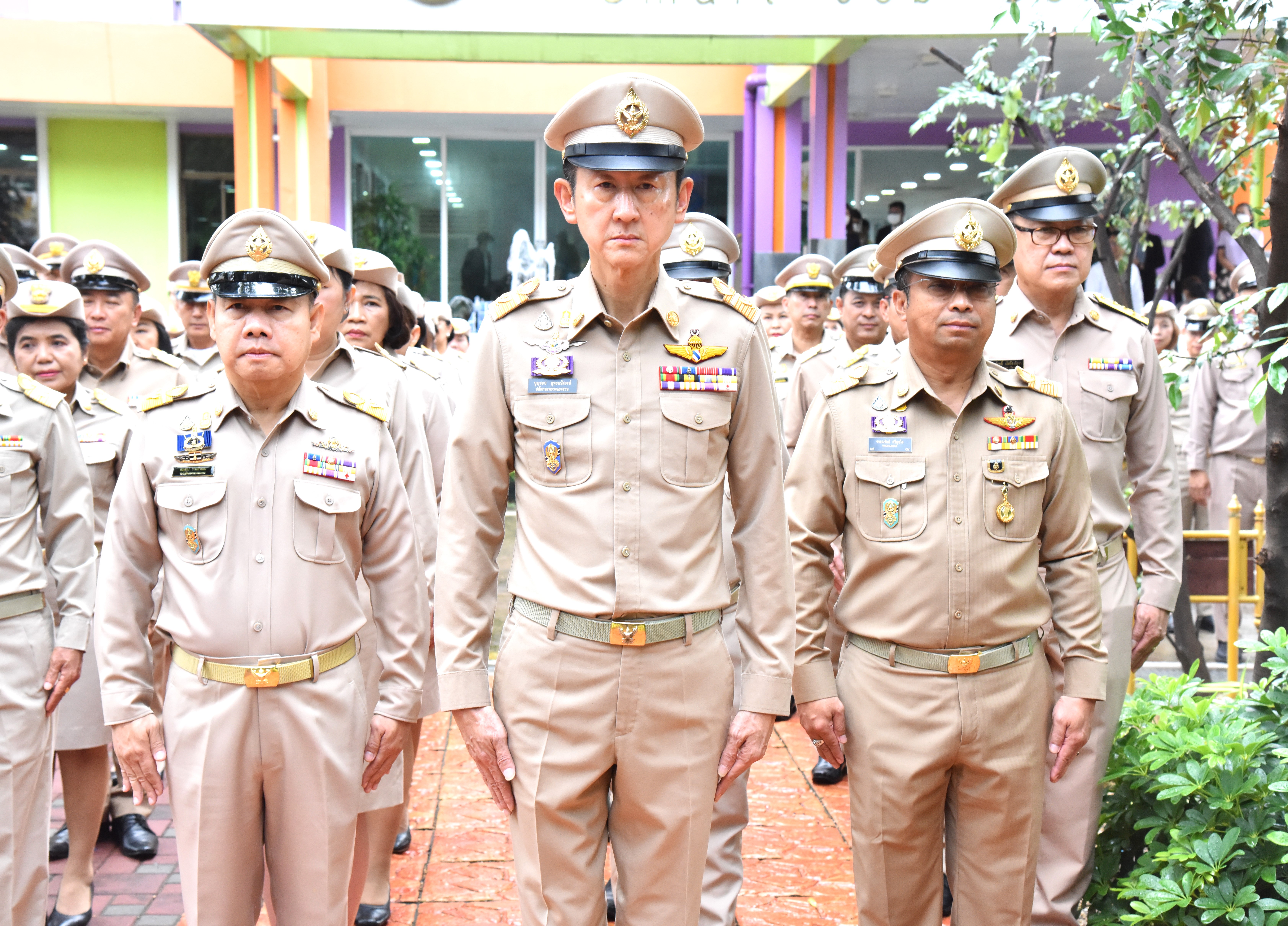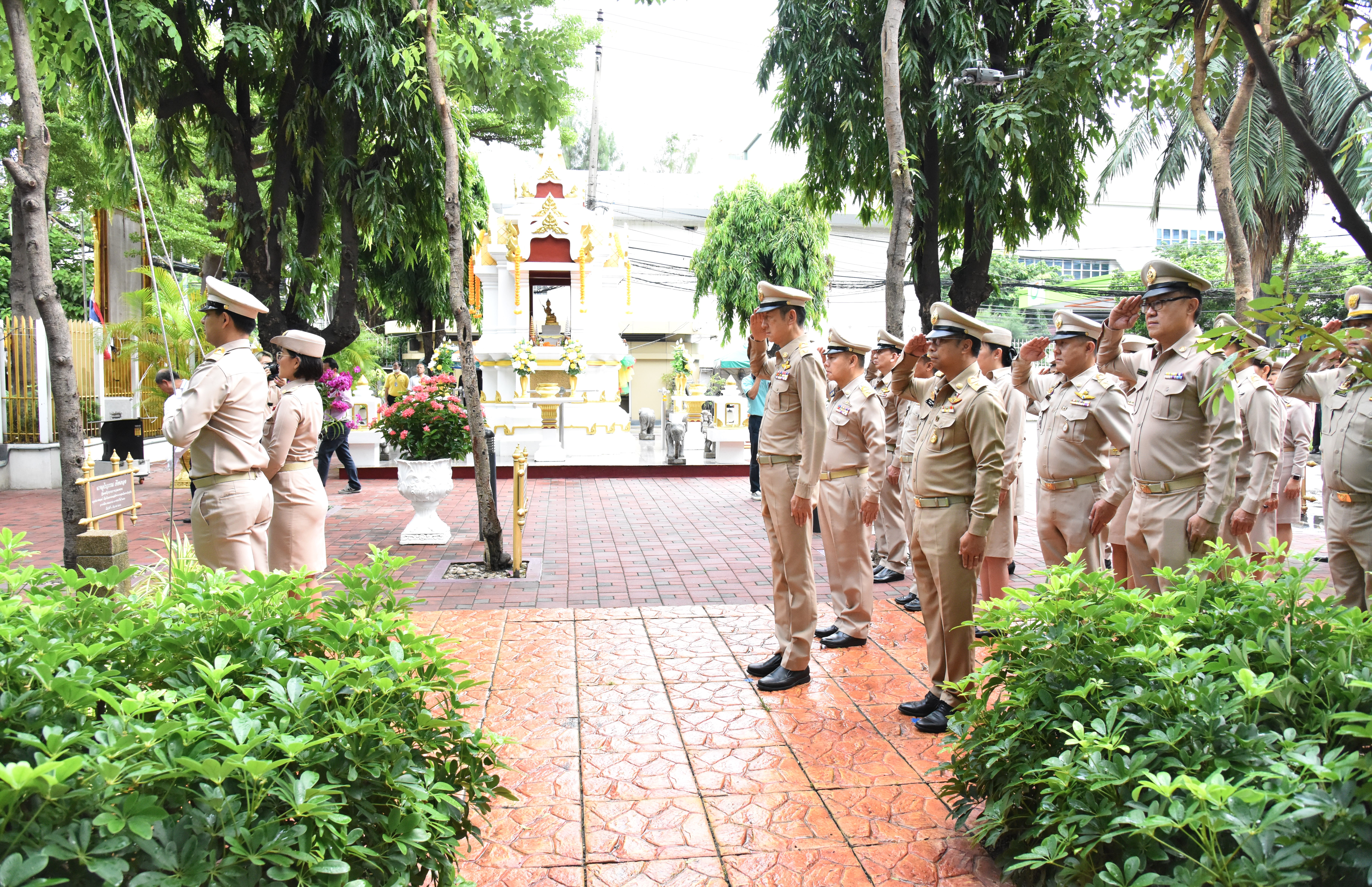 On September 28, 2023, at 08.00 hours, the Permanent Secretary of Labour, Mr. Boonchob Suttamanaswong, chaired the event to honour the national flag and sing the Thai national anthem on Thai National Flag Day 2023. The Deputy Permanent Secretary of Labour, Mr. Prateep Songlamyong, the Deputy Permanent Secretary of Labour, Mr. Wannarat Srisuksai, and senior executives under the Ministry of Labour participated in the activity at the flagpole area in front of the Smart Job Center building, Ministry of Labour.