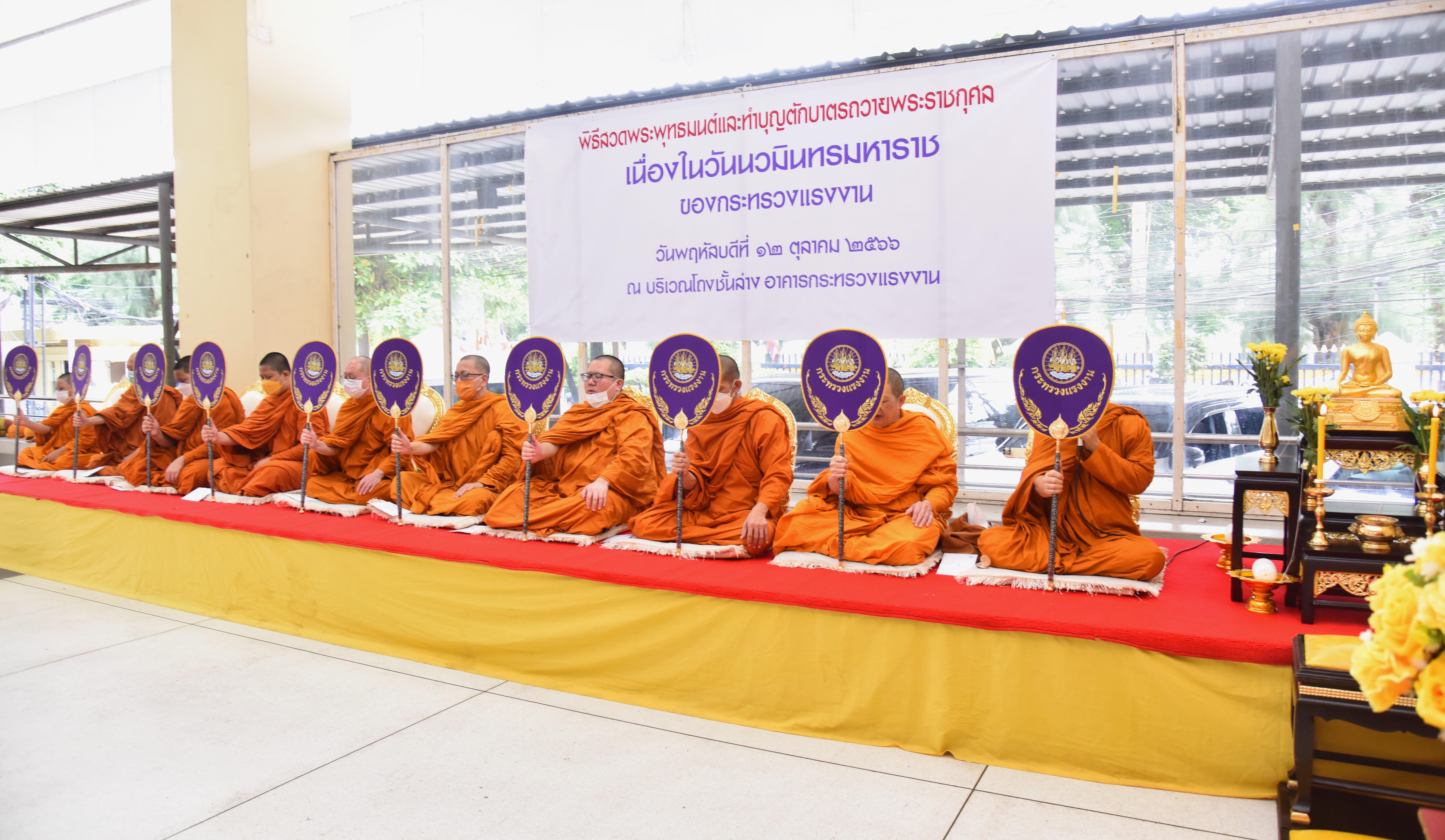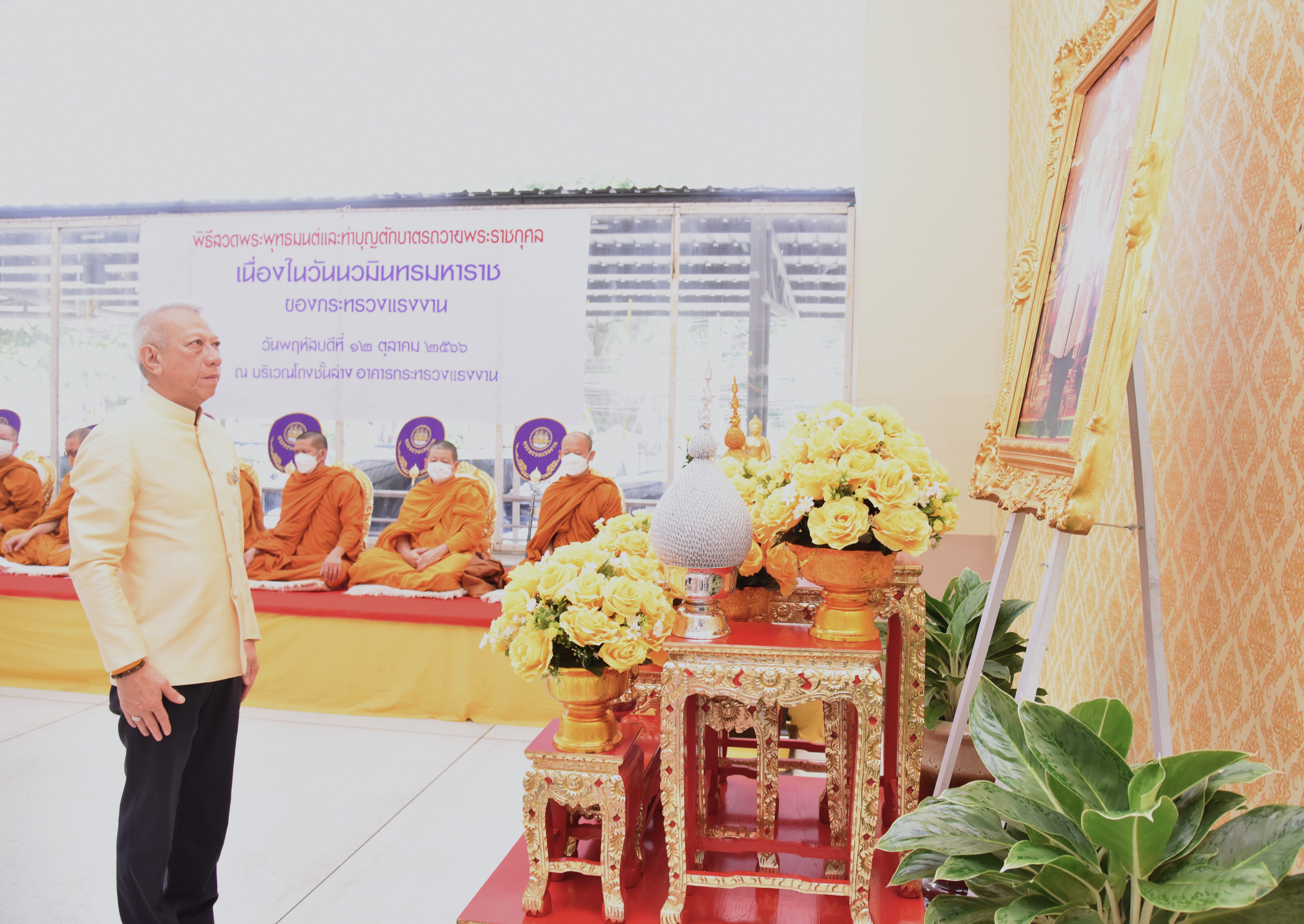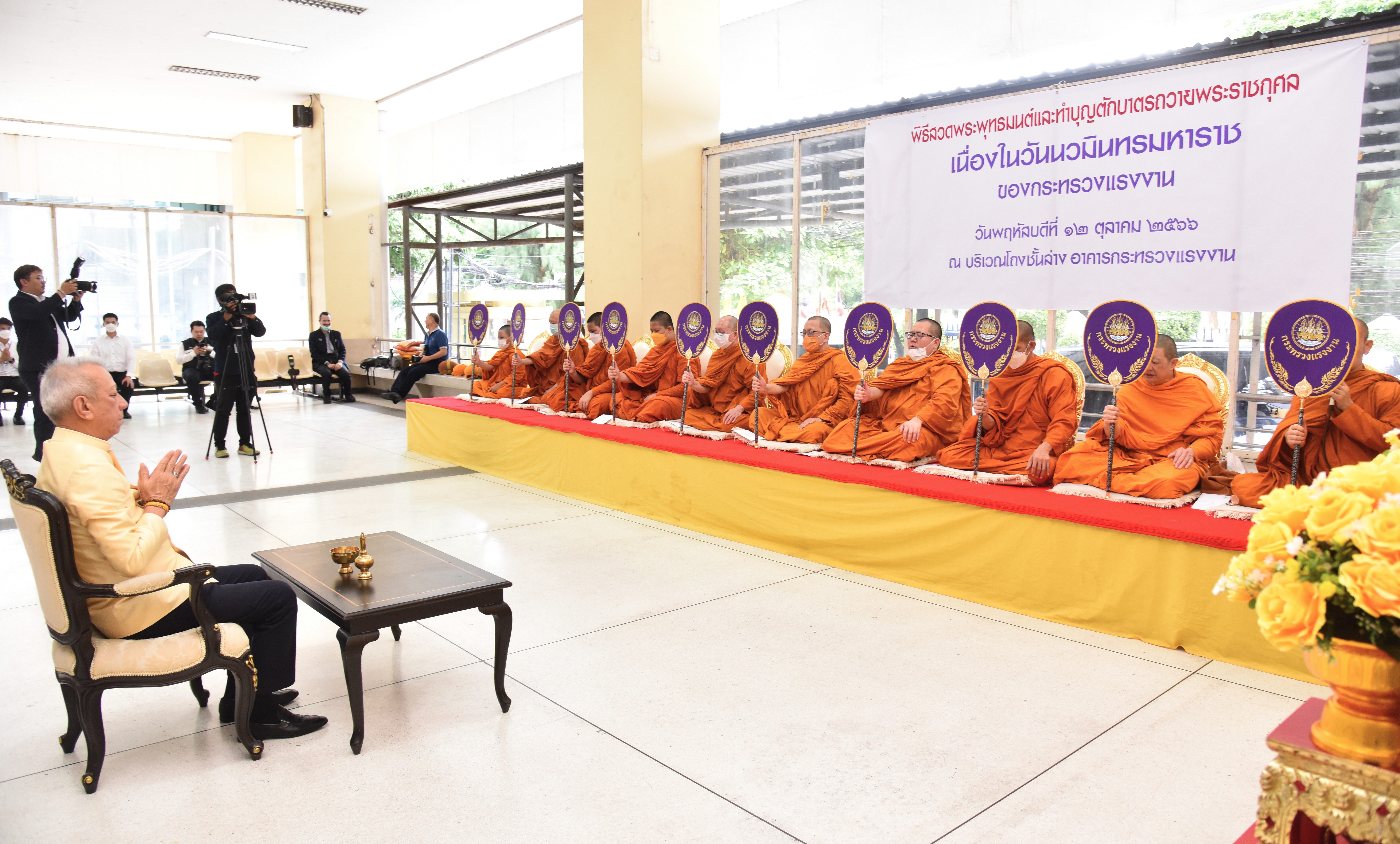 วันที่ 12 ตุลาคม 2566 เวลา 08.00 น. นายพิพัฒน์ รัชกิจประการ รัฐมนตรีว่าการกระทรวงแรงงาน เป็นประธานพิธีสวดพระพุทธมนต์และทำบุญตักบาตรถวายพระราชกุศล เนื่องในวันนวมินทรมหาราช ของกระทรวงแรงงาน โดยมี นายสิรภพ ดวงสอดศรี ผู้ช่วยรัฐมนตรีประจำกระทรวงแรงงาน นายธนัสถ์ ทวีเกื้อกูลกิจ ที่ปรึกษารัฐมนตรีว่าการกระทรวงแรงงาน นายอารี ไกรนรา เลขานุการรัฐมนตรีว่าการกระทรวงแรงงาน นายภุชงค์ วรศรี ประจำสำนักเลขาธิการนายกรัฐมนตรี ปฏิบัติหน้าที่ประจำกระทรวงแรงงาน นายไพโรจน์ โชติกเสถียร ปลัดกระทรวงแรงงาน ผู้บริหารระดับสูง ข้าราชการ และเจ้าหน้าที่หน่วยงานในสังกัดกระทรวงแรงงาน ร่วมพิธีสวดพระพุทธมนต์และทำบุญตักบาตรในครั้งนี้ด้วย ณ บริเวณโถงชั้นล่าง และลานหน้าองค์พระพุทธสุทธิธรรมบพิตร อาคารกระทรวงแรงงาน
