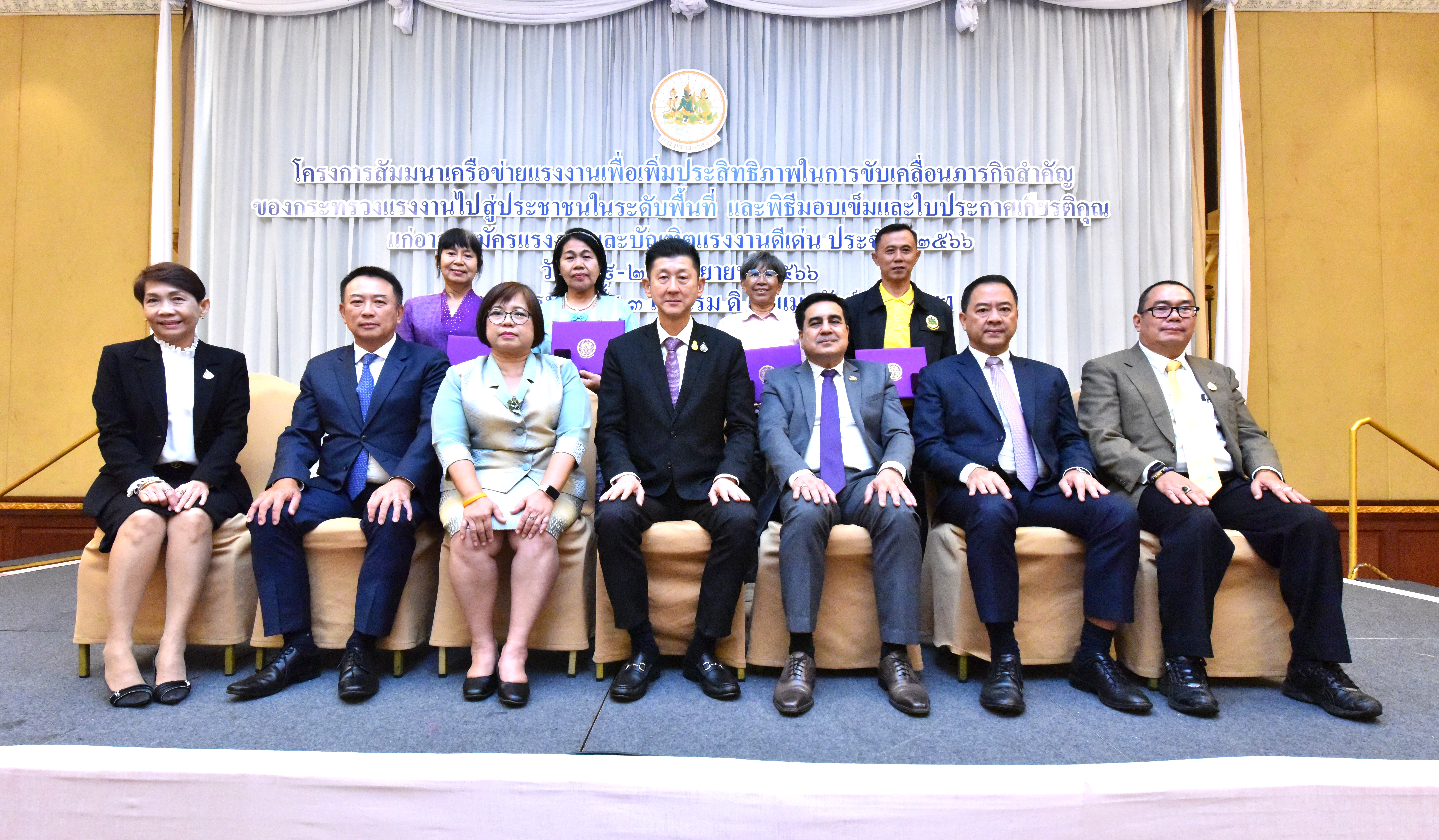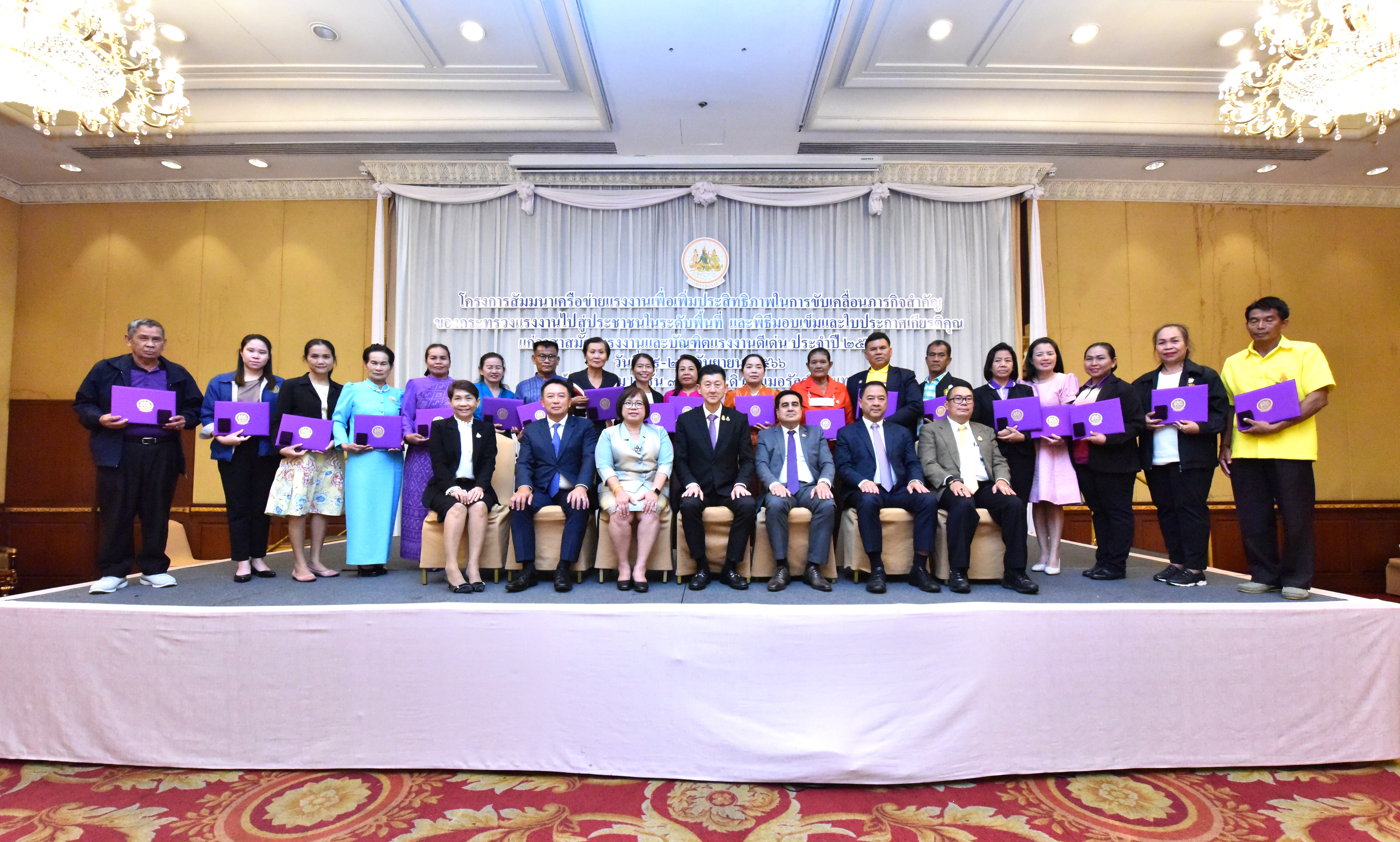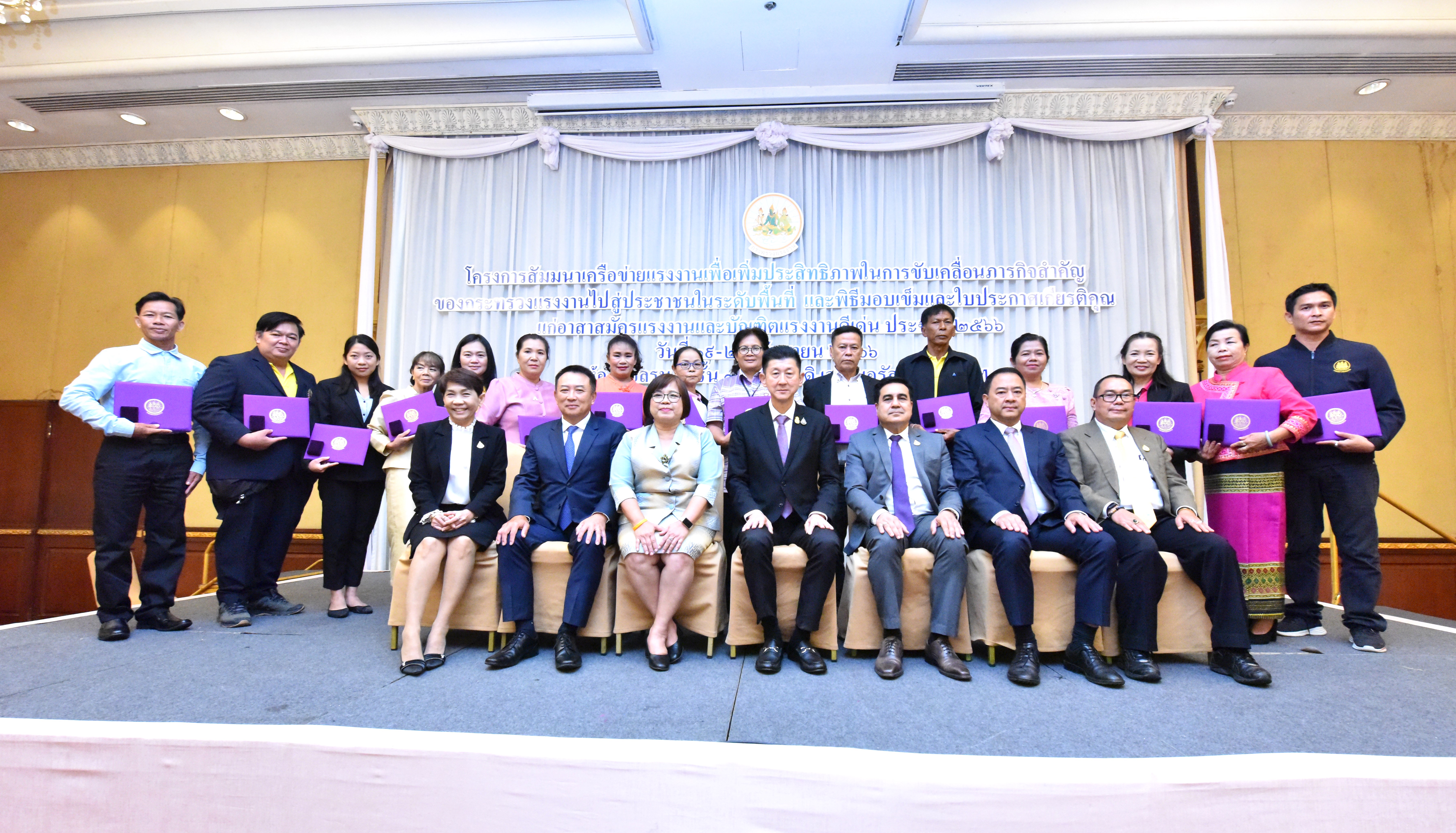 ปลัดแรงงาน เปิดสัมมนาเครือข่ายแรงงานเพื่อเพิ่มประสิทธิภาพในการขับเคลื่อนภารกิจสำคัญของกระทรวงแรงงาน ไปสู่ประชาชนในระดับพื้นที่ พร้อมมอบใบประกาศเกียรติคุณ และเข็มประกาศเกียรติคุณให้แก่อาสาสมัครแรงงานดีเด่นระดับจังหวัด ประจำปี 2566 จำนวน 79 คน