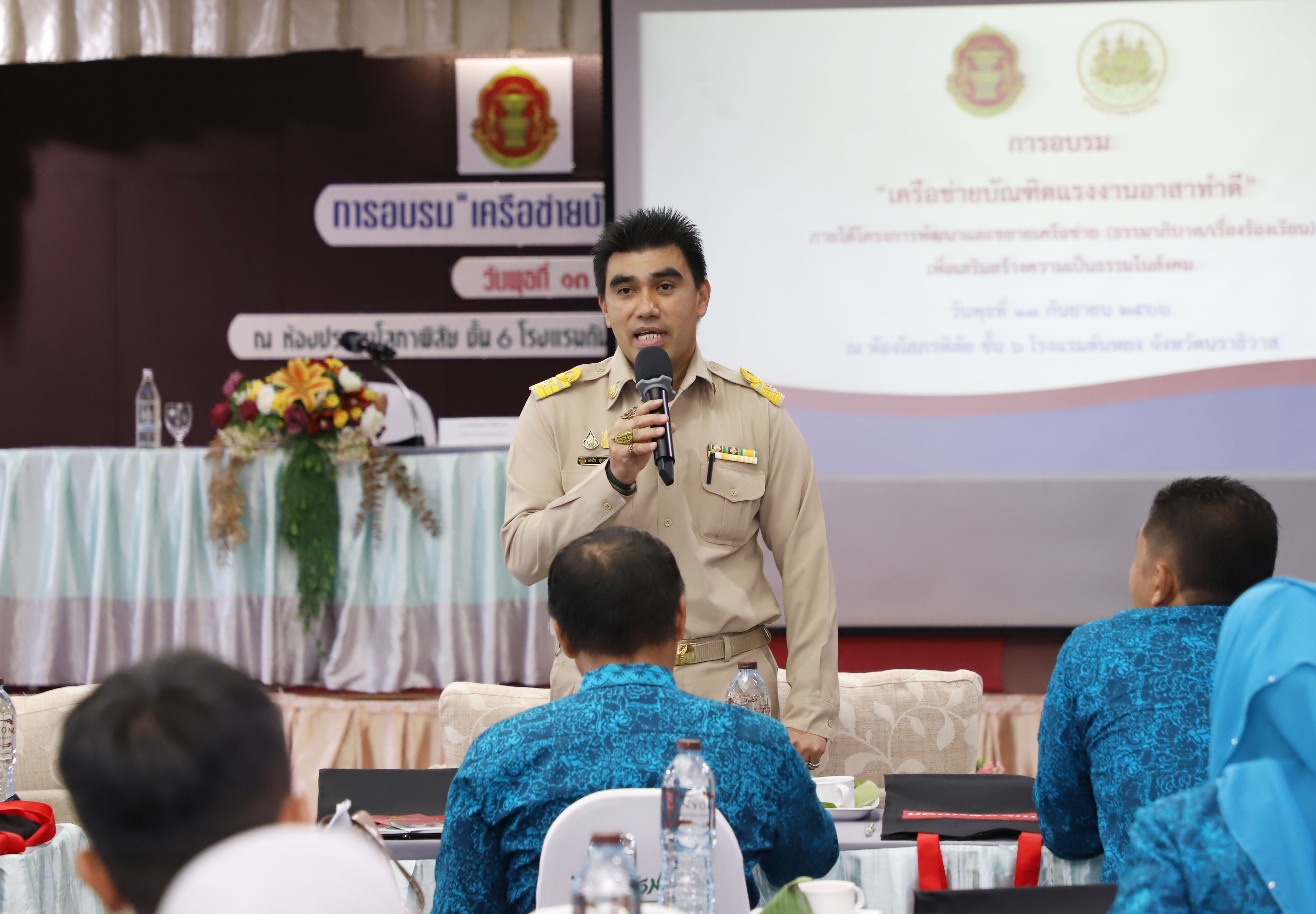 การจัดกิจกรรมการอบรมเครือข่ายบัณฑิตแรงงานอาสาทำดีในวันนี้ นับเป็นส่วนหนึ่งของความร่วมมือในการสร้างเครือข่ายการทำงานร่วมกันระหว่างกระทรวงแรงงานกับสำนักงานผู้ตรวจการแผ่นดิน โดยมีวัตถุประสงค์เพื่อสร้างเครือข่ายผู้ตรวจการแผ่นดินที่สามารถสร้างความรู้ความเข้าใจเกี่ยวกับบทบาทหน้าที่ และอำนาจของผู้ตรวจการแผ่นดิน ตลอดจนแนะนำช่องทางในการร้องเรียนให้แก่ประชาชน กรณีที่ได้รับความเดือดร้อนหรือความไม่เป็นธรรม อันเนื่องมาจากการไม่ปฏิบัติตามกฎหมายหรือปฏิบัตินอกเหนือหน้าที่และอำนาจตามกฎหมายของหน่วยงานของรัฐ หรือเจ้าหน้าที่ของรัฐและเพื่อให้เครือข่ายเกิดองค์ความรู้ในการถ่ายทอดบทบาทหน้าที่ และอำนาจของผู้ตรวจการแผ่นดินไปยังภาคประชาชนได้อย่างมีประสิทธิภาพกลุ่มเป้าหมายผู้เข้ารับการอบรม คือ บัณฑิตแรงงานในพื้นที่จังหวัดนราธิวาส จำนวน 111 คน ซึ่งผู้เข้ารับการอบรมทุกคนจะนำความรู้ และข้อคิดเห็นที่เป็นประโยชน์มาปรับใช้ในการปฏิบัติงาน เป็นเครือข่ายในการร่วมกันดำเนินงานเพื่อสนับสนุนภารกิจรวมทั้งหน้าที่และอำนาจของทั้งสองหน่วยงานโดยคำนึงถึงประโยชน์สูงสุดของประชาชนเป็นสำคัญ และเป็นเครือข่ายในการเสริมสร้างธรรมาภิบาลและความเป็นธรรมในสังคม ตลอดจนการส่งเสริมการพัฒนาตามแนวทางการพัฒนาที่ยั่งยืนของสหประชาชาติต่อไป