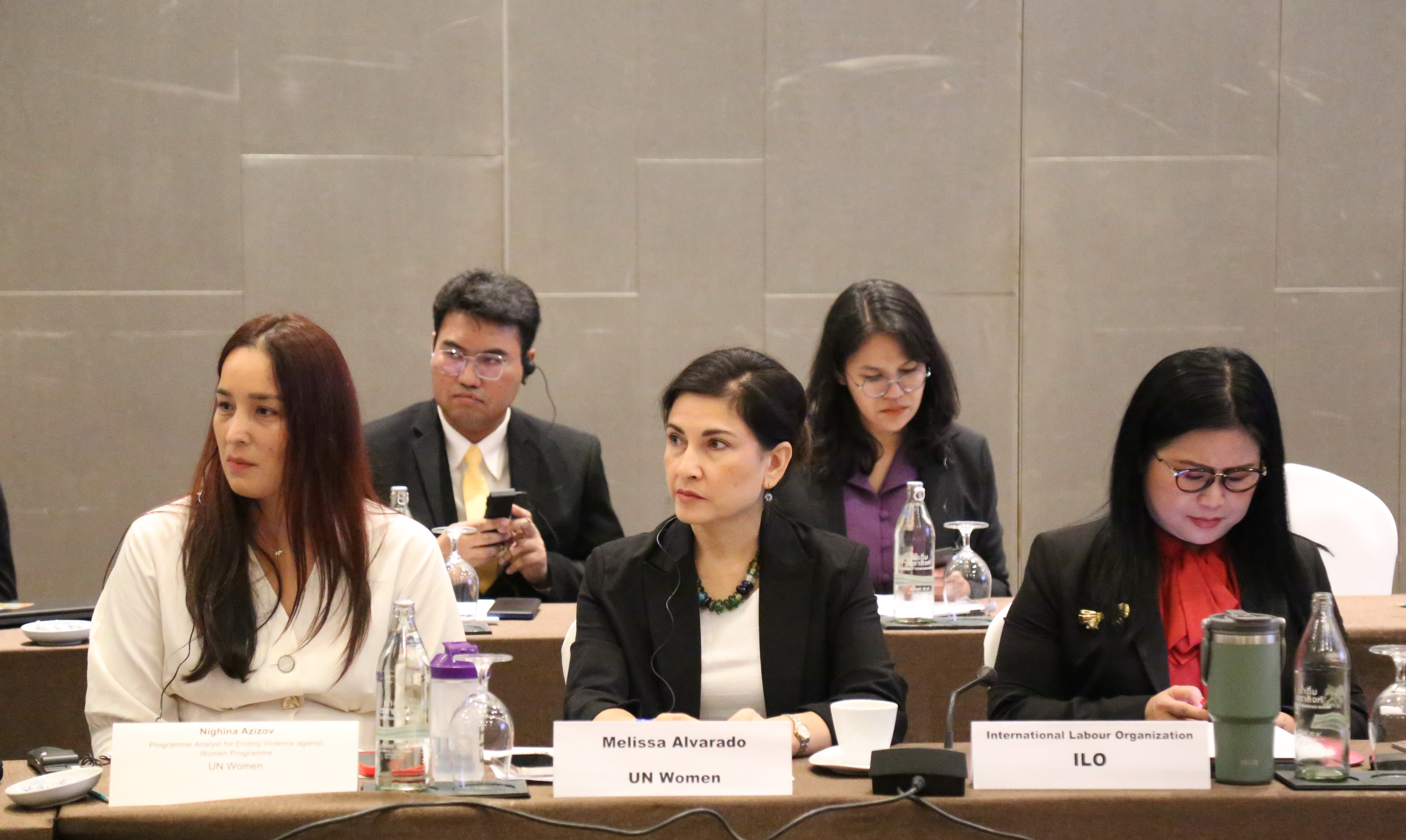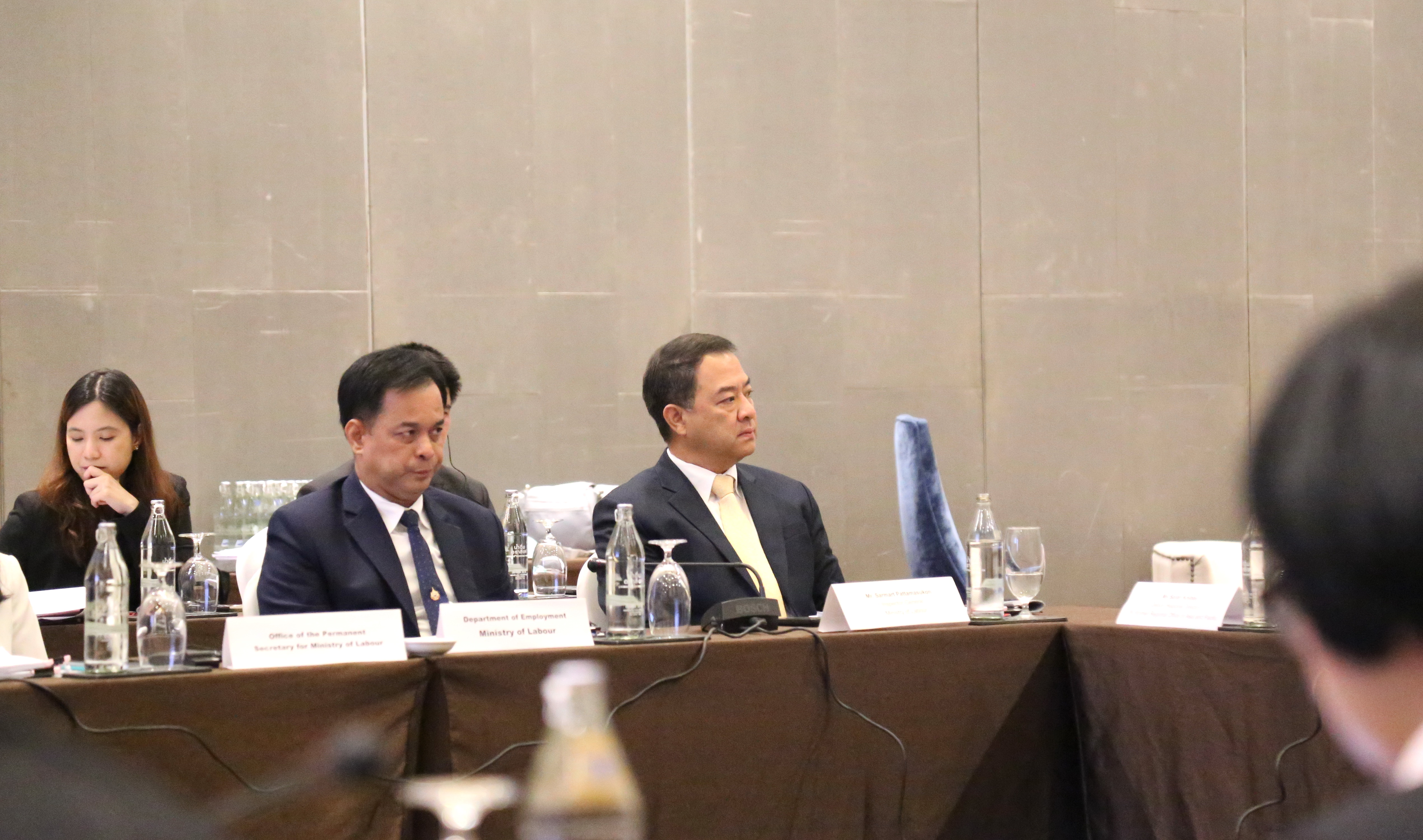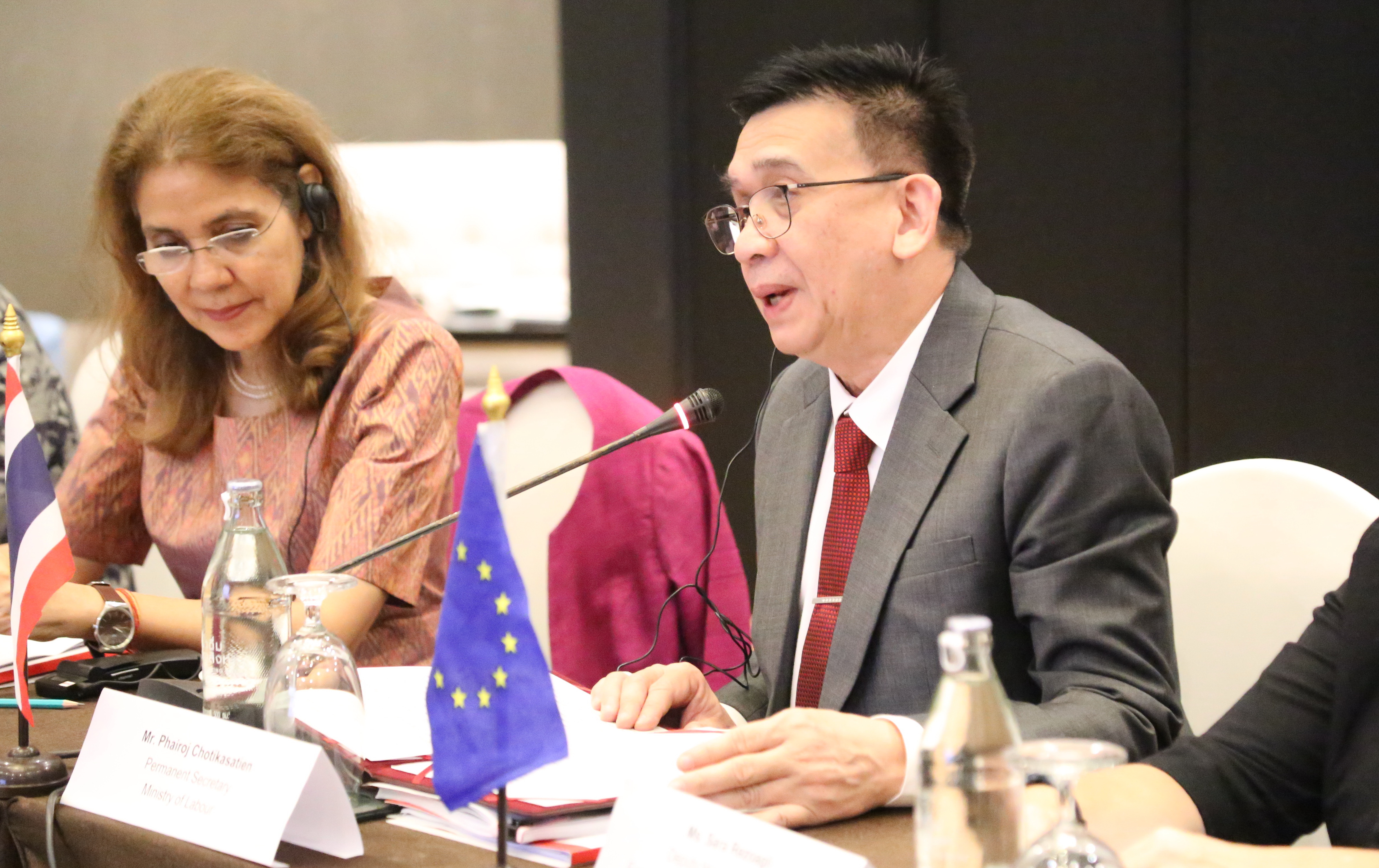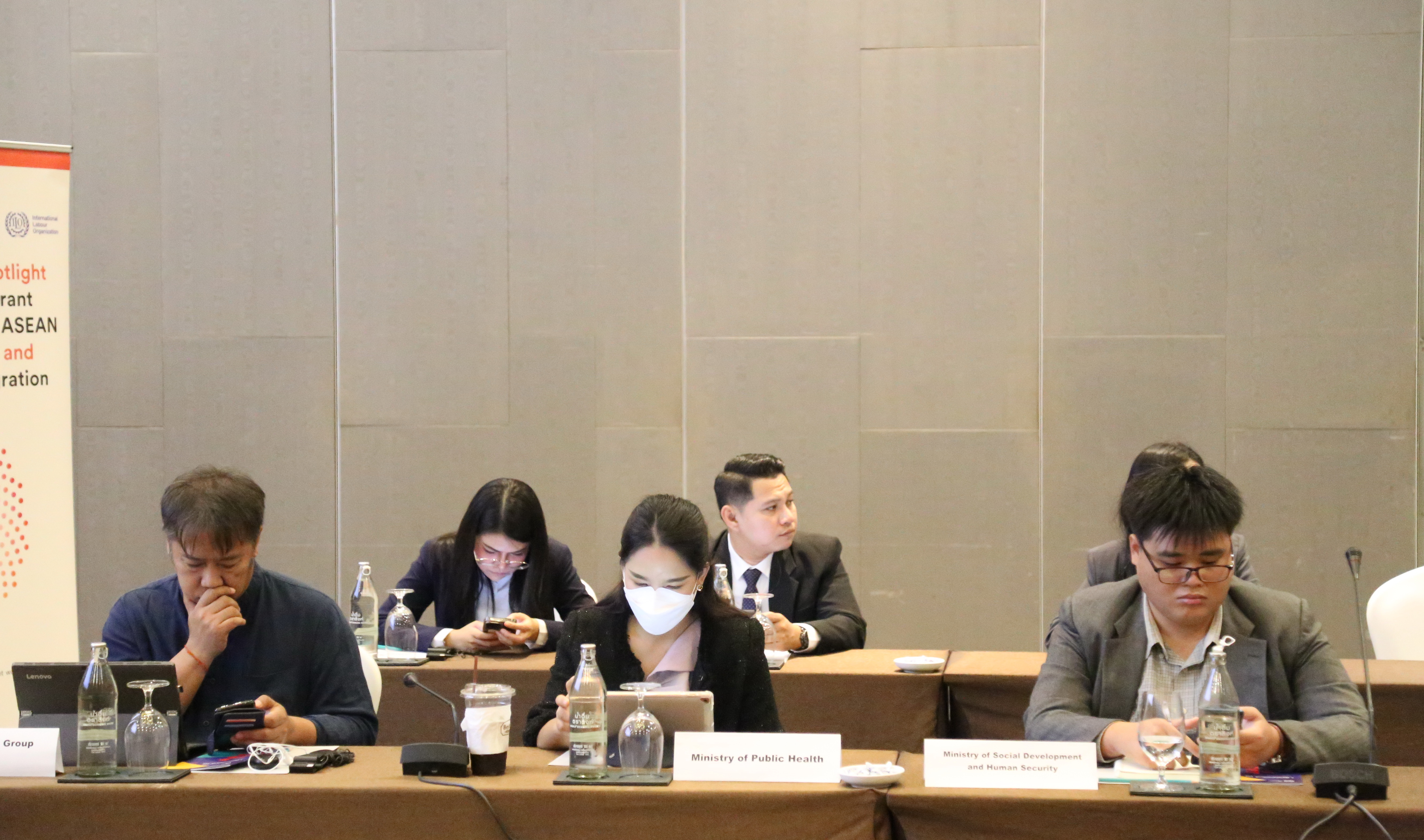 วันที่ 9 พฤศจิกายน 2566 นายไพโรจน์ โชติกเสถียร ปลัดกระทรวงแรงงาน เป็นประธานการประชุมคณะกรรมการที่ปรึกษาระดับประเทศโครงการความปลอดภัยและยุติธรรม : สิทธิและโอกาสของแรงงานข้ามชาติสตรีในภูมิภาคอาเซียน ครั้งที่ 6 โดยมี นายสมาสภ์ ปัทมะสุคนธ์ ผู้ตรวจราชการกระทรวงแรงงาน คุณซารา เรโซอาลญิ รองหัวหน้าคณะผู้แทนสหภาพยุโรปประจำประเทศไทย คุณกีต้า ซับบระวาล ผู้ประสานงานสหประชาชาติประจำประเทศไทย คุณอ๊อคตาเวียนโต้ พาซาริบู รองผู้อำนวยการรักษาการผู้อำนวยการสำนักงานแรงงานระหว่างประเทศ ประจำประเทศไทย กัมพูชา และ สปป.ลาว คุณซาราห์ นิบส์ รักษาการผู้อำนวยการองค์การ UN Women ดร.ออดรี – อานนท์ โรเชเลมันยา เลขานุการเอก หัวหน้าทีมฝ่ายความร่วมมือสำนักงานคณะผู้แทนสหภาพยุโรปประจำประเทศไทย พร้อมด้วยผู้บริหารระดับสูงกระทรวงแรงงาน เข้าร่วม ณ ห้องบอลรูม 2 ชั้น 6 โรงแรมอมารี วอเตอร์เกท กรุงเทพฯ