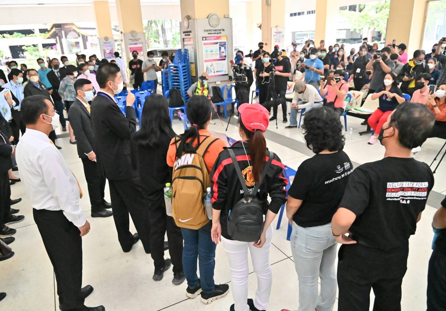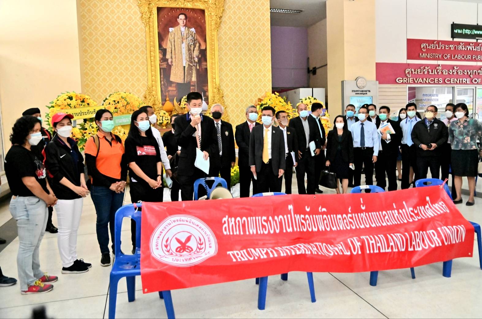 วันที่ 28 ตุลาคม 2564 เวลา 12.30 น. นายบุญชอบ สุทธมนัสวงษ์ ปลัดกระทรวงแรงงาน พบปะแกนนำกลุ่มเครือข่ายแรงงานเพื่อสิทธิประชาชน และพนักงาน บริลเลียนท์ อัลไลแอนซ์ ไทย โกลบอล จำกัด นำโดย นายเซีย จำปาทอง ประธานสหพันธ์อุตสาหกรรมสิ่งทอฯ นางสาวธนพร วิจันทร์ เครือข่ายแรงงานเพื่อสิทธิประชาชน นางสาวจิตณวัชรี พะนัด ประธาน สร.ไทรอัมพ์ฯ นางสาวเตือนใจ แวงคำ เลขาธิการ สร.ไทรอัมพ์ฯ นางสาววาสนา คงหินตั้ง รองประธาน สร.ไทรอัมพ์ฯ นางสาวกรรจาย แก้วชู พนง.บจก.บริลเลียนฯ นางสาวชลกานต์ ข้วญแดง พนง.บจก.บริลเลียนฯ จำนวน 50 คน ติดตามความคืบหน้าข้อเรียกร้อง 4 ข้อ ดังนี้ 1.ให้รัฐบาลดำเนินการช่วยเหลือนำเงิน 242,689,862.71 บาท มาจ่ายชดเชยในส่วนที่ลูกจ้าง 1,388 คน ที่ยังไม่ได้รับ 2.ดำเนินการติดตามนำตัวนายจ้างคนดังกล่าวมารับผิดชอบนำเงินในส่วนที่ต้องจ่ายชดเชยทั้งหมดมาคืนรัฐบาล 3.ดำเนินคดีอาญากับนายจ้างเพื่อเป็นตัวอย่างให้กับนายทุนต่างชาติรายอื่นๆ และ 4.หามาตรการป้องกันไม่ให้ต่างชาติมาลงทุน และเลิกจ้างหลบหนีกลับประเทศโดยไม่จ่ายเงินชดเชย ณ บริเวณโถงล่าง อาคารกระทรวงแรงงาน