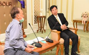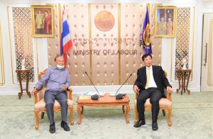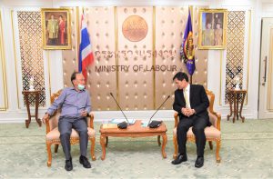 วันที่ ๑๖ ตุลาคม ๒๕๖๓ เวลา ๑๔.๐๐ น. นายสุชาติ ชมกลิ่น รัฐมนตรีว่าการกระทรวงแรงาน มอบหมายให้ นายสุเทพ ชิตยวงษ์ เลขานุการรัฐมนตรีว่าการกระทรวงแรงงาน พร้อมด้วยนายอภิญญา สุจริตตานันท์ อธิบดีกรมสวัสดิการและคุ้มครองแรงงาน ให้การต้อนรับคณะ พล.ท.นพ. ศิริชัย รัตนวราหะ อดีตกรรมการพิจารณาอุทธรณ์เงินทดแทนและกรรมการกองทุนเงินทดแทน ชุดที่ ๙ ขอเข้าพบเพื่อหารือแนวทางในการส่งเสริมสุขภาพและป้องกันโรคให้กับผู้ประกันตน โดยได้ดำเนินการนำระบบบริการการแพทย์ทางไกล (Telemedicine) และระบบเทคโนโลยี Block Chain เพื่อเข้ามาเสริมช่องว่างในปัญหาการขาดแคลนบุคลากรทางการแพทย์ ซึ่งทำให้ผู้ใช้แรงงานที่เริ่มมีอาการเจ็บป่วยได้รับการเข้าถึงบริการสาธารณสุขพึงประสงค์ที่ทั่วถึงและมีประสิทธิภาพมากยิ่งขึ้น ณ ห้องจัตุมงคล ชั้น ๖ อาคารกระทรวงแรงงาน