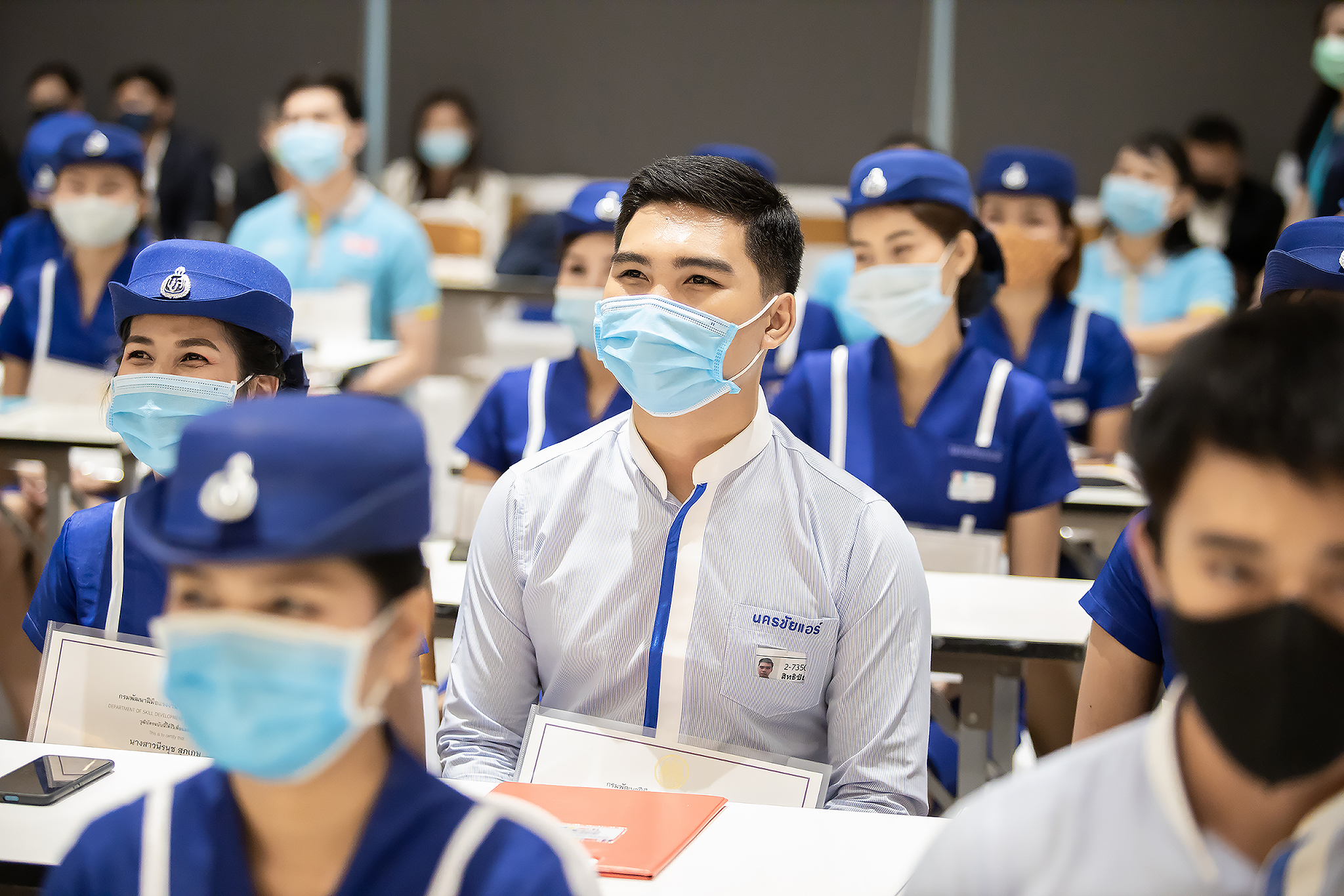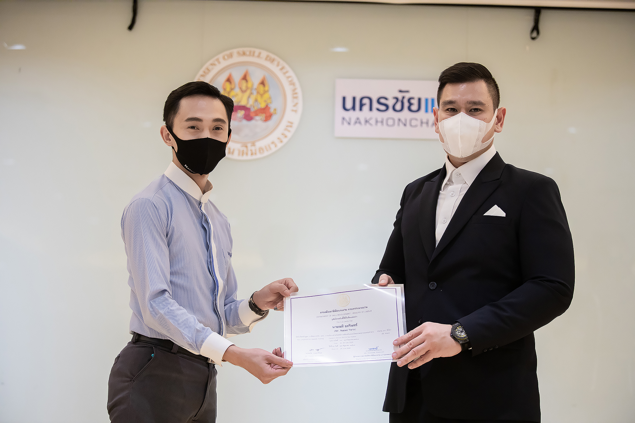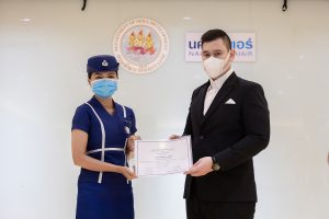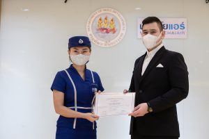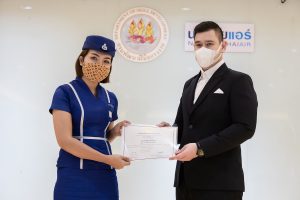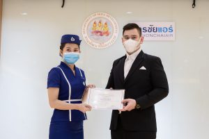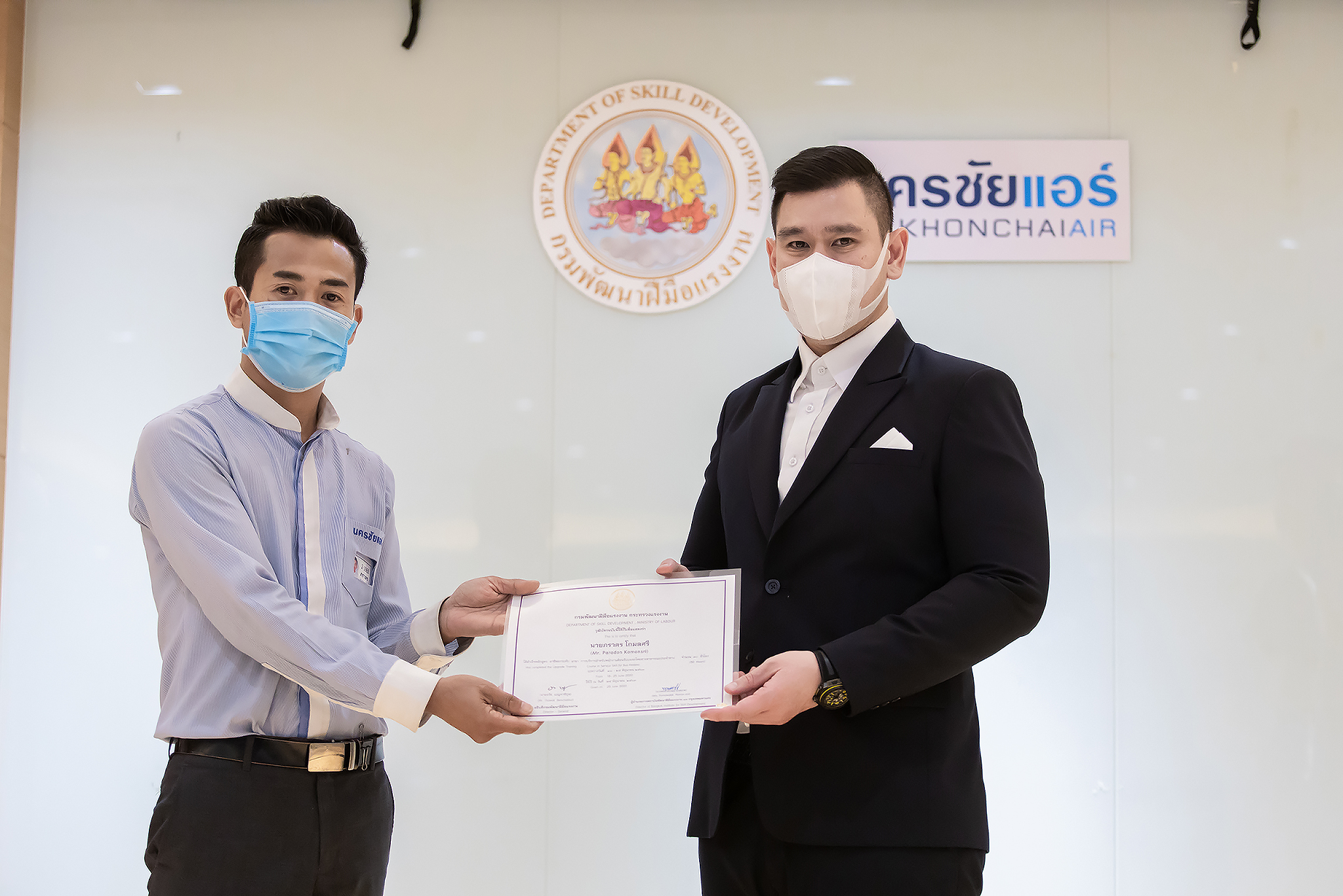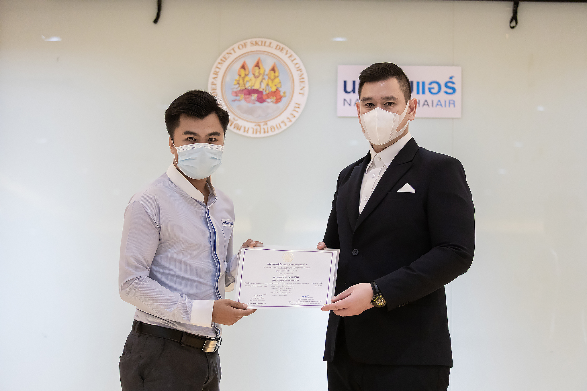 วันนี้ (25 มิ.ย. 63) เวลา 15.00 น. ดร.ดวงฤทธิ์ เบ็ญจาธิกุล ชัยรุ่งเรือง ผู้ช่วยรัฐมนตรีประจำกระทรวงแรงงาน เป็นประธานมอบวุฒิบัตรและปิดโครงการพัฒนาทักษะแรงงานด้านการท่องเที่ยวและบริการหลักสูตรยกระดับฝีมือ สาขาการบริการสำหรับพนักงานต้อนรับบนรถโดยสารสาธารณะประจำทาง ให้แก่พนักงานบริษัท นครชัยแอร์ จำกัด ซึ่งมีผู้เข้าร่วมการอบรมจำนวน 49 คน รวมระยะเวลาการฝึกอบรม 30 ชั่วโมง โดยมี นางเธียรรัตน์ นะวะมะวัฒน์ รองปลัดกระทรวงแรงงาน นายวิชัย ผิวสอาด รองอธิบดีกรมพัฒนาฝีมือแรงงาน และคณะผู้บริหาร ให้เกียรติเข้าร่วมพิธีปิดโครงการ ณ อาคาร 1 ชั้น 3 ห้องจักรินทร์-หฤทัย บริษัทนครชัยแอร์ จำกัด เขตจตุจักร กรุงเทพมหานคร