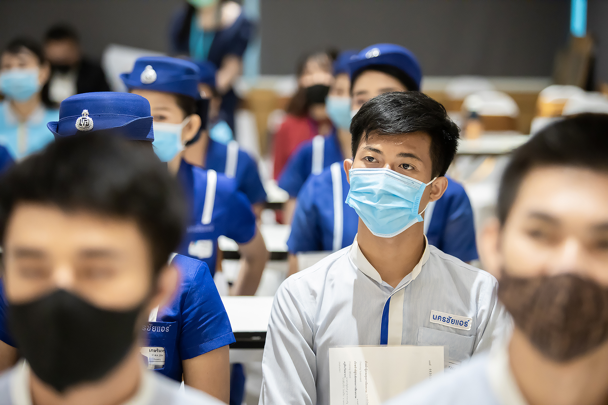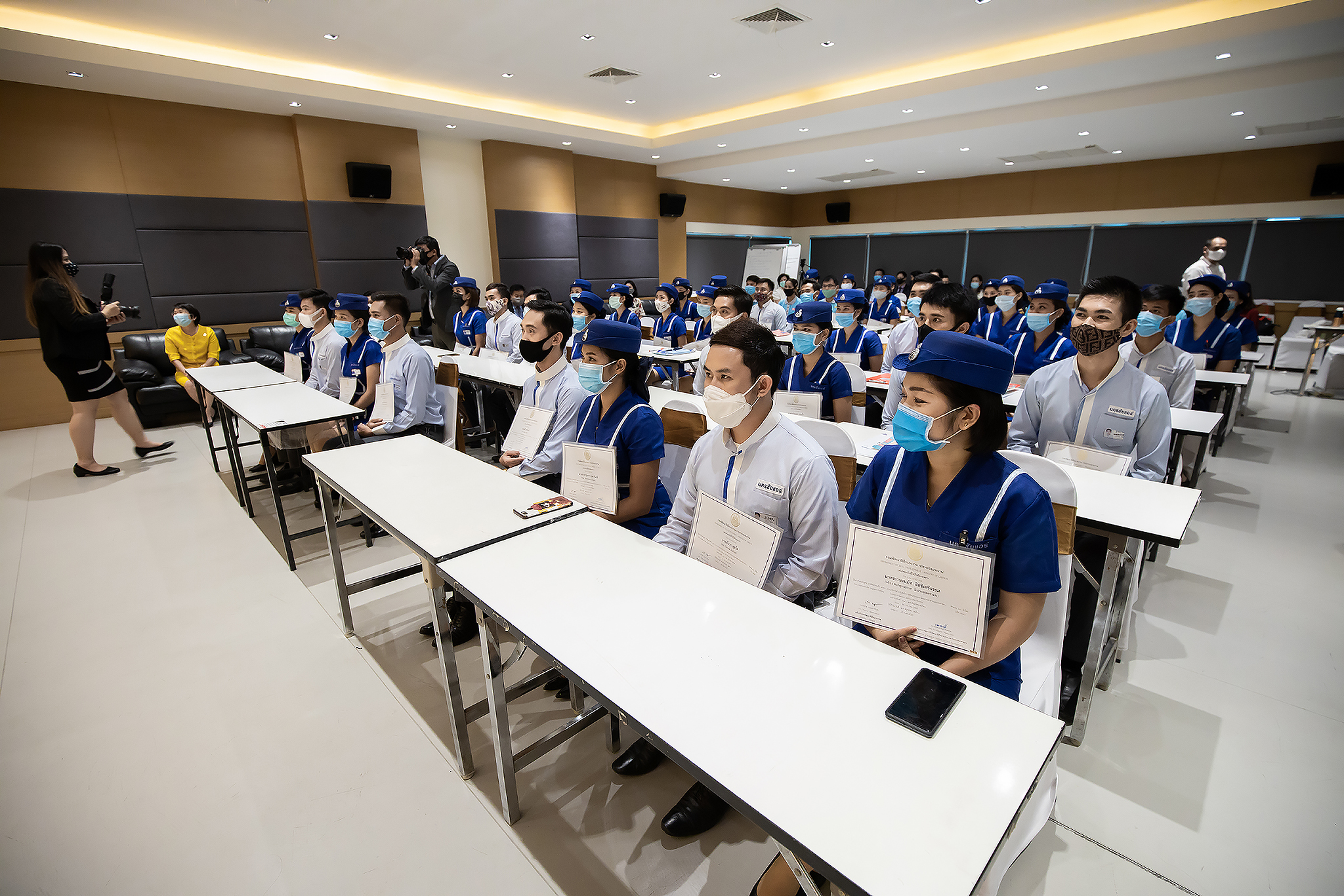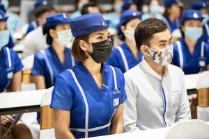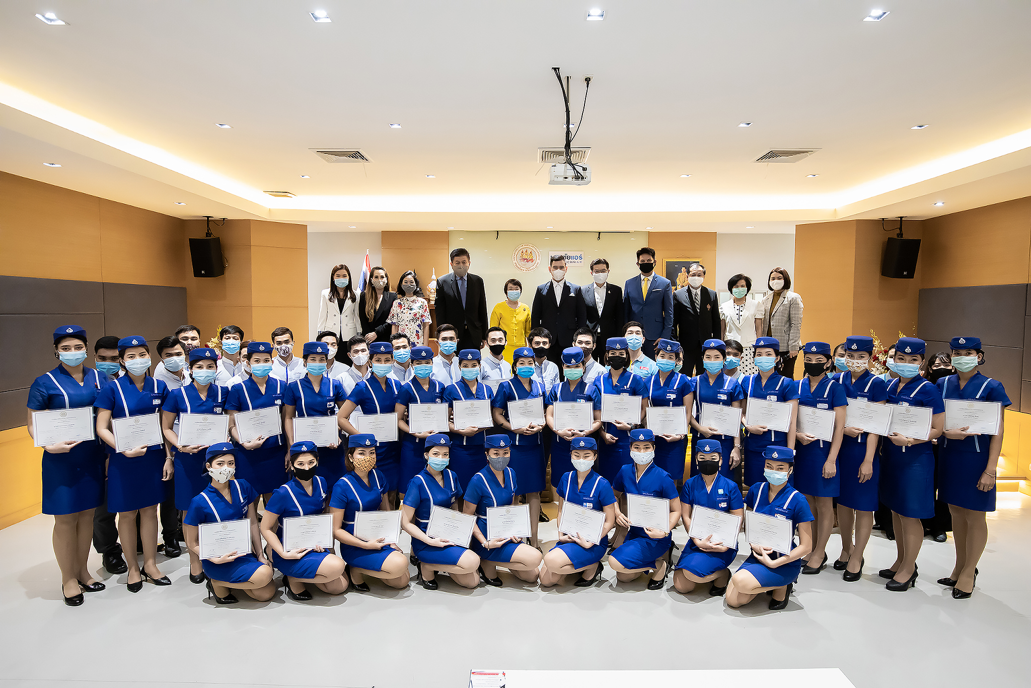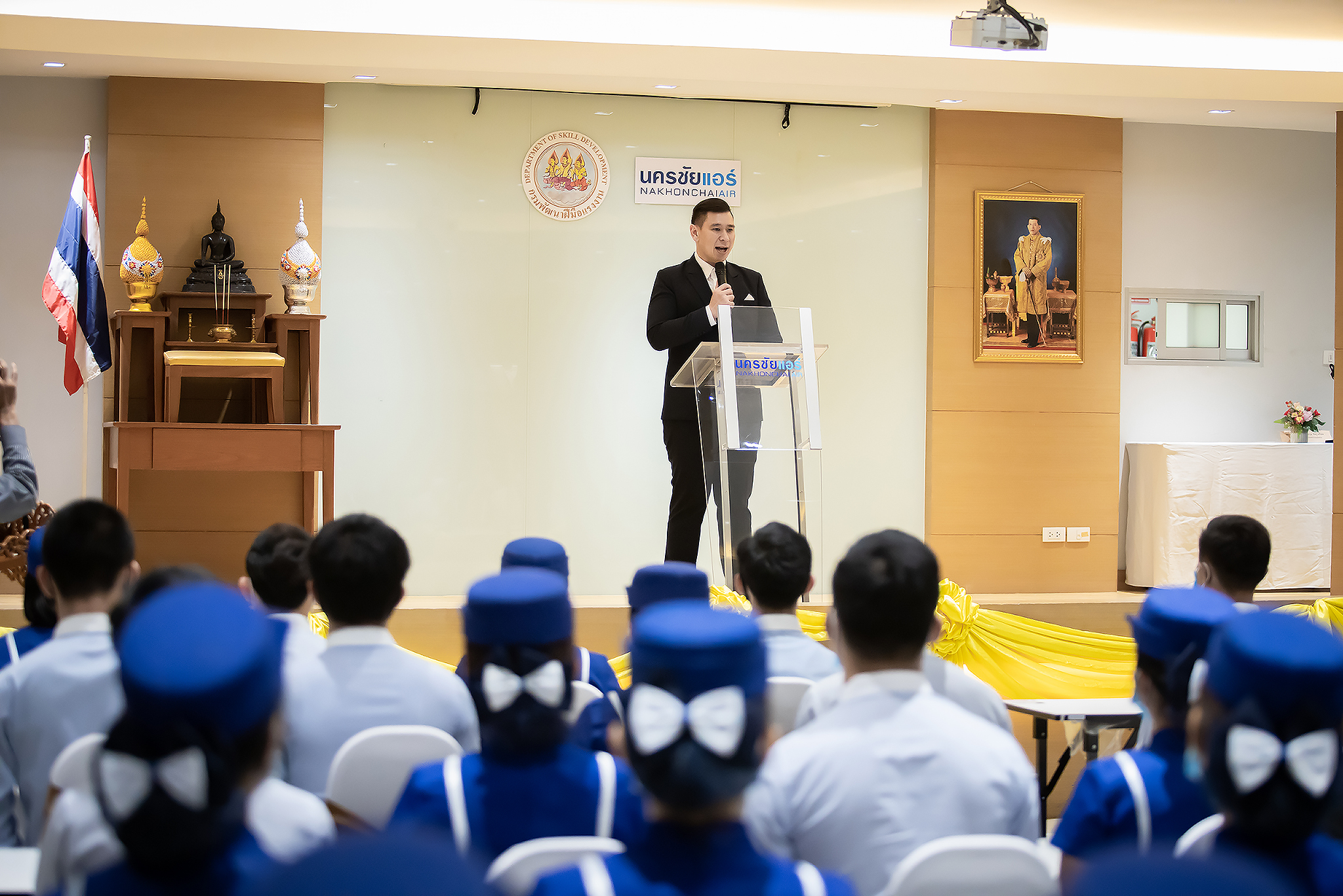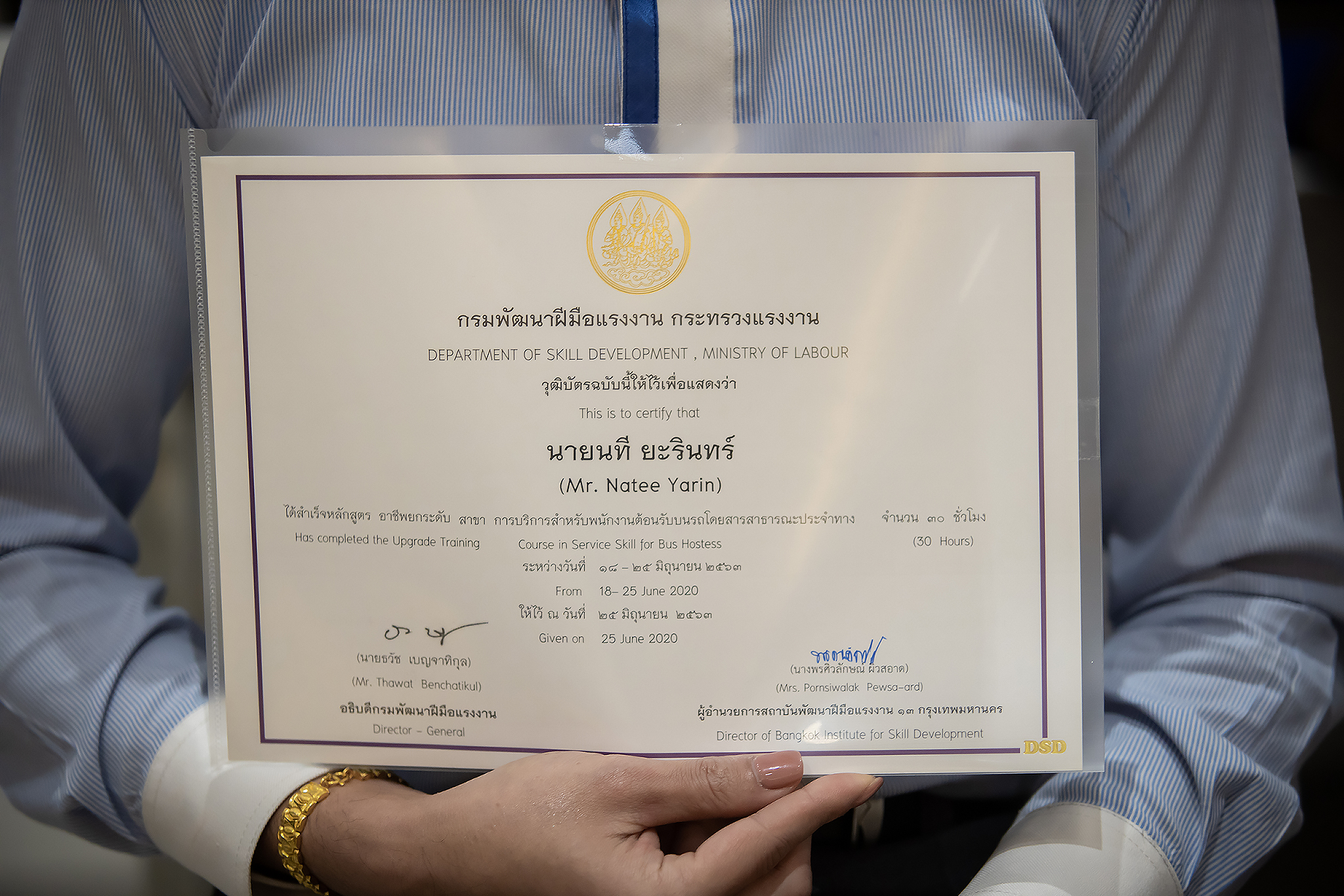 วันนี้ (25 มิ.ย. 63) เวลา 15.00 น. ดร.ดวงฤทธิ์ เบ็ญจาธิกุล ชัยรุ่งเรือง ผู้ช่วยรัฐมนตรีประจำกระทรวงแรงงาน เป็นประธานมอบวุฒิบัตรและปิดโครงการพัฒนาทักษะแรงงานด้านการท่องเที่ยวและบริการหลักสูตรยกระดับฝีมือ สาขาการบริการสำหรับพนักงานต้อนรับบนรถโดยสารสาธารณะประจำทาง ให้แก่พนักงานบริษัท นครชัยแอร์ จำกัด ซึ่งมีผู้เข้าร่วมการอบรมจำนวน 49 คน รวมระยะเวลาการฝึกอบรม 30 ชั่วโมง โดยมี นางเธียรรัตน์ นะวะมะวัฒน์ รองปลัดกระทรวงแรงงาน นายวิชัย ผิวสอาด รองอธิบดีกรมพัฒนาฝีมือแรงงาน และคณะผู้บริหาร ให้เกียรติเข้าร่วมพิธีปิดโครงการ ณ อาคาร 1 ชั้น 3 ห้องจักรินทร์-หฤทัย บริษัทนครชัยแอร์ จำกัด เขตจตุจักร กรุงเทพมหานคร