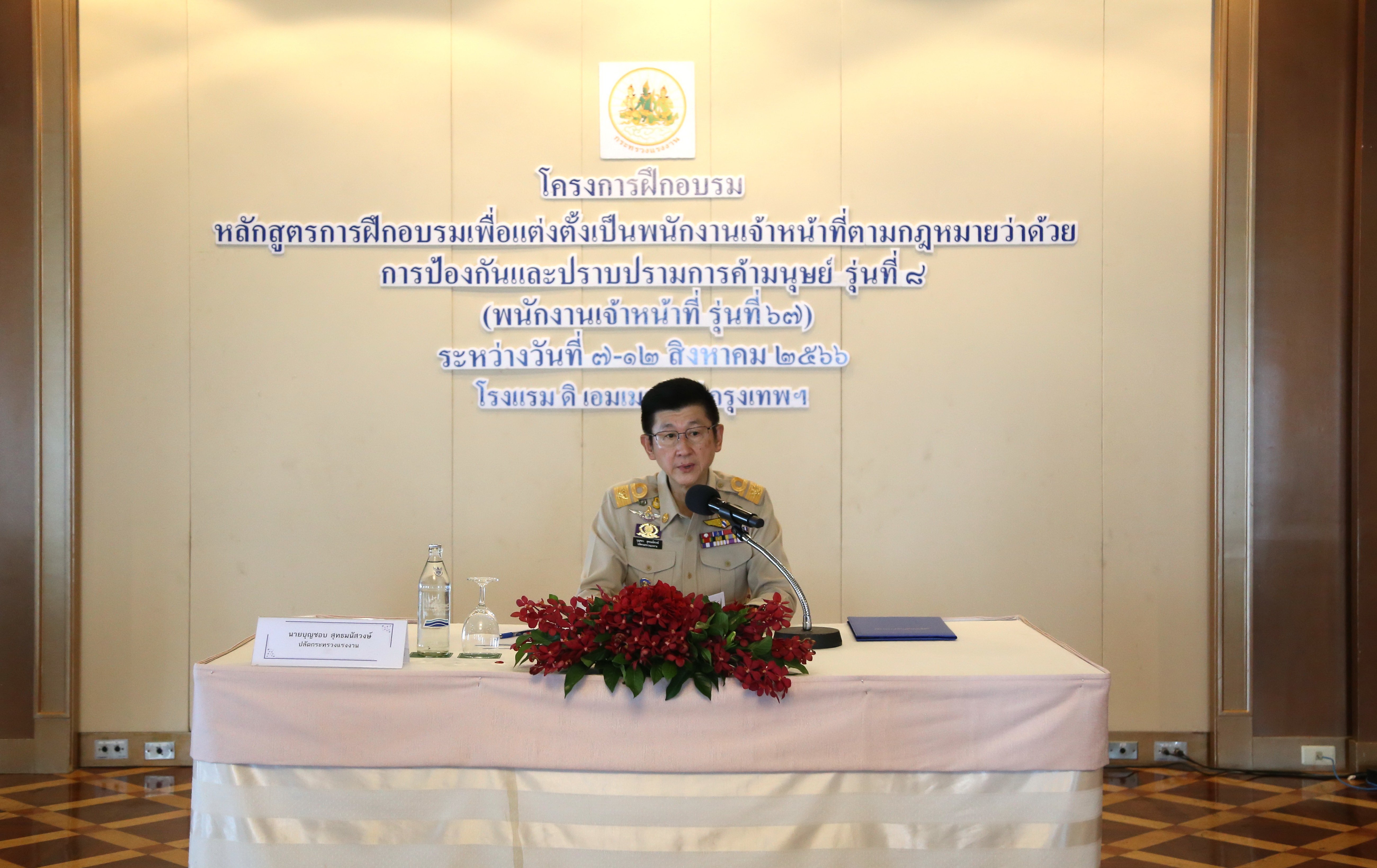 วันที่ 12 สิงหาคม 2566 เวลา 11.00 น. นายบุญชอบ สุทธมนัสวงษ์ ปลัดกระทรวงแรงงาน เป็นประธานในพิธีปิดและมอบใบประกาศนียบัตรโครงการฝึกอบรมหลักสูตรการฝึกอบรมเพื่อแต่งตั้งเป็นพนักงานเจ้าหน้าที่ตามกฎหมายว่าด้วยการป้องกันและปราบปรามการค้ามนุษย์ (ฉบับปี พ.ศ. 2565) รุ่นที่ 8 เพื่อให้ผู้เข้ารับการอบรมมีความรู้ความเข้าใจเกี่ยวกับนโยบายการป้องกันและปราบปรามการค้ามนุษย์และการบังคับใช้แรงงานหรือบริการ การให้ความช่วยเหลือผู้เสียหายจากการค้ามนุษย์และการบังคับใช้แรงงานหรือบริการตามหลักกฎหมายและหลักสากล รวมทั้งมีคุณสมบัติตามกฎกระทรวงกำหนดคุณสมบัติผู้ซึ่งจะได้รับการแต่งตั้งเป็นพนักงานเจ้าหน้าที่ตามพระราชบัญญัติป้องกันและปราบปรามการค้ามนุษย์ พ.ศ. 2551 และที่แก้ไขเพิ่มเติม โดยมี นายวรรณรัตน์ ศรีสุขใส รองปลัดกระทรวงแรงงาน เข้าร่วมพิธีปิด นางสาวโสภณา บุญ–หลง ผู้อำนวยการสำนักงานเลขานุการศูนย์บัญชาการป้องกันการค้ามนุษย์ด้านแรงงาน กล่าวรายงานผลการฝึกอบรม ณ โรงแรมดิเอมเมอรัลด์ ถนนรัชดาภิเษก กรุงเทพมหานคร