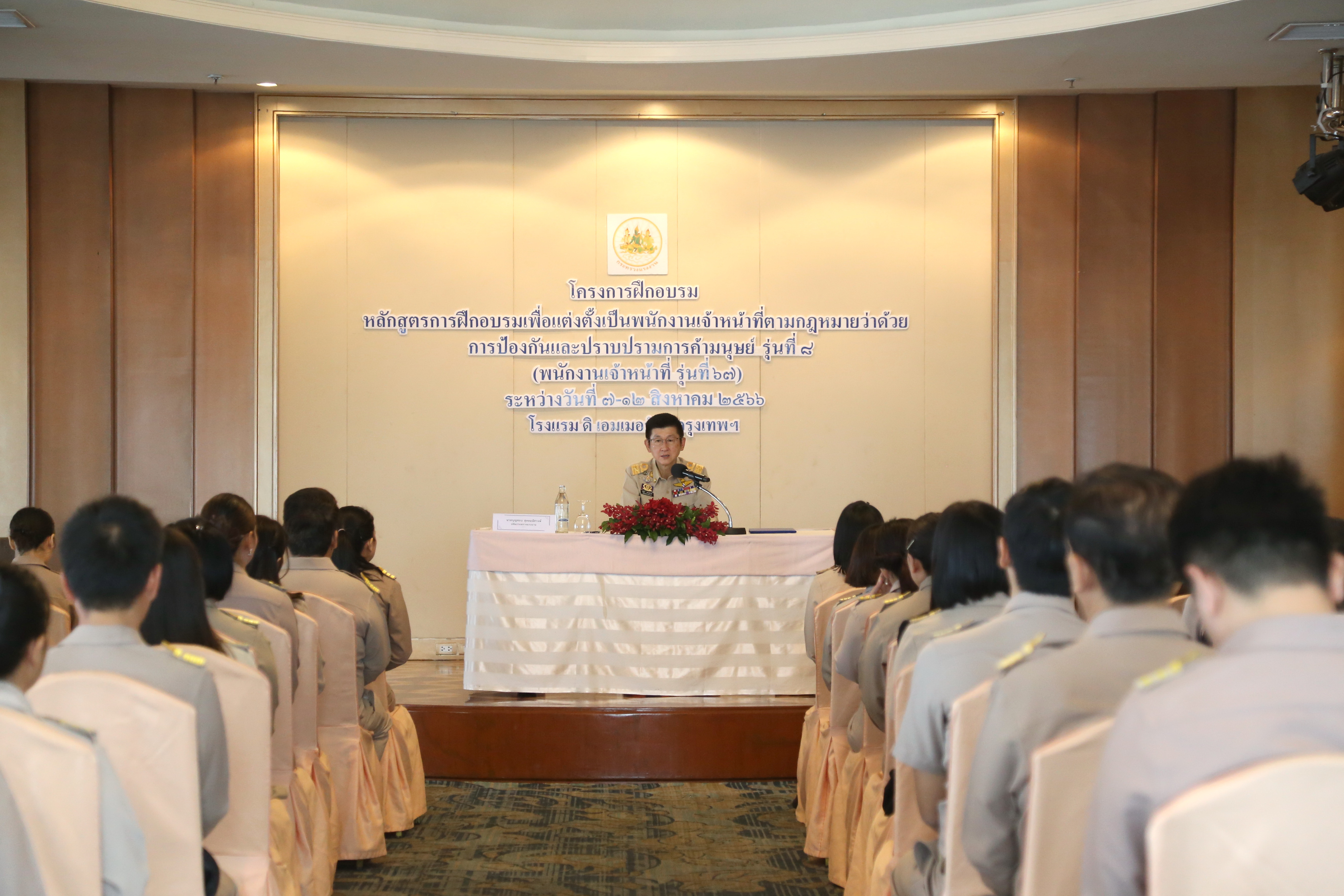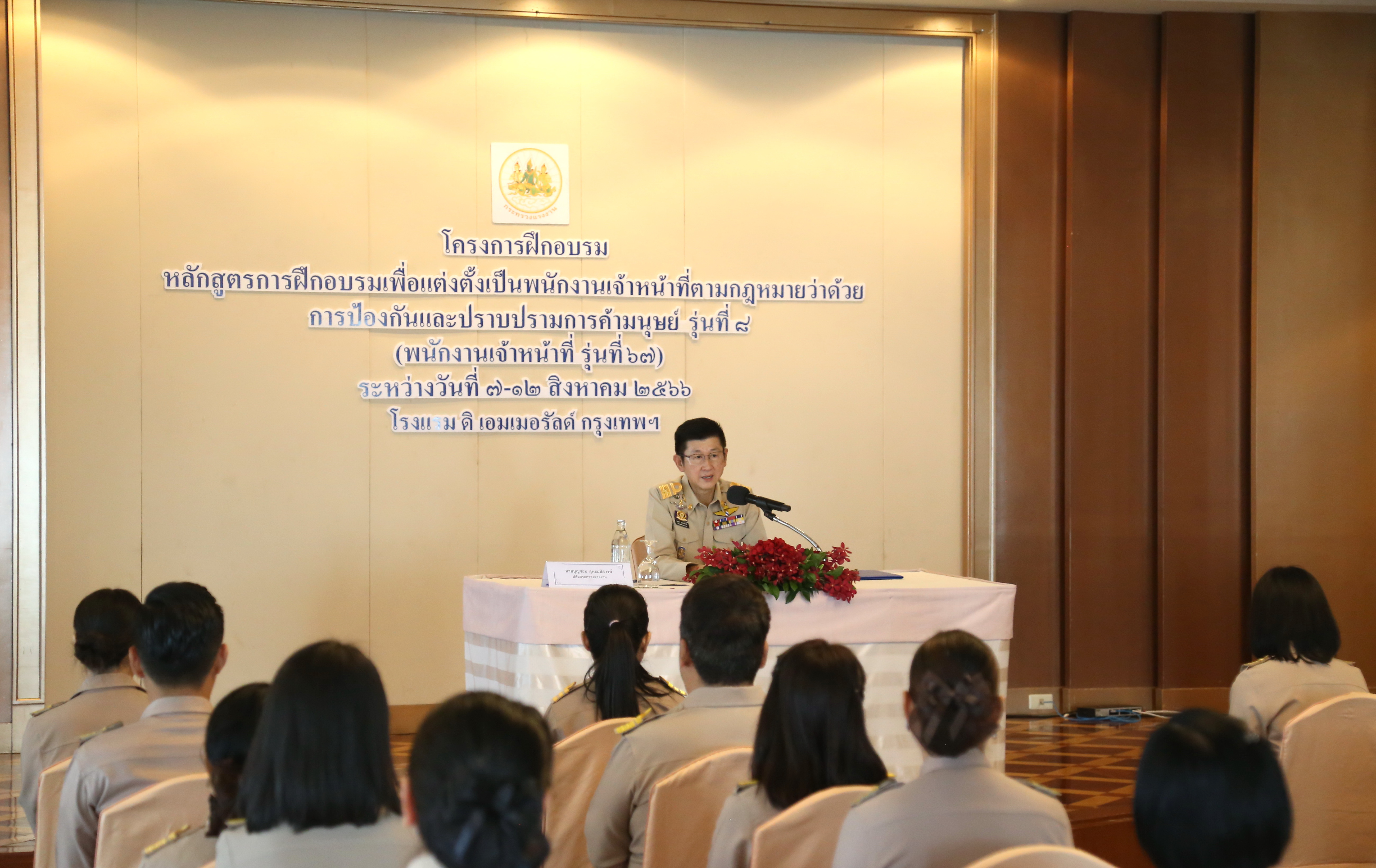 ขอให้ผู้เข้ารับการฝึกอบรมทุกท่านได้นำความรู้ความสามารถที่ได้รับจากการอบรมในครั้งนี้ รวมทั้งการใช้อำนาจหน้าที่ของพนักงานเจ้าหน้าที่ตามกฎหมายว่าด้วยการป้องกันและปราบปรามการค้ามนุษย์ในการปฏิบัติงานป้องกันและปราบปรามการค้ามนุษย์และการบังคับใช้แรงงานหรือบริการได้อย่างมีประสิทธิภาพ ปลัดกระทรวงแรงงาน กล่าวท้ายสุด