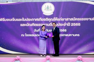 รองปลัดกระทรวงแรงงาน กล่าวเพิ่มเติมว่า ในปีงบประมาณ 2569 กระทรวงแรงงานจะเดินหน้าขับเคลื่อนภารกิจสำคัญ เพื่อให้ผู้ที่อยู่ในวัยแรงงานมีโอกาสมีงานทำมากขึ้น ทั้งการส่งเสริมการทำงานในต่างประเทศ การจัดหางานให้ผู้ว่างงานได้มีงานทำ การพัฒนาทักษะเพื่อเพิ่มรายได้ การคุ้มครองสิทธิแรงงาน รวมถึงการสร้างหลักประกันความมั่นคงด้านอาชีพ ทั้งแรงงานในระบบและแรงงานอิสระ ซึ่งจำเป็นต้องอาศัยพลังความร่วมมือจากเครือข่ายอาสาสมัครแรงงานที่มีความเข้มแข็ง เพื่อช่วยเผยแพร่ความรู้ ความเข้าใจ และสร้างการรับรู้แก่ประชาชนในพื้นที่อย่างทั่วถึง