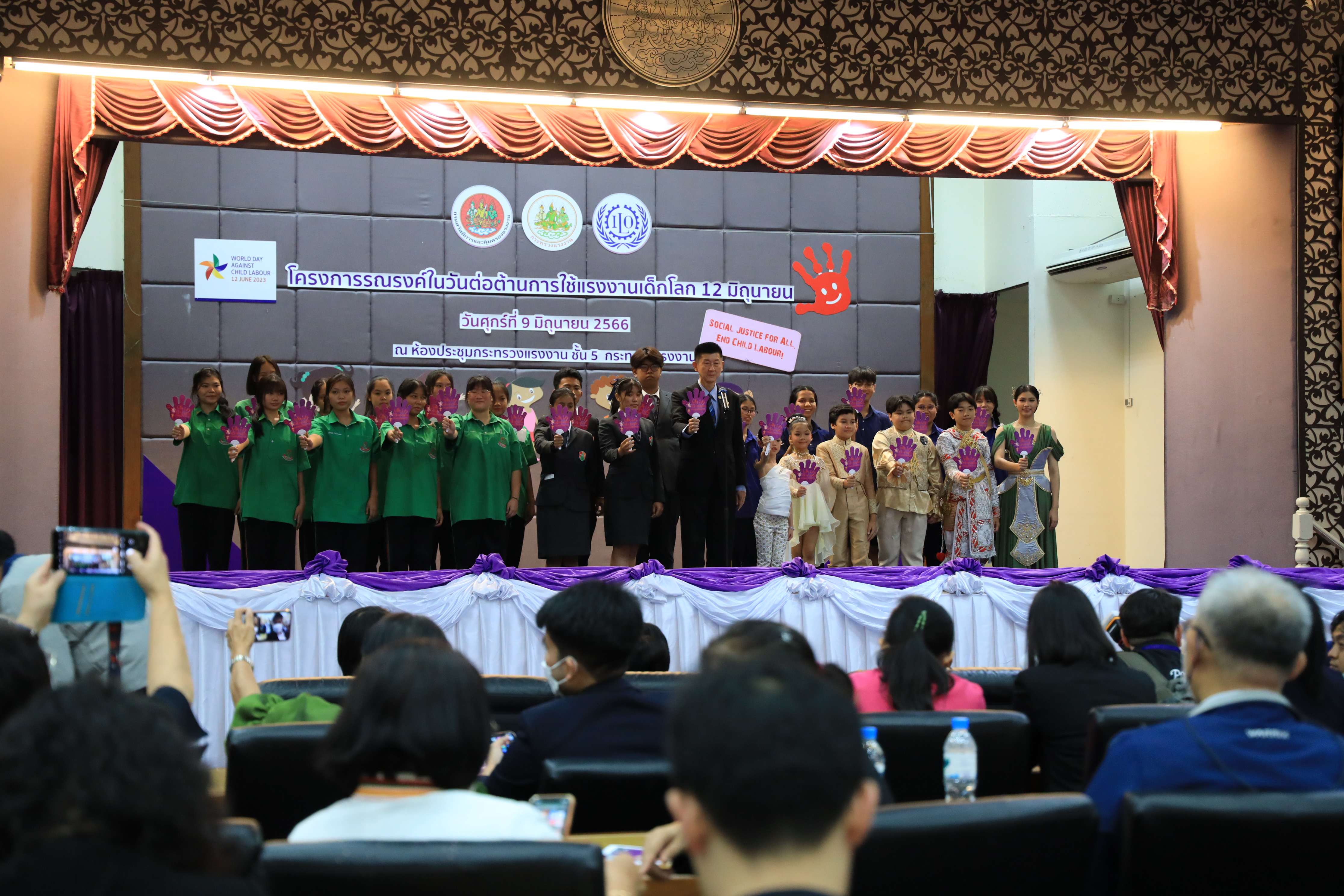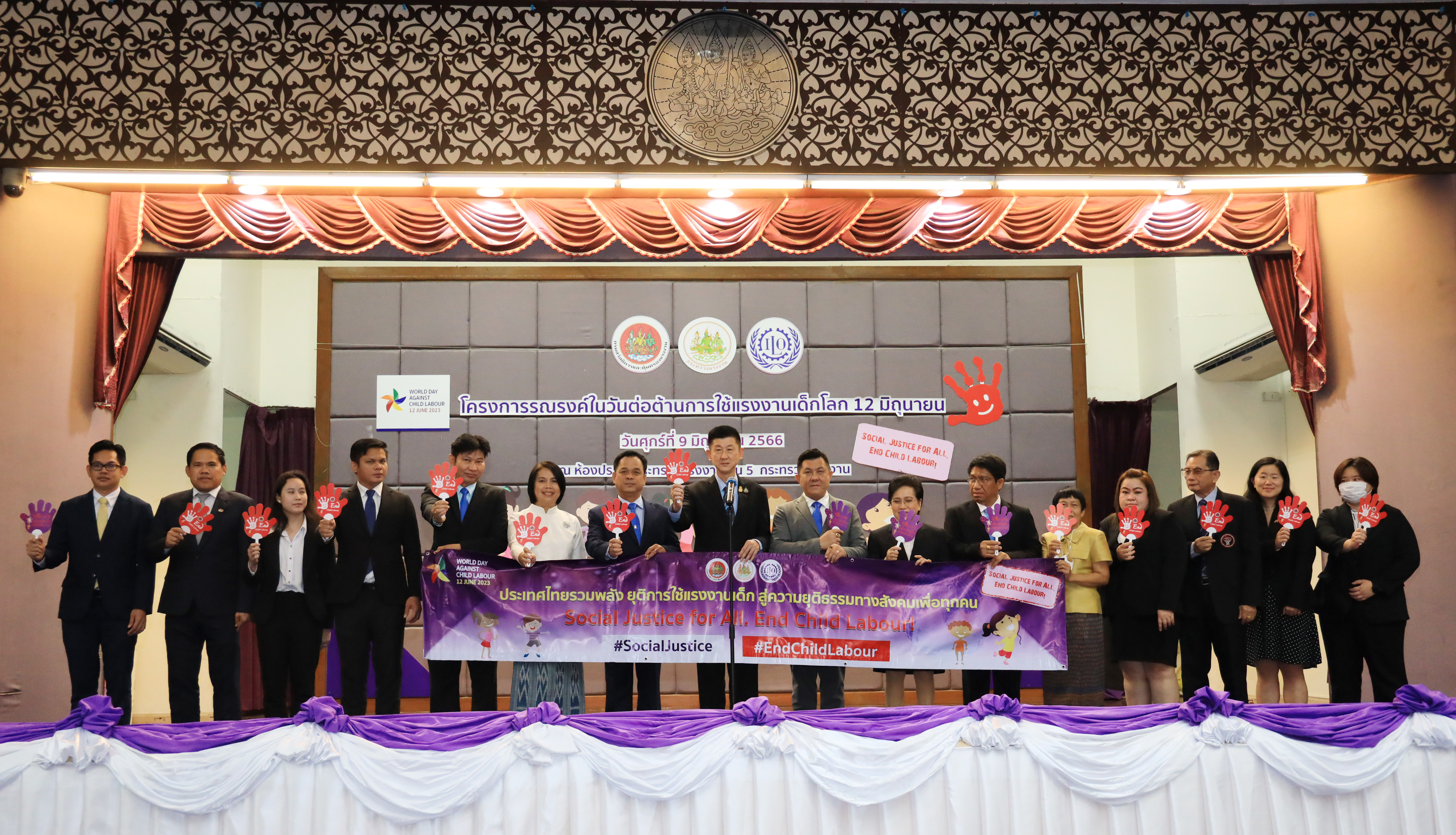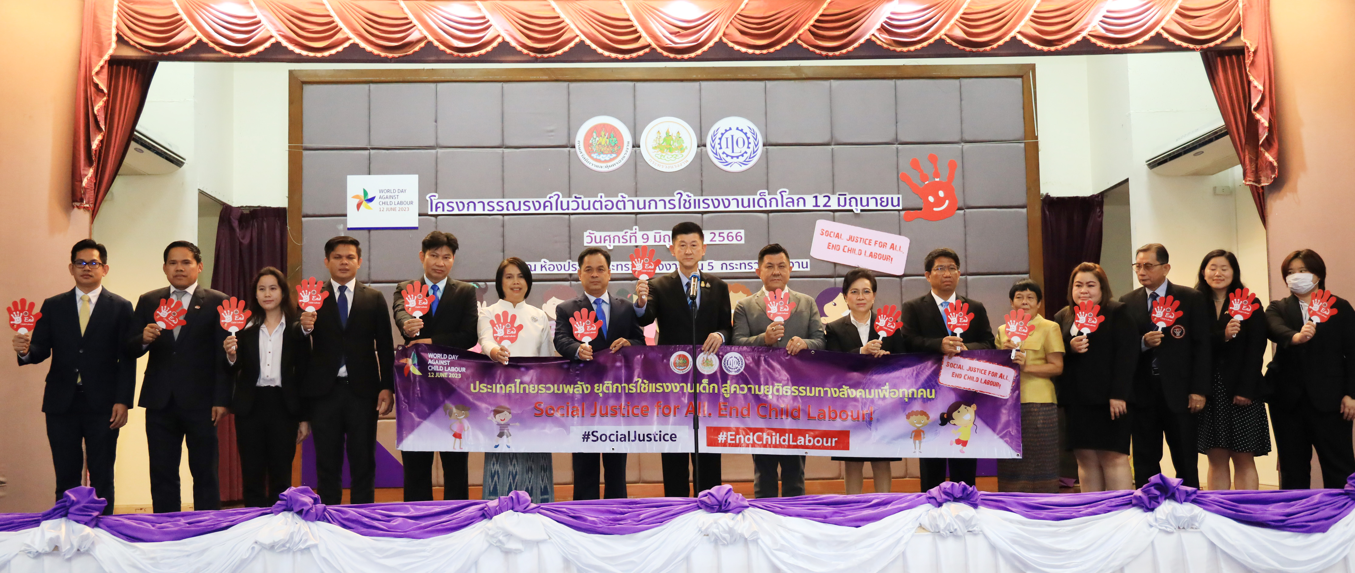 วันที่ 9 มิถุนายน 2566 เวลา 09.00 น. นายบุญชอบ สุทธมนัสวงษ์ ปลัดกระทรวงแรงงาน เป็นประธานในพิธีเปิดงานวันต่อต้านการใช้แรงงานเด็กโลก 12 มิถุนายน ประจำปี 2566 พร้อมด้วยคณะผู้บริหารระดับสูง มุ่งขจัดปัญหาการใช้แรงงานเด็กในรูปแบบเลวร้ายทุกรูปแบบให้หมดสิ้นไป ภายใต้การดำเนินการตามแผนปฏิบัติการด้านการขจัดการใช้แรงงานเด็กในรูปแบบที่เลวร้าย ปีงบประมาณ พ.ศ. 2566 – 2570 ณ ห้องประชุมกระทรวงแรงงาน ชั้น 5 กระทรวงแรงงาน