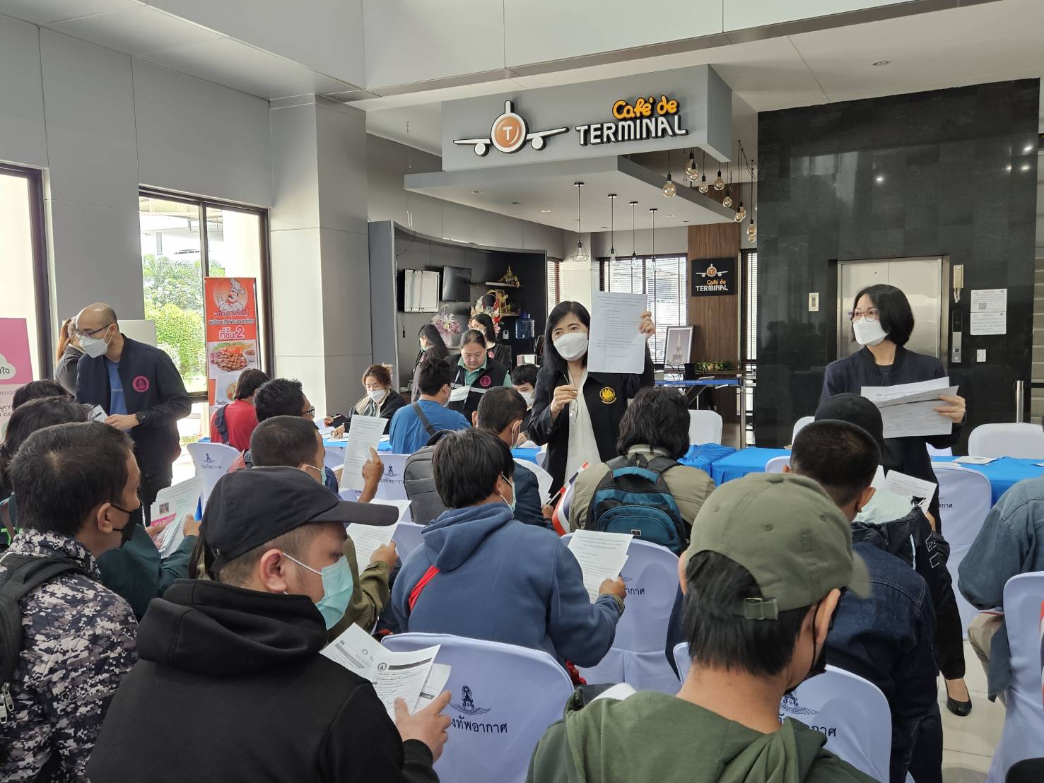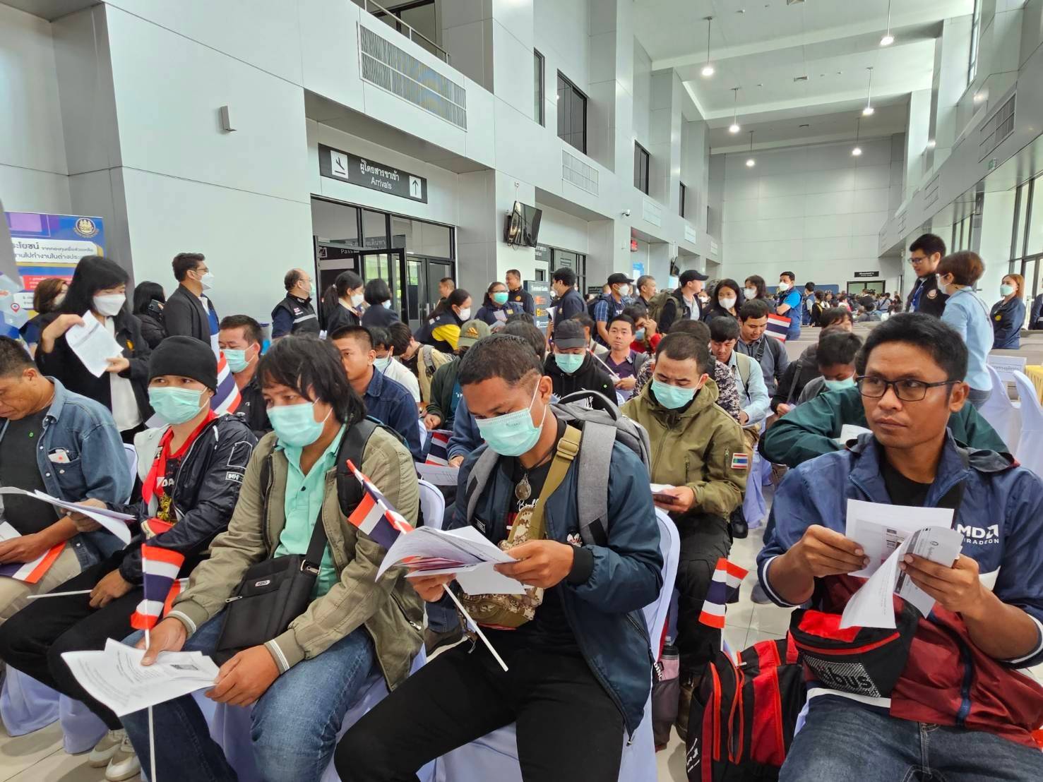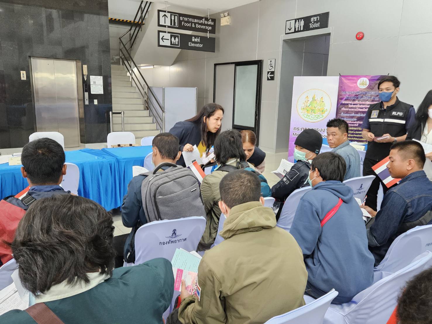 โดยมีผู้บริหารระดับสูงกระทรวงแรงงาน และหน่วยงานราชการต่างๆร่วมอำนวยความสะดวกและแนะนำสิทธิในการช่วยเหลือเยียวยา เช่น กระทรวงการพัฒนาสังคมและความมั่นคงของมนุษย์ ดูแลกรณีแรงงานไม่มีเงินค่าเดินทางกลับภูมิลำเนา กระทรวงยุติธรรม ให้คำแนะนำการพักชำระหนี้ การไกล่เกลี่ยหนี้ ในส่วนของเจ้าหน้าที่จากกระทรวงแรงงานนั้น กรมการจัดหางานได้ตั้งโต๊ะให้คำแนะนำการยื่นคำร้องขอรับสิทธิประโยชน์จากกองทุนเพื่อช่วยเหลือคนหางานไปทำงานต่างประเทศ โดยทันทีที่มาถึง กระทรวงแรงงานได้จัดเจ้าหน้าที่ตั้งโต๊ะให้บริการคำแนะนำเกี่ยวกับการยื่นคำร้องขอรับสิทธิประโยชน์จากกองทุนเพื่อช่วยเหลือแรงงานไทยไปทำงานต่างประเทศ เพื่อให้แรงงานไทยได้รับเงินสิทธิประโยชน์ดังกล่าวโดยเร็วที่สุด