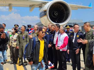 วันที่ 22 ตุลาคม 2566 นายไพโรจน์ โชติกเสถียร ปลัดกระทรวงแรงงาน มอบหมายให้ เรือเอกสาโรจน์ คมคาย ที่ปรึกษากฎหมาย สำนักงานปลัดกระทรวงแรงงาน ต้อนรับและดูแลอำนวยความสะดวกแรงงานไทยที่ได้รับผลกระทบจากความไม่สงบในอิสราเอลที่เดินทางกลับถึงประเทศไทย ด้วยเที่ยวบินพิเศษ ทอ. ณ ท่าอากาศยานทหาร 2 กองบิน 6 จำนวน 139 คน เป็นชาย 136 คน และเป็นหญิง 3 คน โดยมี พล.อ.อ.พันธ์ภักดี พัฒนกุล ผู้บัญชาการทหารอากาศ ให้การต้อนรับ