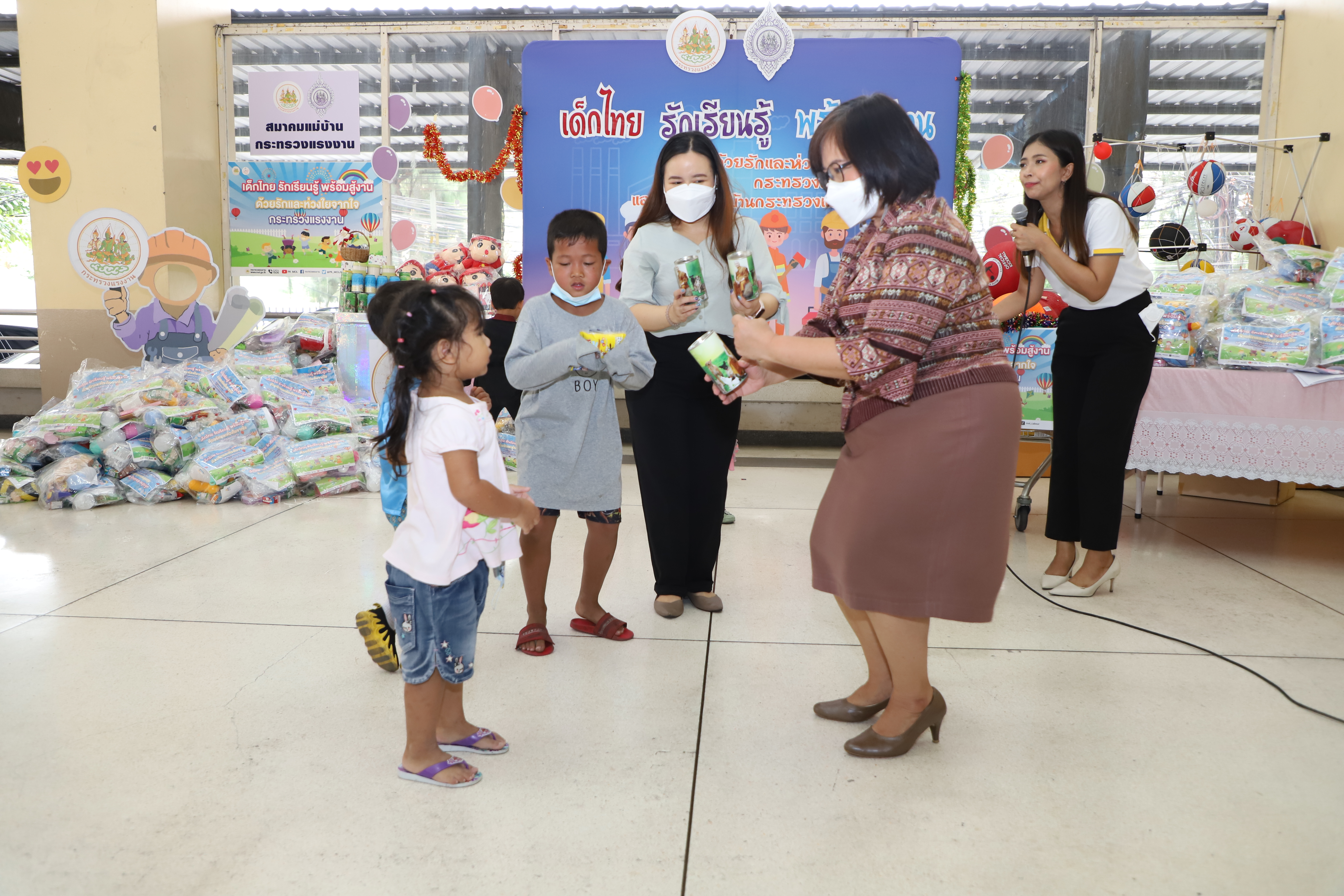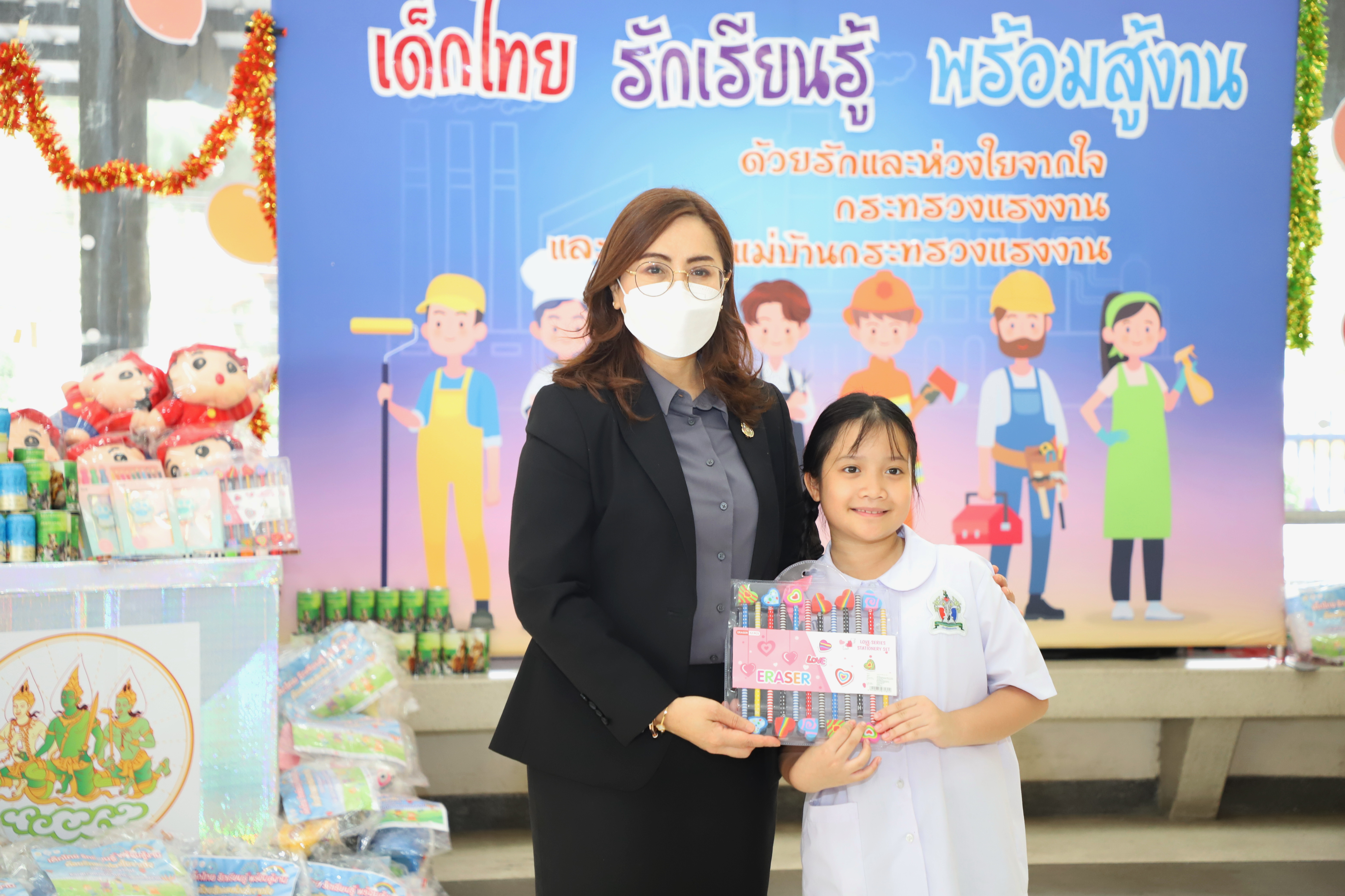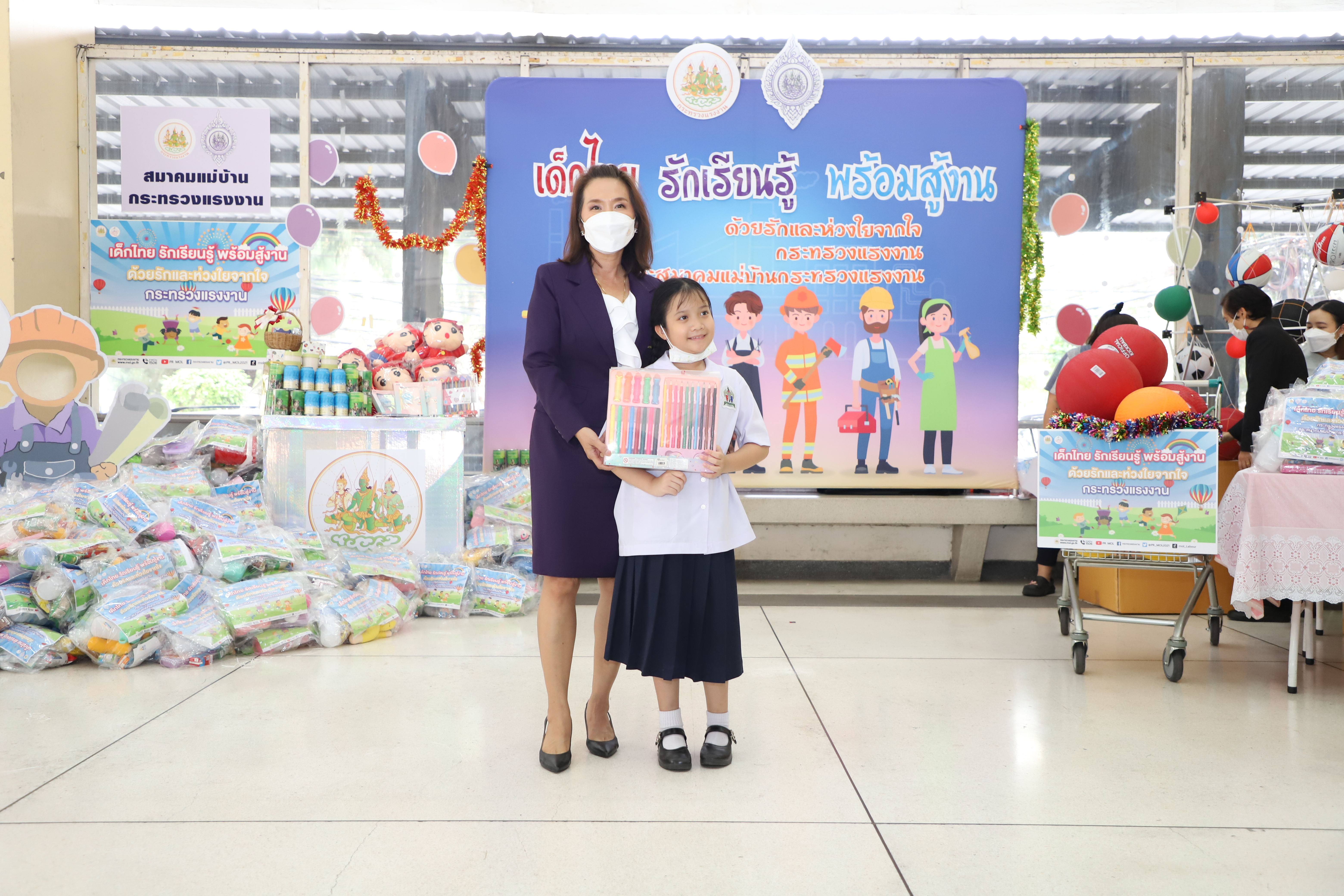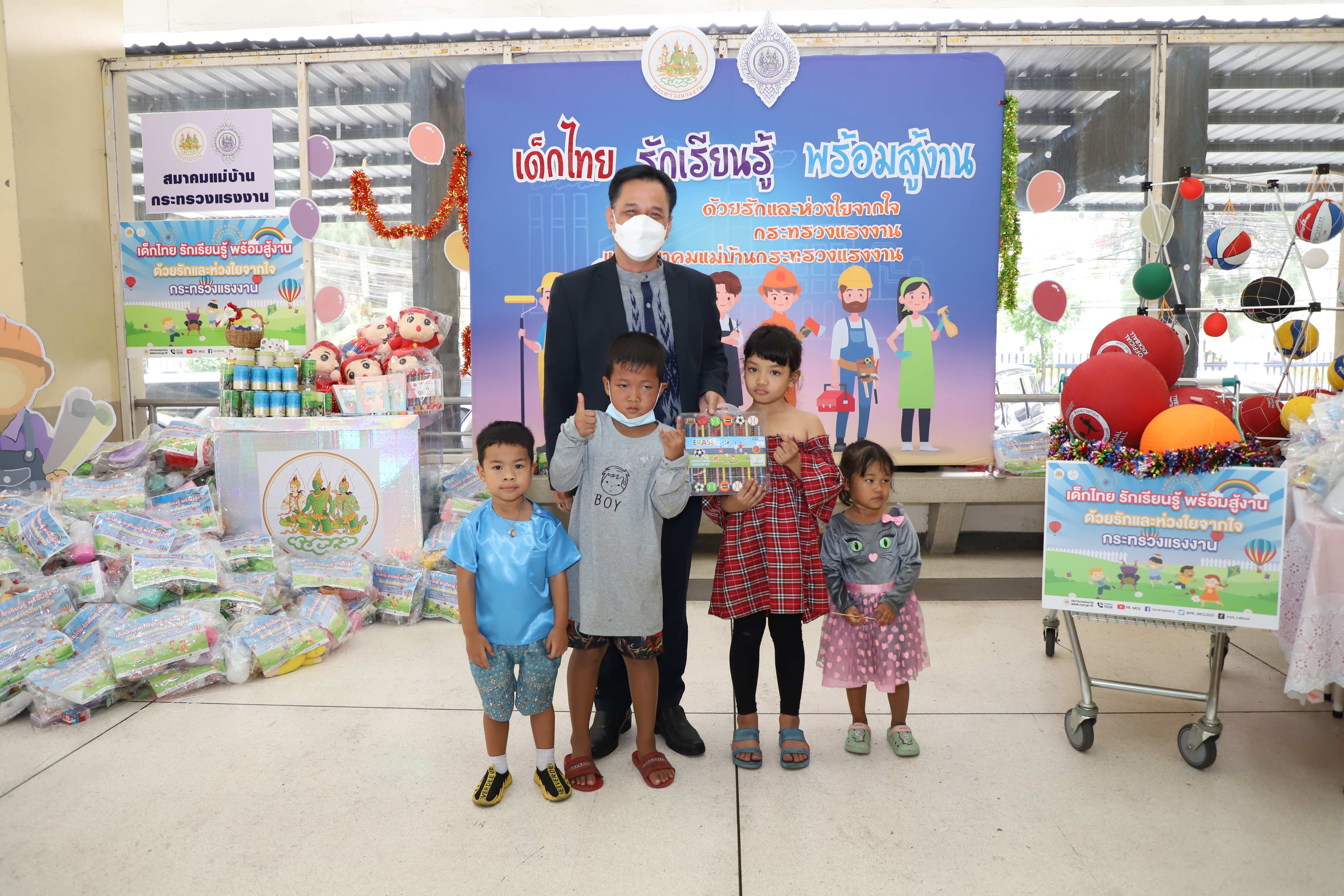 วันที่ 13 มกราคม 2566 นายบุญชอบ สุทธมนัสวงษ์ ปลัดกระทรวงแรงงาน เป็นประธานมอบสิ่งของเครื่องเขียน อุปกรณ์การเรียน อุปกรณ์กีฬา รวมทั้งของเด็กเล่น และขนม เพื่อเป็นของขวัญเนื่องในโอกาสวันเด็กแห่งชาติประจำปี 2566 จำนวนทั้งสิ้น 500 ชุด แก่ตัวแทนผู้นำชุมชนและเด็กในชุมชนแฟลตดินแดง โดยมี นางสาวบุปผา เรืองสุด รองปลัดกระทรวงแรงงาน รักษาราชการแทนอธิบดีกรมพัฒนาฝีมือแรงงาน ในฐานะนายกสมาคมแม่บ้านกระทรวงแรงงาน พร้อมด้วยผู้บริหารระดับสูงกระทรวงแรงงานและสมาคมแม่บ้านกระทรวงแรงงาน ร่วมมอบด้วย เพื่อนำไปส่งต่อให้แก่เด็ก ๆ ในชุมชนชาวแฟลตดินแดงต่อไป ณ บริเวณโถงด้านล่างอาคารกระทรวงแรงงาน