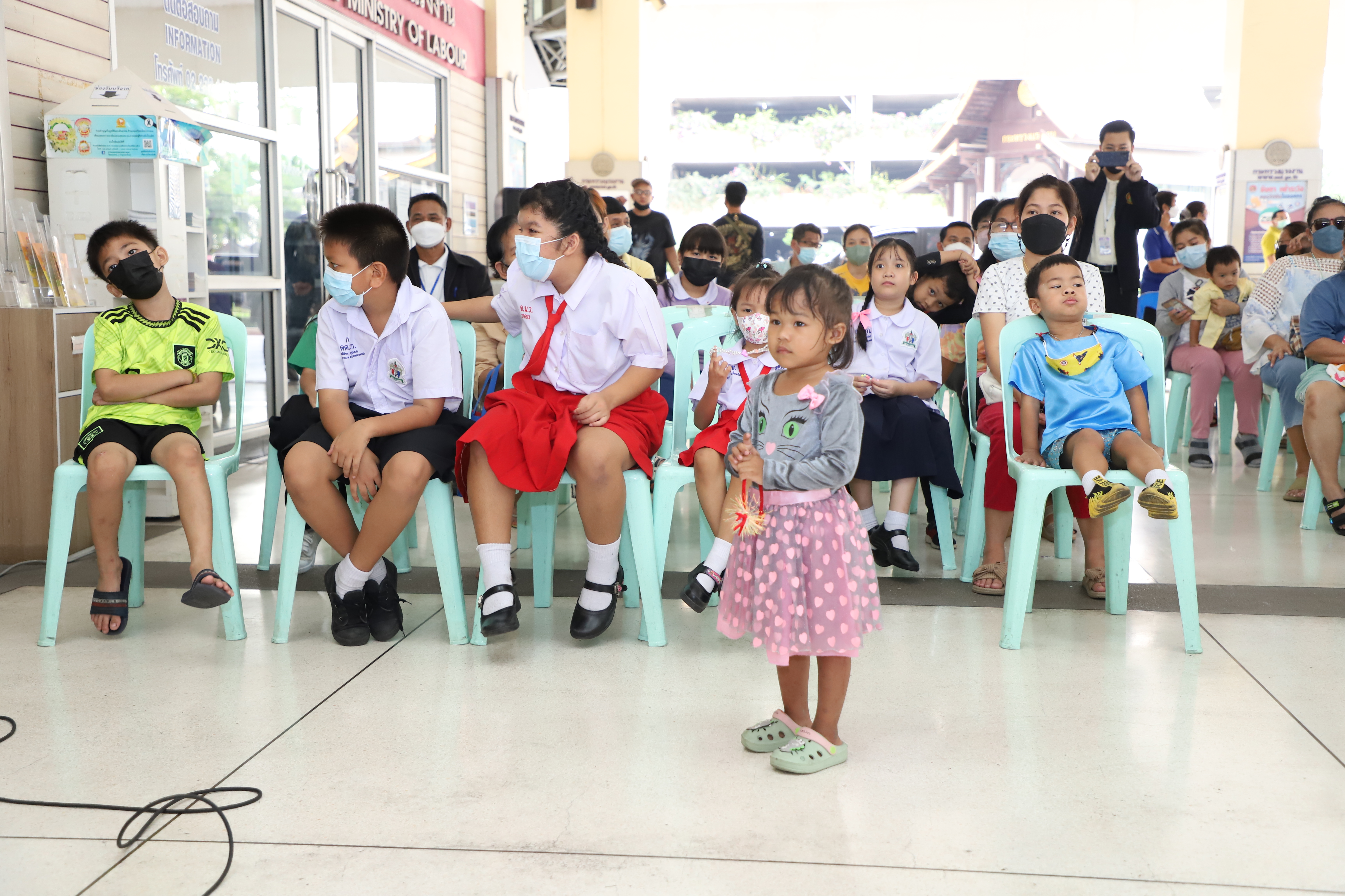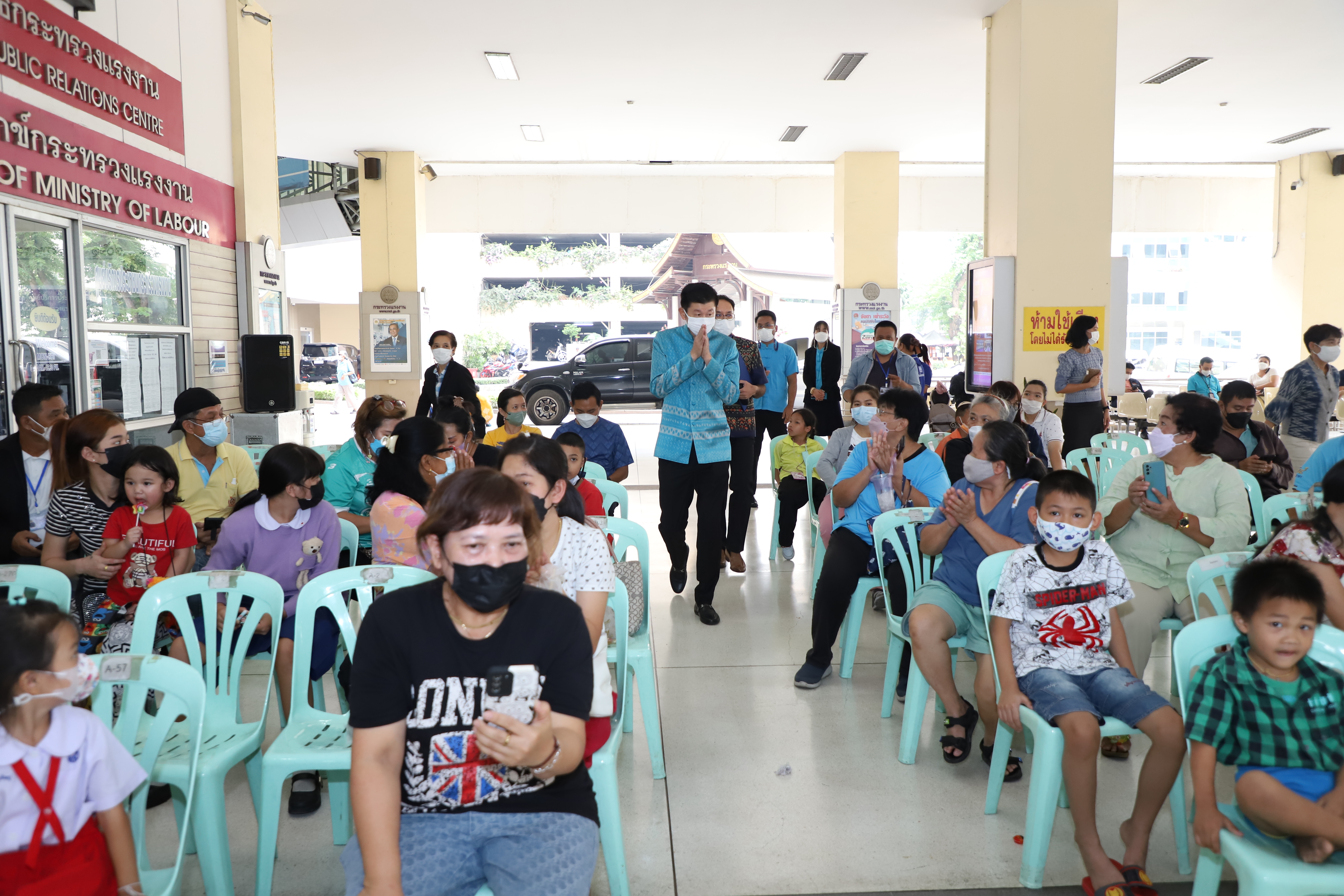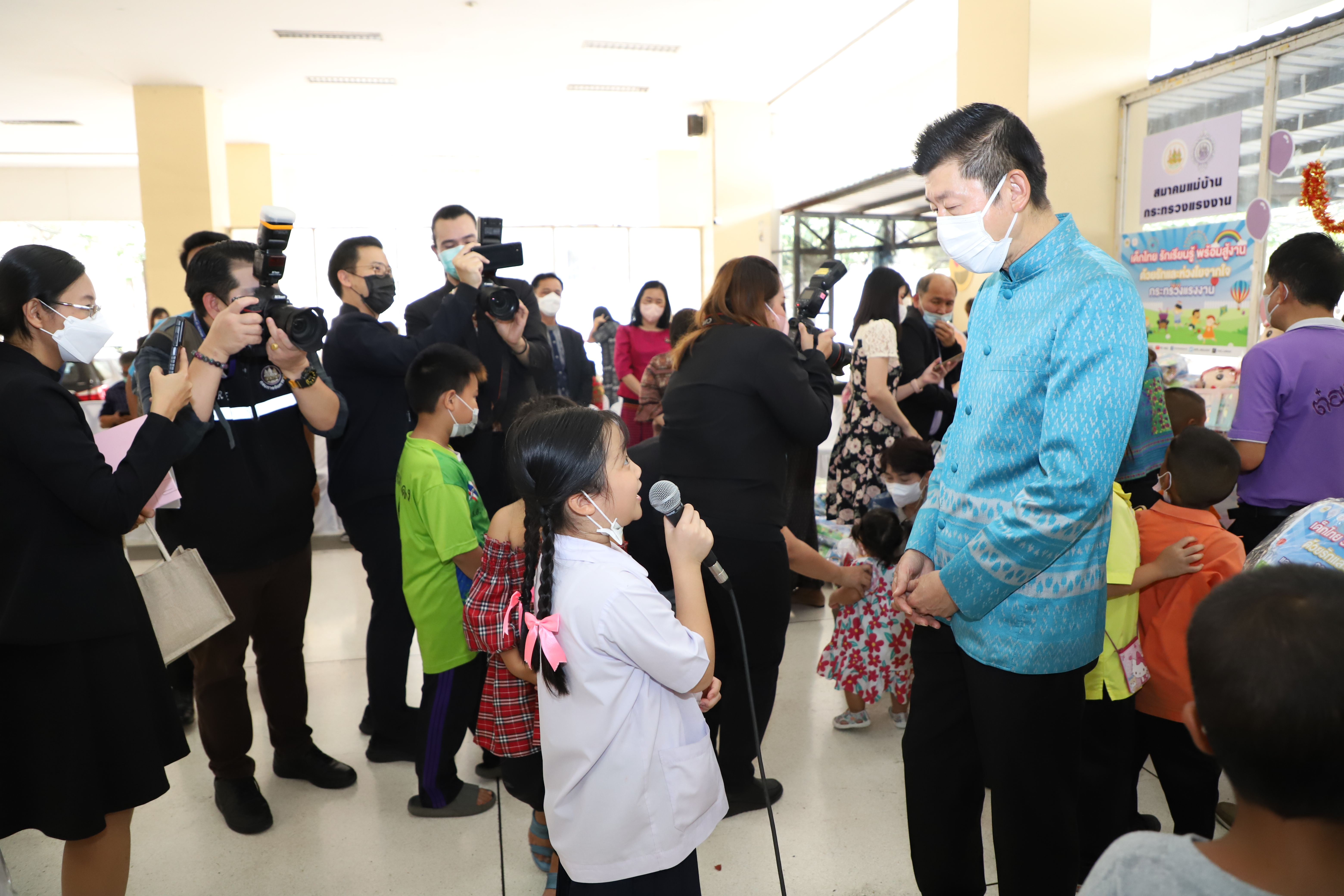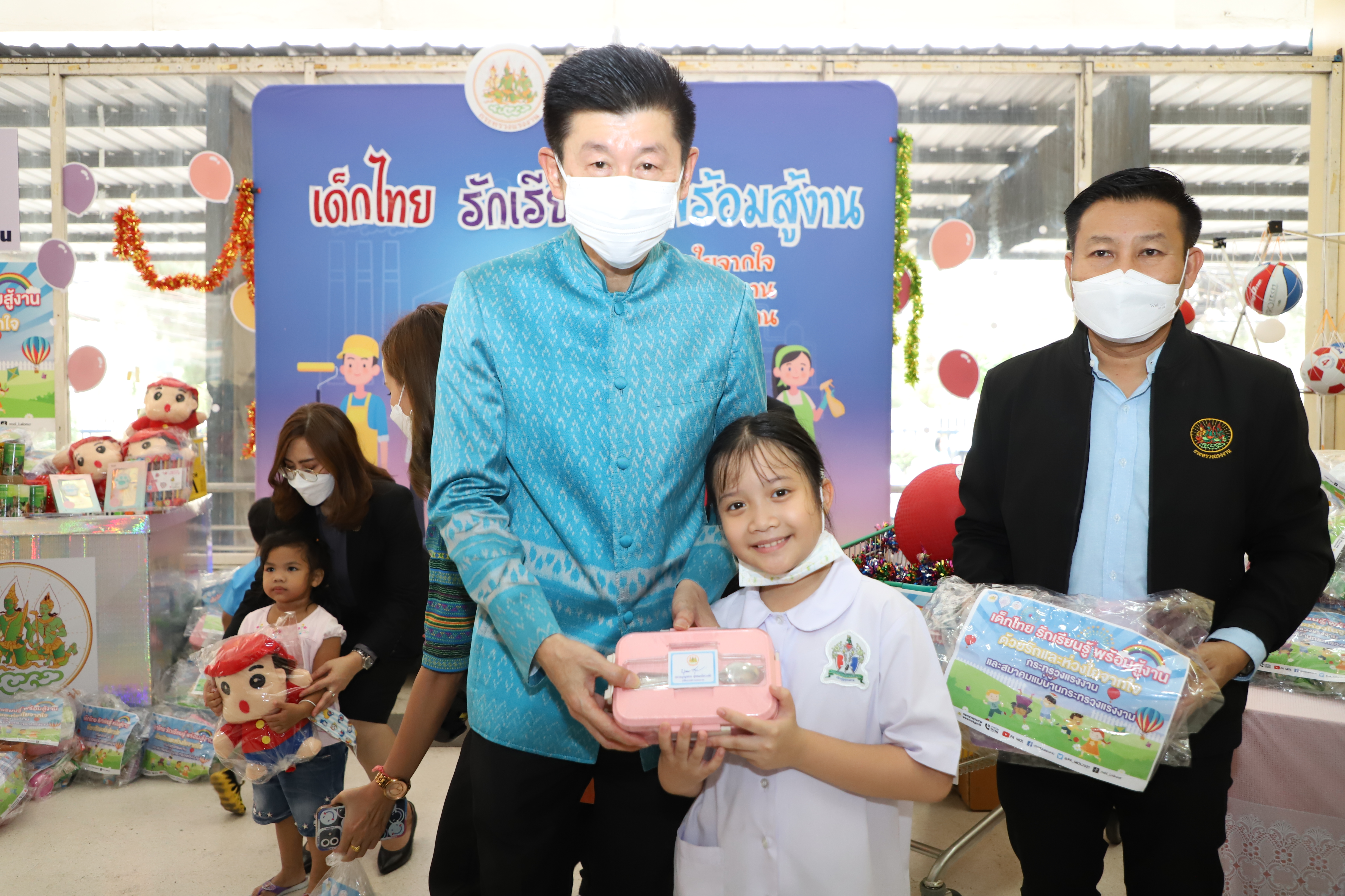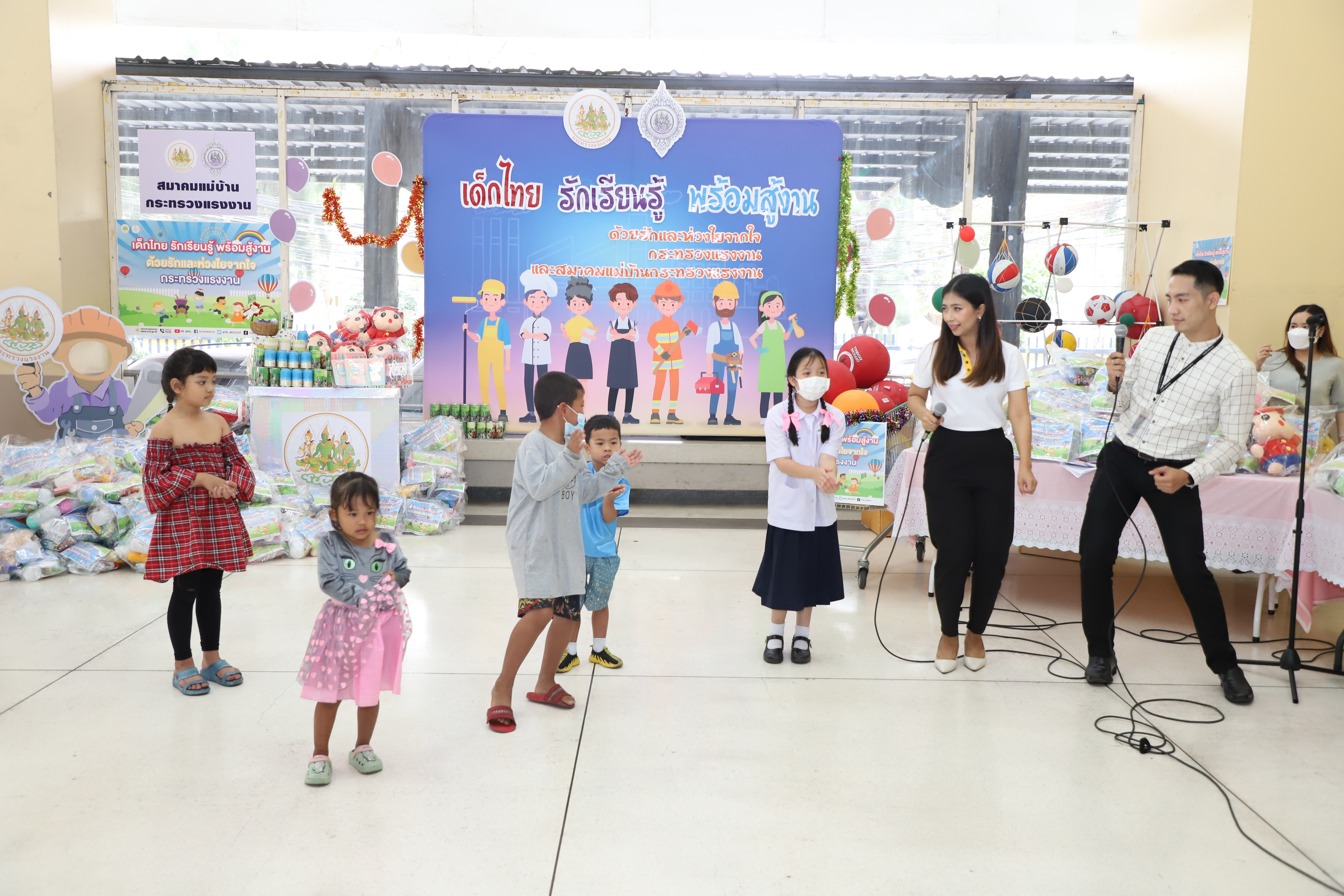 วันที่ 13 มกราคม 2566 นายบุญชอบ สุทธมนัสวงษ์ ปลัดกระทรวงแรงงาน เป็นประธานมอบสิ่งของเครื่องเขียน อุปกรณ์การเรียน อุปกรณ์กีฬา รวมทั้งของเด็กเล่น และขนม เพื่อเป็นของขวัญเนื่องในโอกาสวันเด็กแห่งชาติประจำปี 2566 จำนวนทั้งสิ้น 500 ชุด แก่ตัวแทนผู้นำชุมชนและเด็กในชุมชนแฟลตดินแดง โดยมี นางสาวบุปผา เรืองสุด รองปลัดกระทรวงแรงงาน รักษาราชการแทนอธิบดีกรมพัฒนาฝีมือแรงงาน ในฐานะนายกสมาคมแม่บ้านกระทรวงแรงงาน พร้อมด้วยผู้บริหารระดับสูงกระทรวงแรงงานและสมาคมแม่บ้านกระทรวงแรงงาน ร่วมมอบด้วย เพื่อนำไปส่งต่อให้แก่เด็ก ๆ ในชุมชนชาวแฟลตดินแดงต่อไป ณ บริเวณโถงด้านล่างอาคารกระทรวงแรงงาน