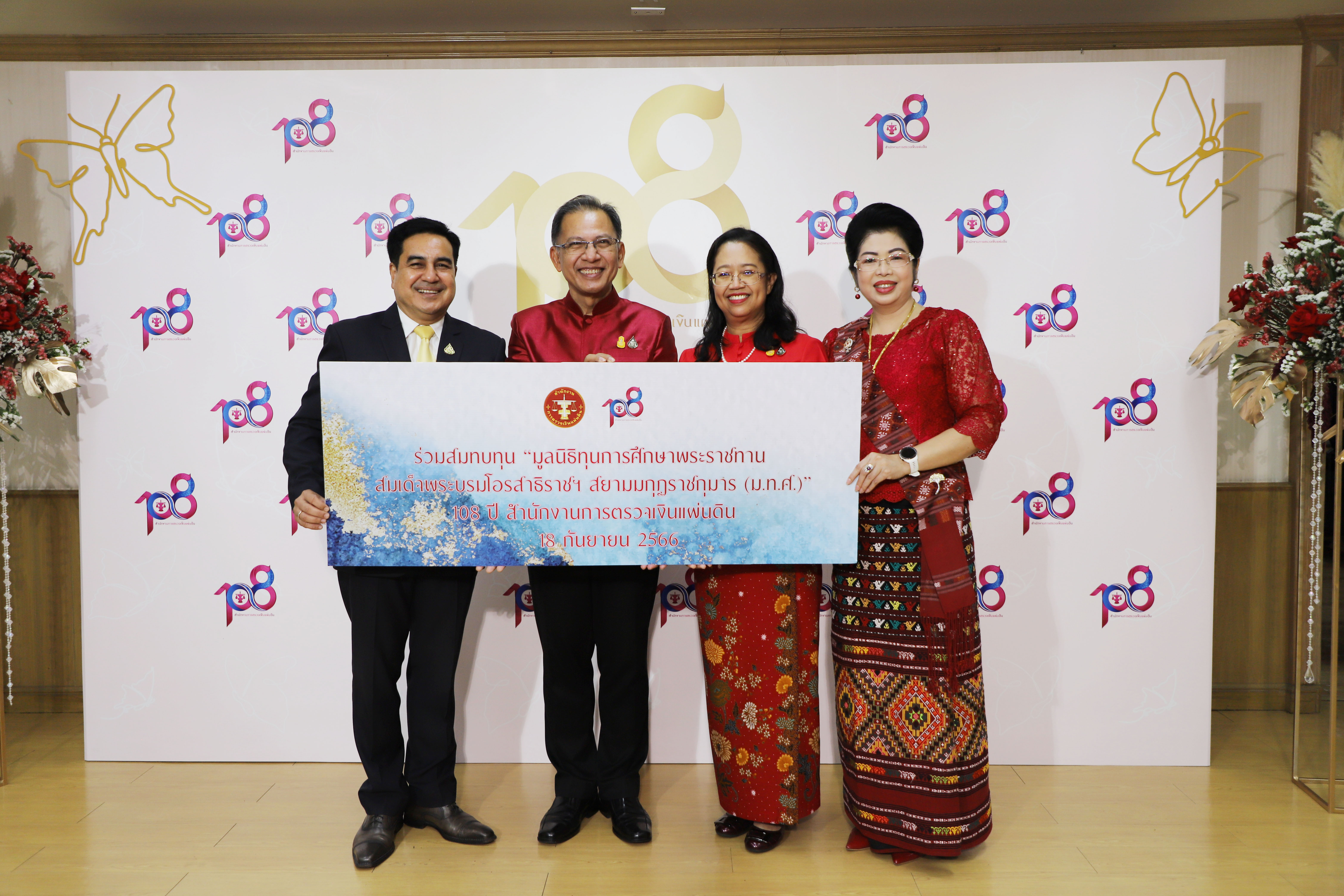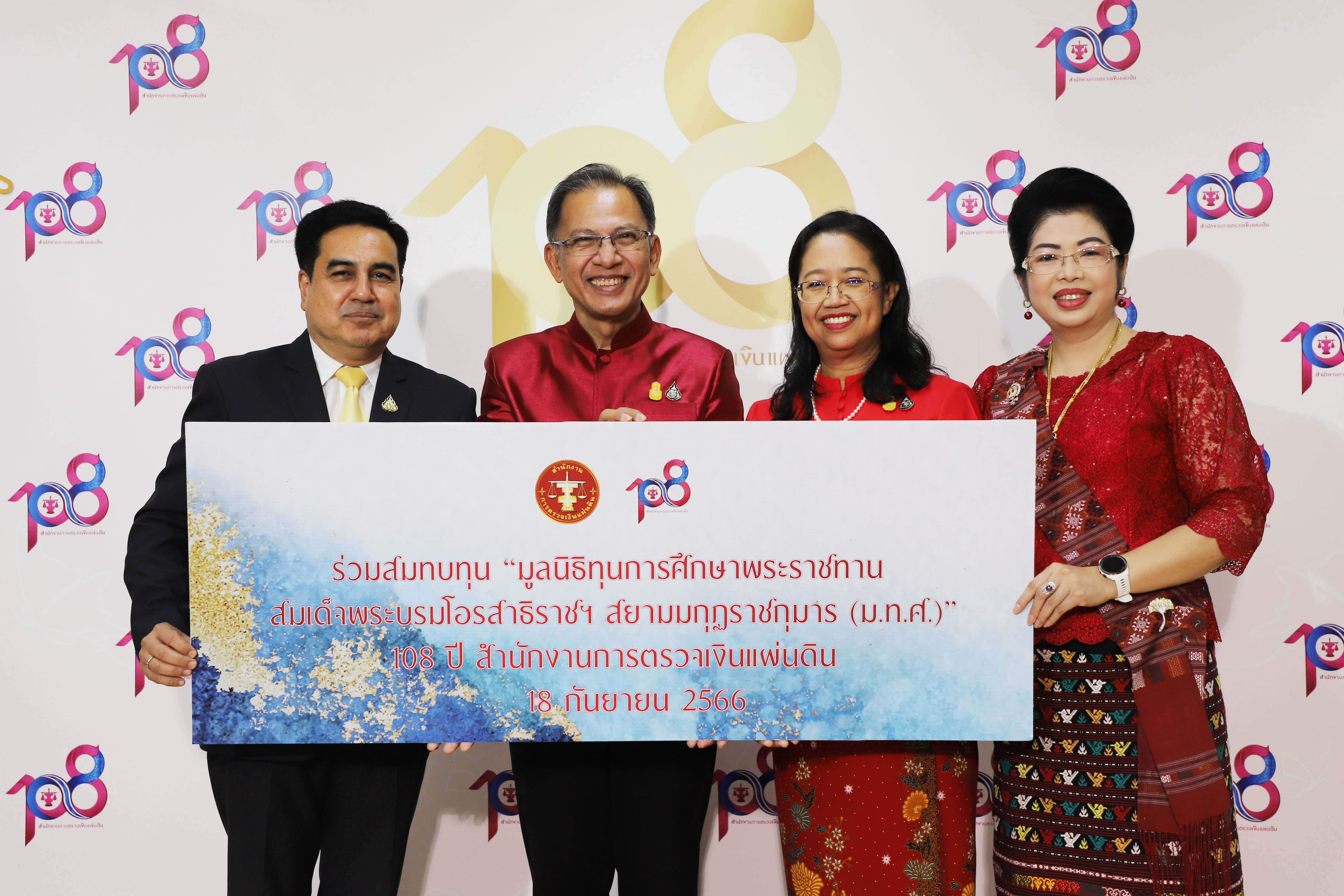 วันที่ 18 กันยายน 2566 นายบุญชอบ สุทธมนัสวงษ์ ปลัดกระทรวงแรงงาน มอบหมายให้ นายนันทชัย ปัญญาสุรฤทธิ์ ผู้ตรวจราชการกระทรวงแรงงาน ร่วมเป็นเกียรติเนื่องในโอกาสวันคล้ายวันสถาปนาสำนักงานการตรวจเงินแผ่นดินครบรอบ 108 ปี พร้อมร่วมสมทบทุน “มูลนิธิทุนการศึกษาพระราชทาน สมเด็จพระบรมโอรสาธิราชฯ สยามมกุฎราชกุมาร (ม.ท.ศ.) ณ ห้องวรพากษ์พินิจ อาคาร 2 ชั้น 3 สานักงานการตรวจเงินแผ่นดิน