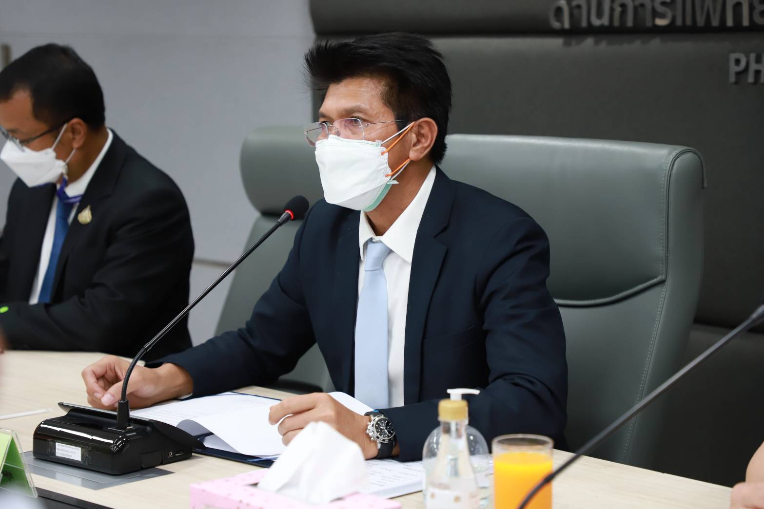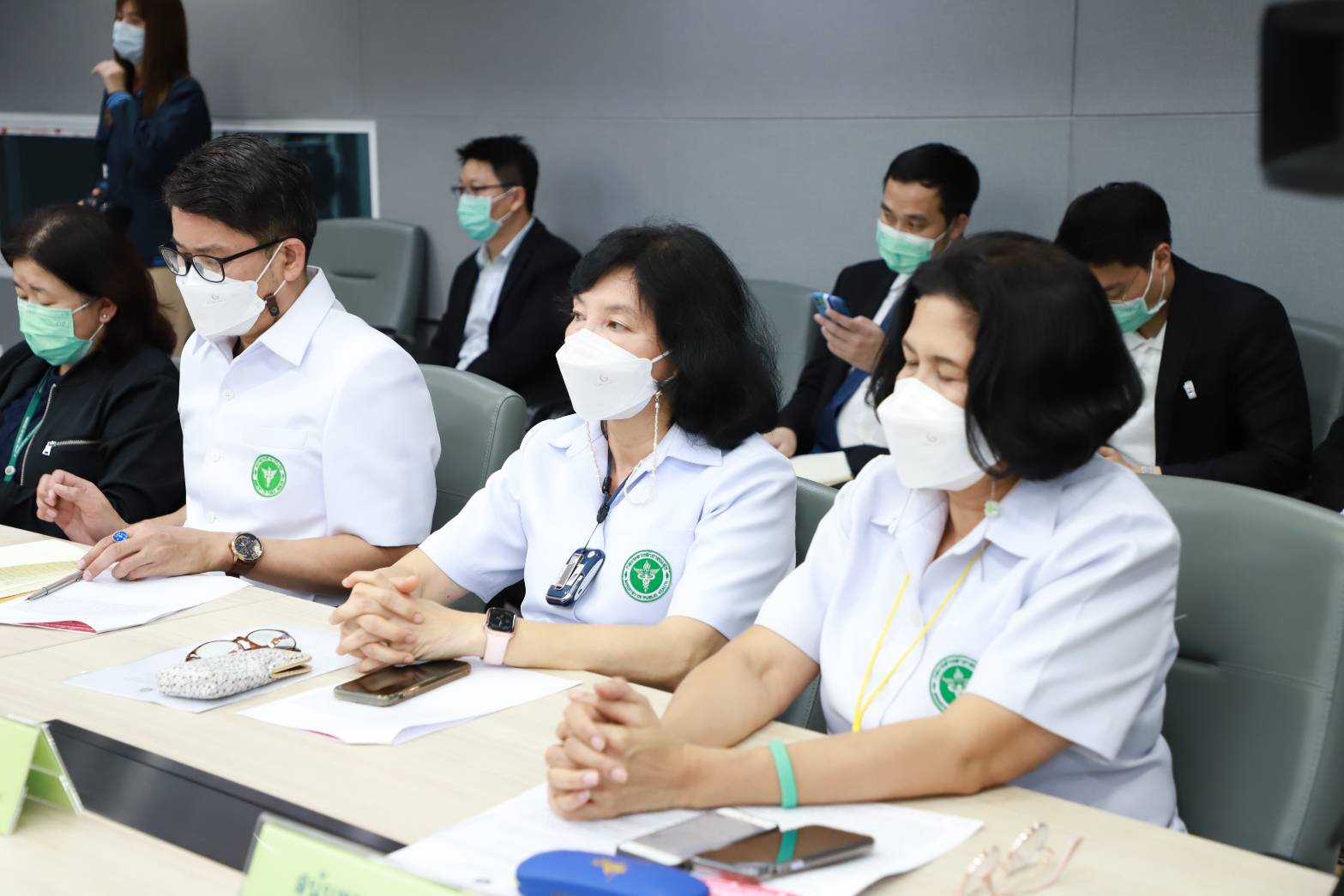 เมื่อวันที่ 24 มีนาคม 2565 นายบุญชอบ สุทธมนัสวงษ์ ปลัดกระทรวงแรงงาน มอบหมายให้ นายวรรณรัตน์ ศรีสุขใส รองปลัดกระทรวงแรงงาน ร่วมแถลงข่าวเรื่องการใช้ใบรับรองแพทย์ดิจิทัลในการสมัครงาน ลางาน ในงานแถลงข่าวความร่วมมือการพัฒนาใบรับรองแพทย์ดิจิทัลบนแพลตฟอร์มหมอพร้อมระหว่างกระทรวงสาธารณสุข กระทรวงดิจิทัลเพื่อเศรษฐกิจและสังคม กระทรวงแรงงาน และสภาอุตสาหกรรมแห่งประเทศไทย ณ ห้องประชุม PHEOC 1 ศูนย์ปฏิบัติการฉุกเฉินด้านการแพทย์และสาธารณสุข ชั้น 7 อาคาร 5 สำนักงานปลัดกระทรวงสาธารณสุข โดยมี ดร.สาธิต ปิตุเตชะ รัฐมนตรีช่วยว่าการกระทรวงสาธารณสุข เป็นประธาน พร้อมด้วยผู้บริหารจากหลายหน่วยงานที่เกี่ยวข้องร่วมแถลงข่าวด้วย