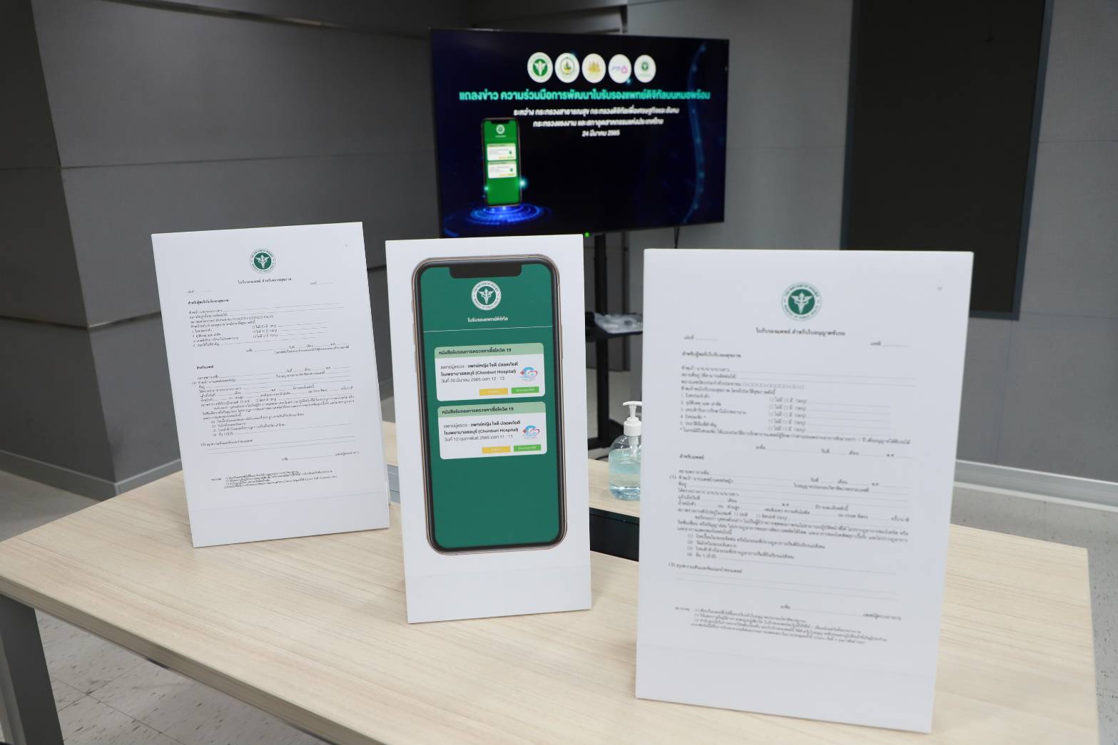 ทั้งนี้ การแถลงข่าวดังกล่าว เกิดจากความร่วมมือของกระทรวงแรงงาน กระทรวงสาธารณสุข และหน่วยงานที่เกี่ยวข้องได้พัฒนาระบบการออกใบรับรองแพทย์ดิจิทัล ด้วยเทคโนโลยี Digital Signature ที่มีมาตรฐานความปลอดภัยระดับสากล ป้องกันการปลอมแปลง สามารถยืนยันตัวบุคคล รักษาความครบถ้วนของข้อมูลและตรวจสอบย้อนหลังได้ ซึ่งแสดงข้อมูลบนหม้อพร้อม Line Official Account และ Application เพื่ออำนวยความสะดวกและเกิดประโยชน์แก่ประชาชนในการสมัครงาน ลางาน หรือเดินทางไปต่างประเทศอีกด้วย