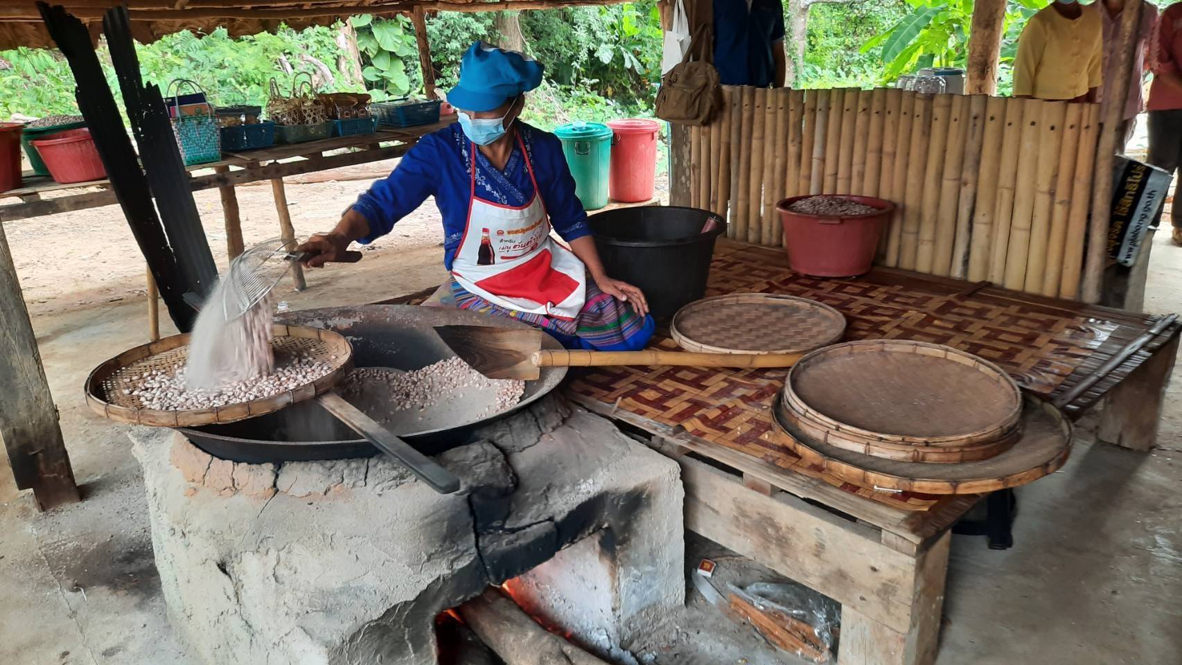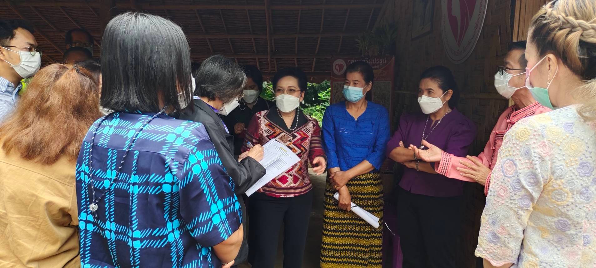 วันที่ 24 พฤศจิกายน 2565 นางบุปผา พันธุ์เพ็ง รองปลัดกระทรวงแรงงาน พร้อมด้วย นางดรุณี นิธิทวีกุล ผู้ตรวจราชการกระทรวงแรงงาน และ นายธีรเดช ถิรพร ผู้อำนวยการกองจัดทำงบประมาณด้านเศรษฐกิจ 3 สำนักงบประมาณ ลงพื้นที่ตรวจเยี่ยมและติดตามผลการดำเนินงานโครงการยกระดับเพื่อเพิ่มศักยภาพฝีมือและสมรรถนะแรงงาน หลักสูตรอบรมการแปรรูปผลผลิตทางการเกษตรถั่วลายเสือและข้าวโพด บ้านป่าปุ๊ โดยมี นายทเนตร นาคแย้ม แรงงานจังหวัดแม่ฮ่องสอน หัวหน้าส่วนราชการสังกัดกระทรวงแรงงานจังหวัดแม่ฮ่องสอน พร้อมด้วยอาสาสมัครแรงงานอำเภอเมืองแม่ฮ่องสอน ร่วมให้การต้อนรับ ณ ที่ทำการกลุ่มสตรีบ้านป่าปุ๊ ตำบลผาบ่อง อำเภอเมืองแม่ฮ่องสอน จังหวัดแม่ฮ่องสอน