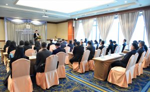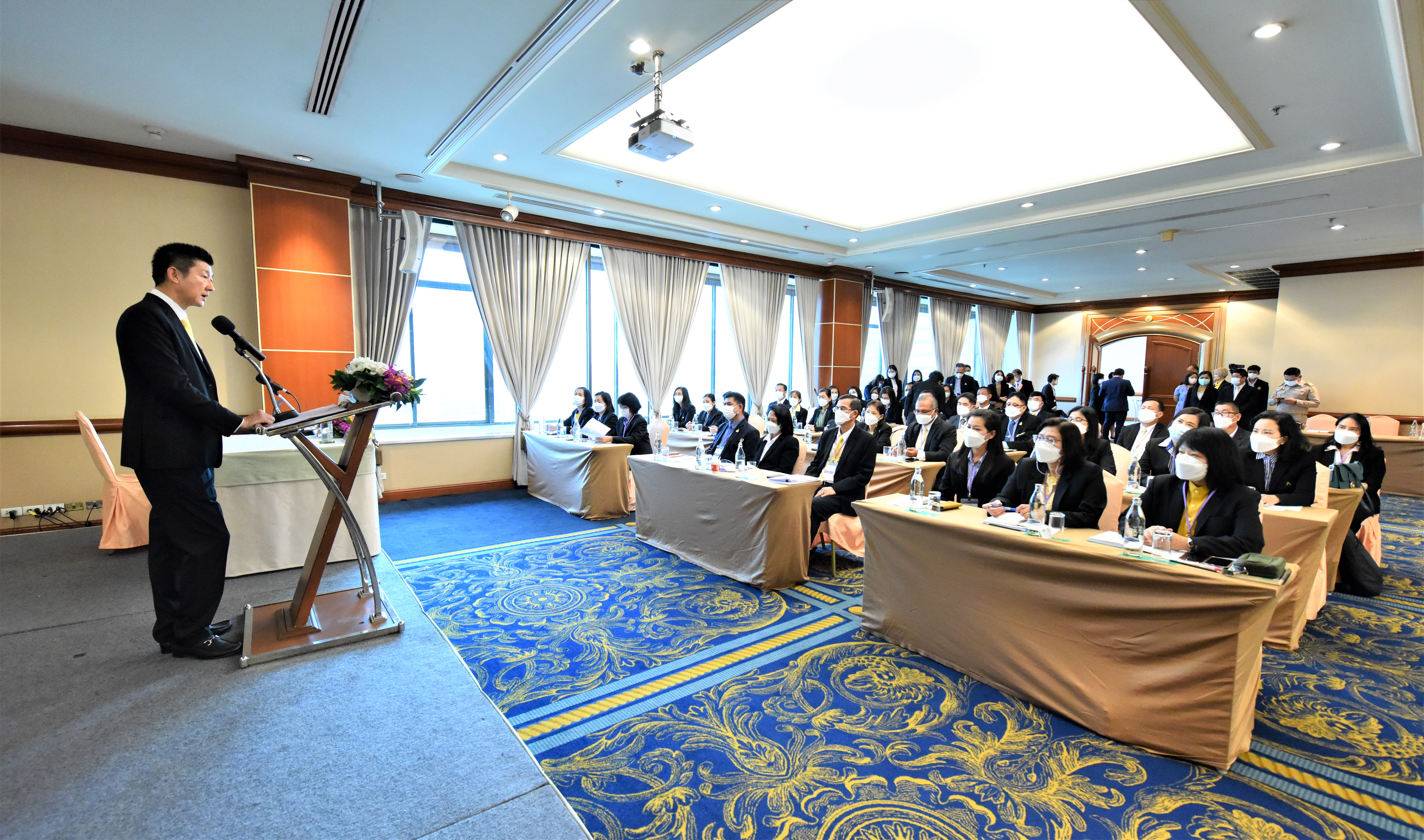 Mr. Boonchob continued that in addition to the academic knowledge gained from qualified speakers and program advisors, the course also provides a study tour in the country about health management, managing good people, occupational health and working environment, emergency management, and social enterprise, the implementation of labour relations and business management in times of crisis in Samut Prakan, Chonburi, and Rayong provinces. Trainees can use their knowledge and experiences gained and apply them for further benefit and improve the performance of official duties.