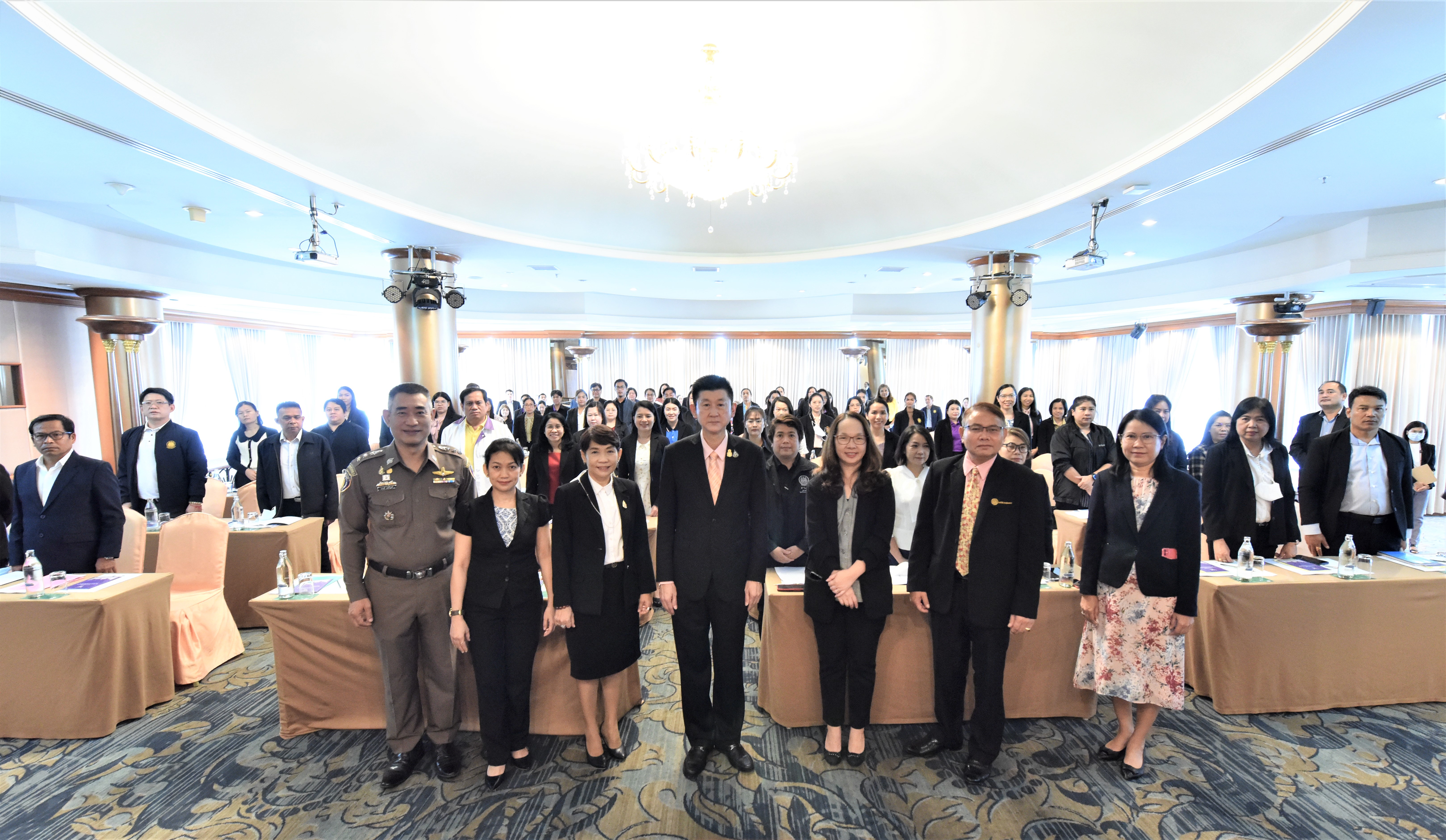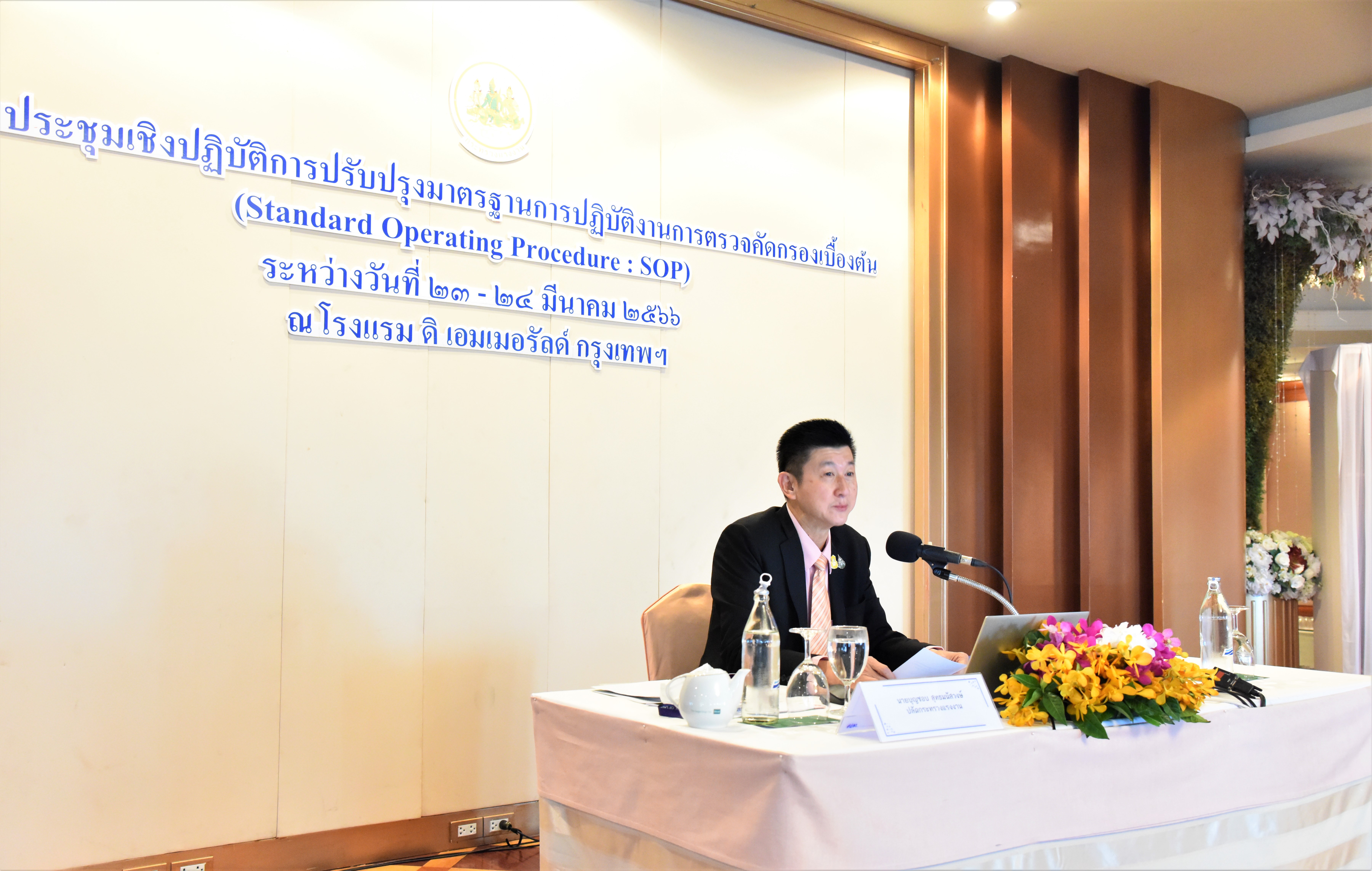 On March 23, 2023, the Permanent Secretary of Labour, Mr. Boonchob Suttamanaswong, presided over the opening ceremony of the workshop on reviewing Standard Operating Procedures (SOP) and evaluating the implementation of the action plans on the National Referral Mechanism, case management, and supporting the protection of victims of human trafficking, and forced labour or services in 2022. Assistant Permanent Secretary of Labour, Ms. Kornjirat Pongchansathorn, Executive Director of the Anti-Human Trafficking Commission, Ms. Apiradee Thienthong, representatives from the Ministry of Interior, the National Police Agency, the Ministry of Social Development and Human Security, and officials from the 76 Provincial Labour Office also joined the occasion at the Emerald Hotel, Ratchadaphisek Road, Din Daeng, Bangkok.