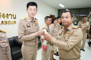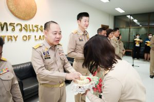 วันที่ 28 กันยายน 2566 เวลา 09.00 น. นายวรรณรัตน์ ศรีสุขใส รองปลัดกระทรวงแรงงานและโฆษกกระทรวงแรงงาน นำคณะผู้บริหารและข้าราชการในสังกัดกระทรวงแรงงาน แสดงมุทิตาจิตแด่ นายบุญชอบ สุทธมนัสวงษ์ ปลัดกระทรวงแรงงาน นายประทีป ทรงลำยอง รองปลัดกระทรวงแรงงาน นายนิยม สองแก้ว อธิบดีกรมสวัสดิการและคุ้มครองแรงงาน นางดรุณี นิธิทวีกุล ผู้ตรวจราชการกระทรวงแรงงาน นางต้องใจ สุทัศน์ ณ อยุธยา ผู้ตรวจราชการกระทรวงแรงงาน และ ผู้บริหารระดับสูงหน่วยงานในสังกัดกระทรวงแรงงาน เนื่องในวาระเกษียณอายุราชการ ณ บริเวณโถงหน้าห้องปลัดกระทรวงแรงงาน ชั้น 7 กระทรวงแรงงาน
