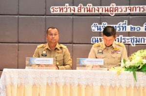 ด้าน พันตำรวจโท กีรป กฤตธีรานนท์ เลขาธิการสำนักงานผู้ตรวจการแผ่นดิน กล่าวว่า สำนักงานผู้ตรวจการแผ่นดินและกระทรวงแรงงานมีเจตจำนงร่วมกันที่จะร่วมมือในการปฏิบัติงานเพื่อแก้ไขความเดือดร้อนหรือความไม่เป็นธรรม เพื่อเสริมสร้างธรรมาภิบาลในสังคมตามภารกิจของสำนักงานผู้ตรวจการแผ่นดิน และการดูแลประชาชนด้านการประกอบอาชีพและความมั่นคงทางเศรษฐกิจและสังคมให้กับกำลังคนในวัยแรงงาน ทั้งแรงงานในระบบและนอกระบบตามภารกิจของกระทรวงแรงงาน รวมถึงแนวทางการพัฒนาตามกรอบการพัฒนาที่ยั่งยืน หรือ Sustainable Development Goals (SDGs) ขององค์การสหประชาชาติ ในการมุ่งส่งเสริมการเจริญเติบโตทางเศรษฐกิจที่ยั่งยืน และการดำเนินนโยบายเพื่อขจัดปัญหาแรงงานผิดกฎหมาย แรงงานเด็ก แรงงานบังคับ แรงงานทาส การค้ามนุษย์ การลดความไม่เสมอภาคภายในและระหว่างประเทศ การส่งเสริมสังคมสงบสุขยุติธรรม และการพัฒนาที่ยั่งยืน ดังนั้น จึงเห็นว่าควรมีการประสานความร่วมมือในการสร้างเครือข่ายการทำงานร่วมกันผ่านบัณฑิตแรงงานและอาสาสมัครแรงงานในการเสริมสร้างประสิทธิภาพพในการปฏิบัติงานของทั้งสองหน่วยงานโดยมุ่งเน้นให้ประชาชนได้รับประโยชน์จากภารกิจของทั้งสองหน่วยงาน