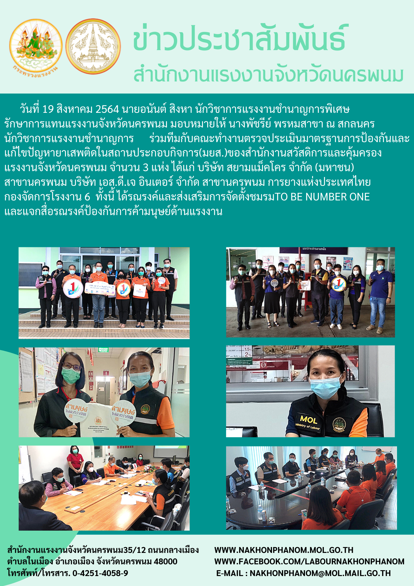 การป้องกันและแก้ไขปัญหายาเสพติดในสถานประกอบกิจการ(มยส.)ของสำนักงานสวัสดิการและคุ้มครองแรงงานจังหวัดนครพนม