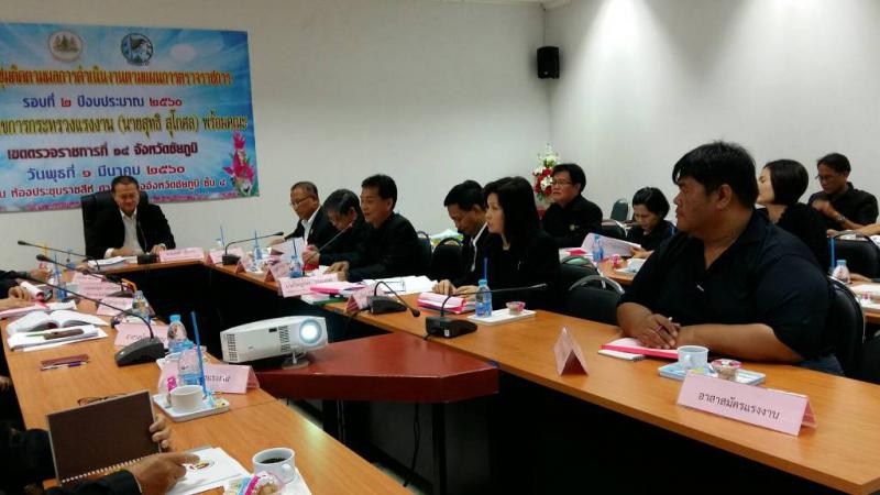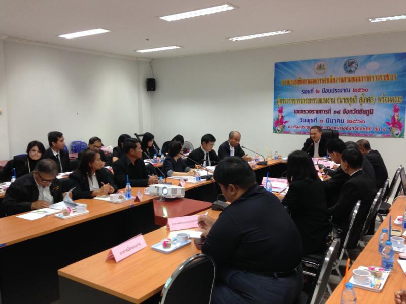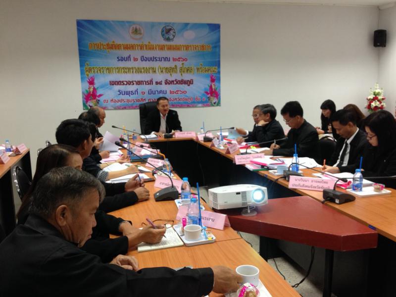 เมื่อวันที่ 1 มีนาคม 2560 นายสุทธิ สุโกศล ผู้ตรวจราชการกระทรวงแรงงานและคณะ ประชุมแรงงานจังหวัดชัยภูมิ และเจ้าหน้าที่เพื่อติดตามการดำเนินงานพร้อมทั้งแนะนำแนวทางการปฏิบัติงาน ณ ห้องประชุมสำนักงานแรงงานจังหวัดชัยภูมิ