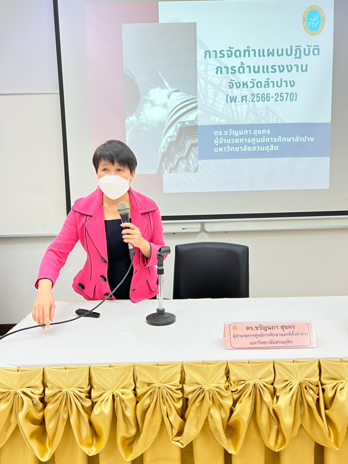 วันอังคาร 1 มี.ค.2565 : 09.00 น. นายสันติ รังษิรุจิ รองผู้ว่าราชการจังหวัดลำปาง ประธานเปิดการประชุมจัดทำแผนปฏิบัติการด้านแรงงานจังหวัดลำปาง (พ.ศ.2566 – 2570) ณ ศูนย์การศึกษานอกที่ตั้งลำปาง มหาวิทยาลัยสวนดุสิต ผู้เข้าประชุมประกอบด้วยหัวหน้าส่วนราชการที่เกี่ยวข้องหรือผู้แทน ภาคเอกชน และประชาชน รวม 30 คน โดย น.ส.ปาริชาติ สวนใจ แรงงานจังหวัดลำปาง กล่าวรายงานการประชุมฯ