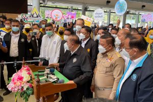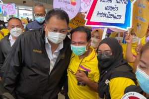 เมื่อวันที่ 2 มีนาคม 2565 นายสุชาติ ชมกลิ่น รัฐมนตรีว่าการกระทรวงแรงงาน ร่วมคณะ พล.อ.ประวิตร วงษ์สุวรรณ รองนายกรัฐมนตรี พร้อมคณะ ลงพื้นที่จังหวัดนราธิวาส ตรวจราชการประชุมติดตามสถานการณ์อุทกภัยในพื้นที่ภาคใต้และมอบถุงยังชีพให้ความช่วยเหลือแก่ประชาชนที่ประสบอุทกภัย ณ ศาลากลางจังหวัดนราธิวาส โดยมี นายอรเทพ อินทรสกุล ผู้ตรวจราชการกระทรวงแรงงาน หัวหน้าส่วนราชการหน่วยงานในสังกัดกระทรวงแรงงานจังหวัดนราธิวาส ร่วมต้อนรับ โอกาสนี้ รมว.แรงงาน ยังได้พบปะให้กำลังใจอาสาสมัครแรงงานและบัณฑิตแรงงานของจังหวัดนราธิวาสที่มาร่วมต้อนรับด้วย ซึ่งอาสาสมัครแรงงานและบัณฑิตแรงงานเหล่านี้มีภารกิจในการประสานการให้บริการด้านแรงงานในพื้นที่ เพื่อให้ประชาชนมีงานทำ มีทักษะฝีมือ มีอาชีพ มีรายได้ ได้รับคุ้มครองและมีหลักประกันทางสังคมที่ยั่งยืนอีกด้วย