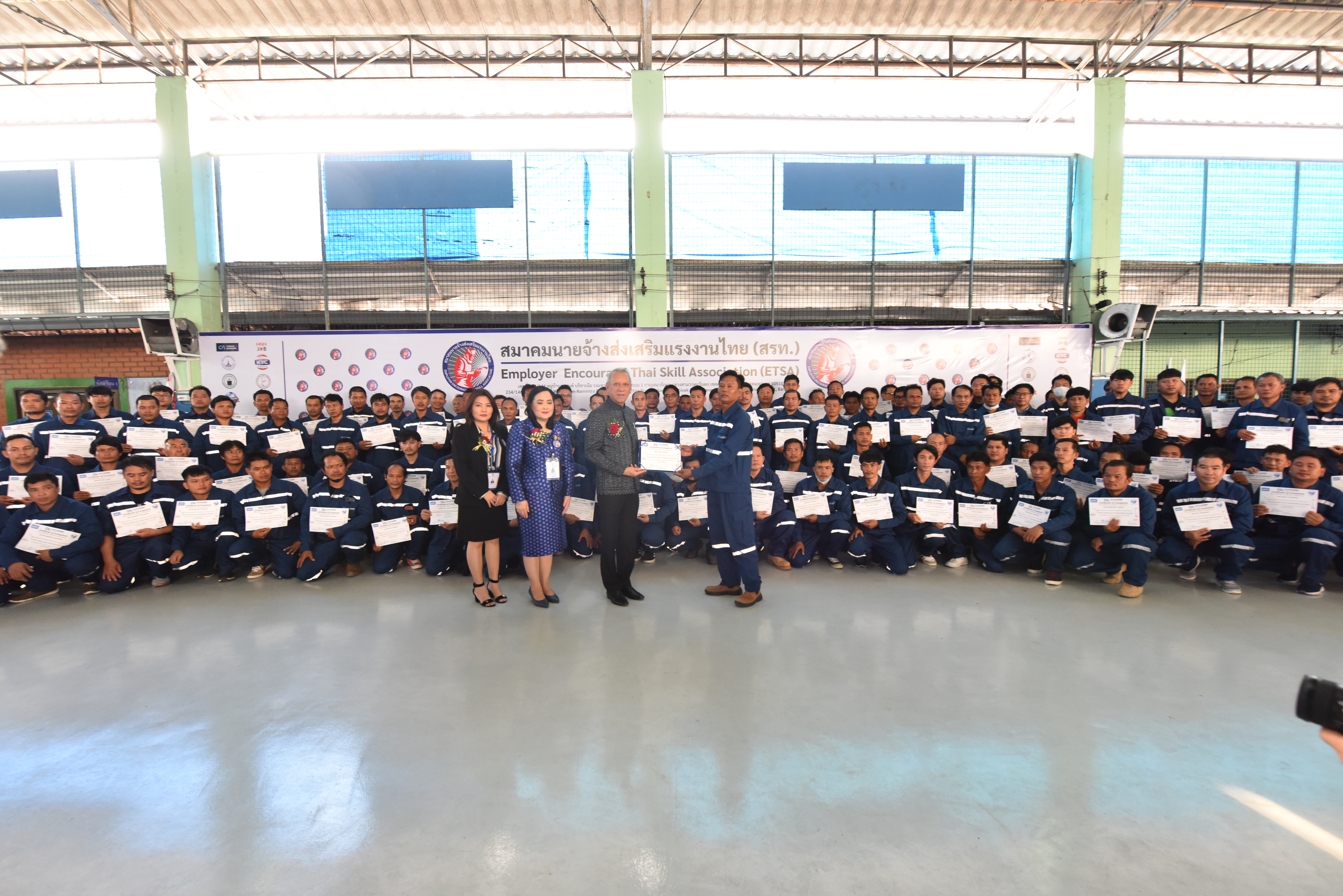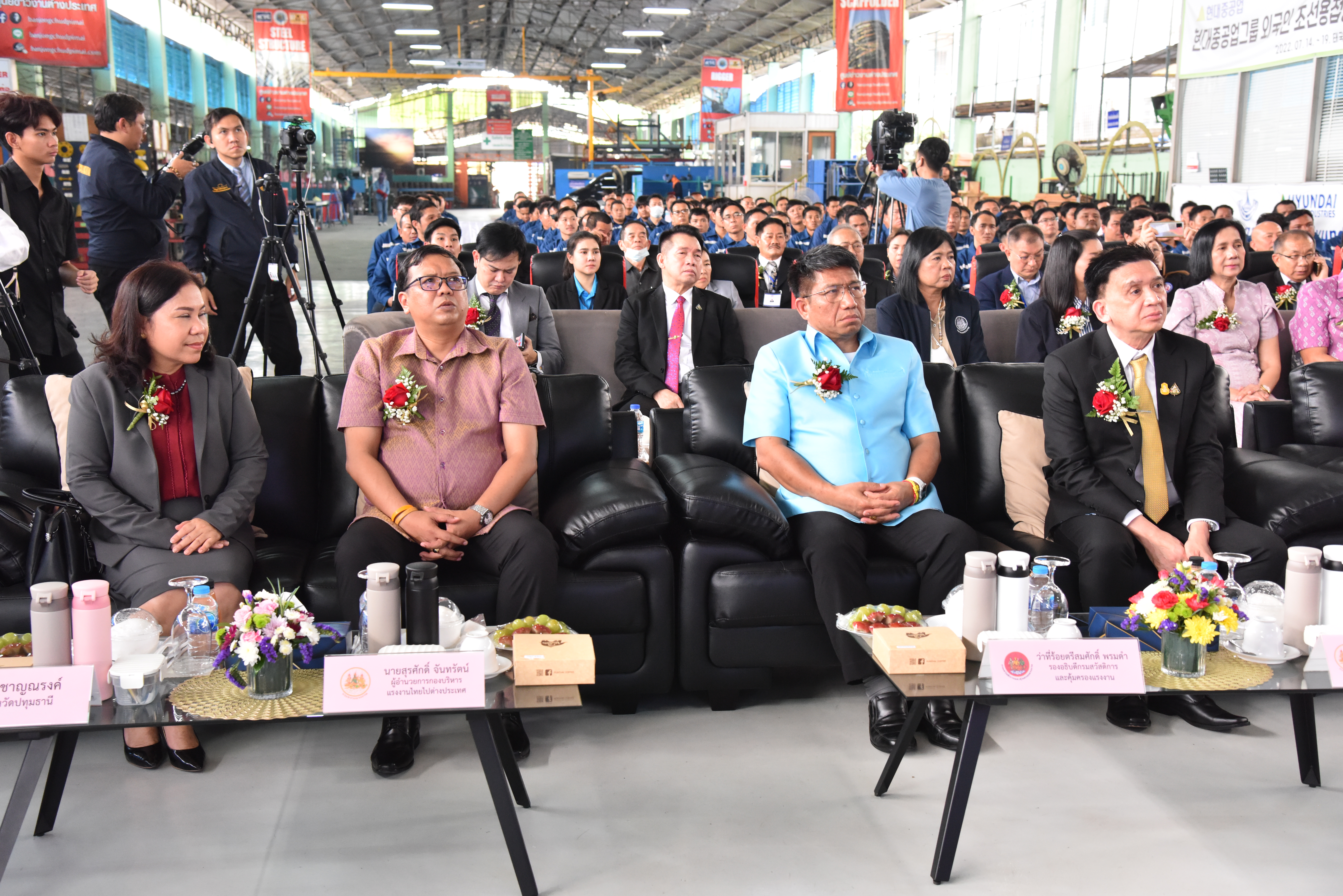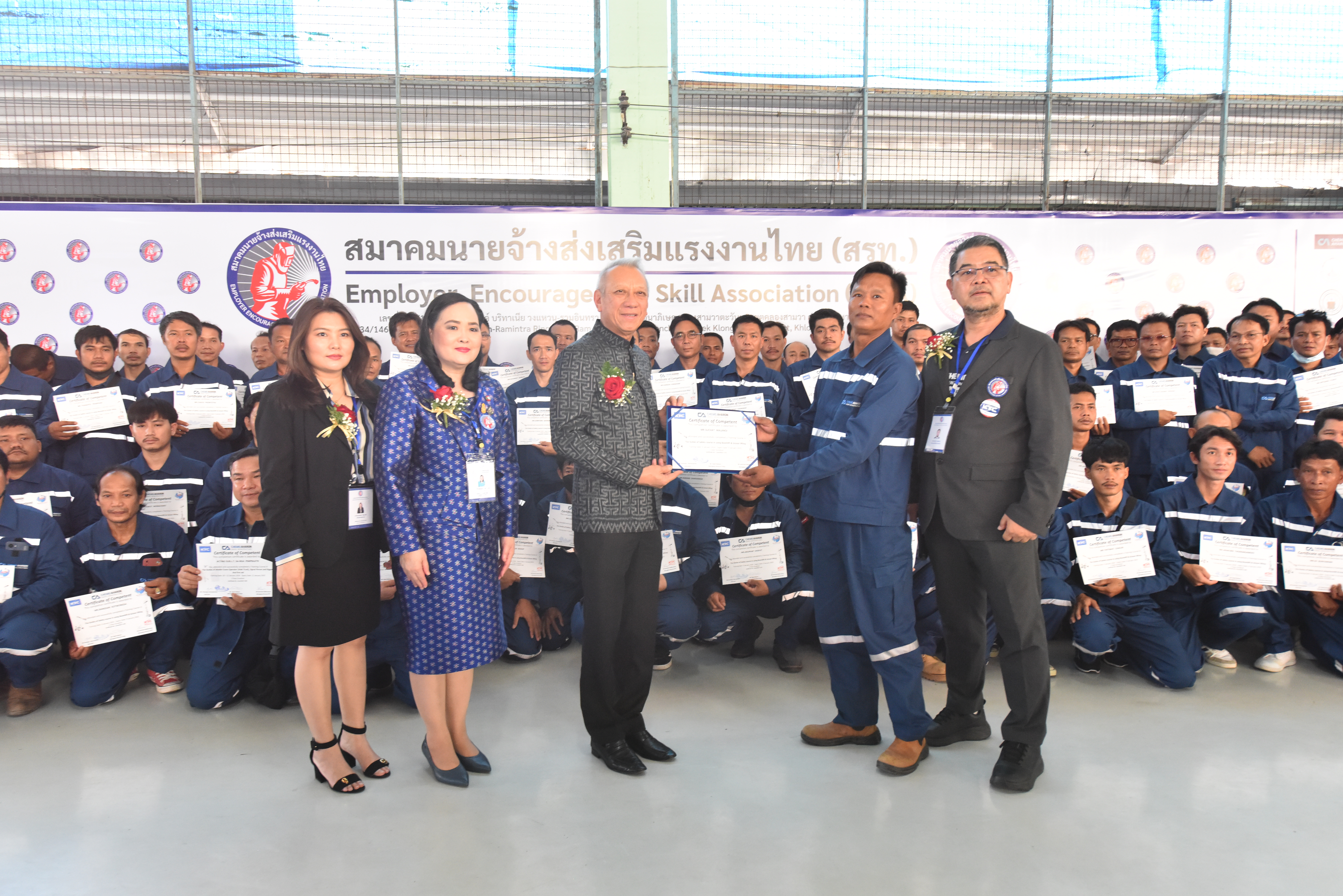On January 30, 2024, the Labour Minister, Mr. Phiphat Ratchakitprakarn, chaired the ceremony to present certificates to Thai workers who passed training and skill assessments for job seekers. He also paid a visit to the Flux Core 3G welding training in preparation for work in the shipyard industry in South Korea. The Permanent Secretary of Labour, Mr. Pairoj Chotiksetian, and the Ministry of Labour’s senior executives joined in honour of the ceremony. Pathum Thani Provincial Governor, Mr. Khomsan Yanwattana, Advisory Chairperson of the Employers Promotion of Thai Workers Association, Ms. Aranya Sakulkoson, business from the private sector and heads of government agencies under the Ministry of Labour in Pathum Thani Province joined in giving a welcome at the KTC Skill Assessment Center, Lat Sawai Subdistrict, Lam Luk Kam District, Pathum Thani Province.
