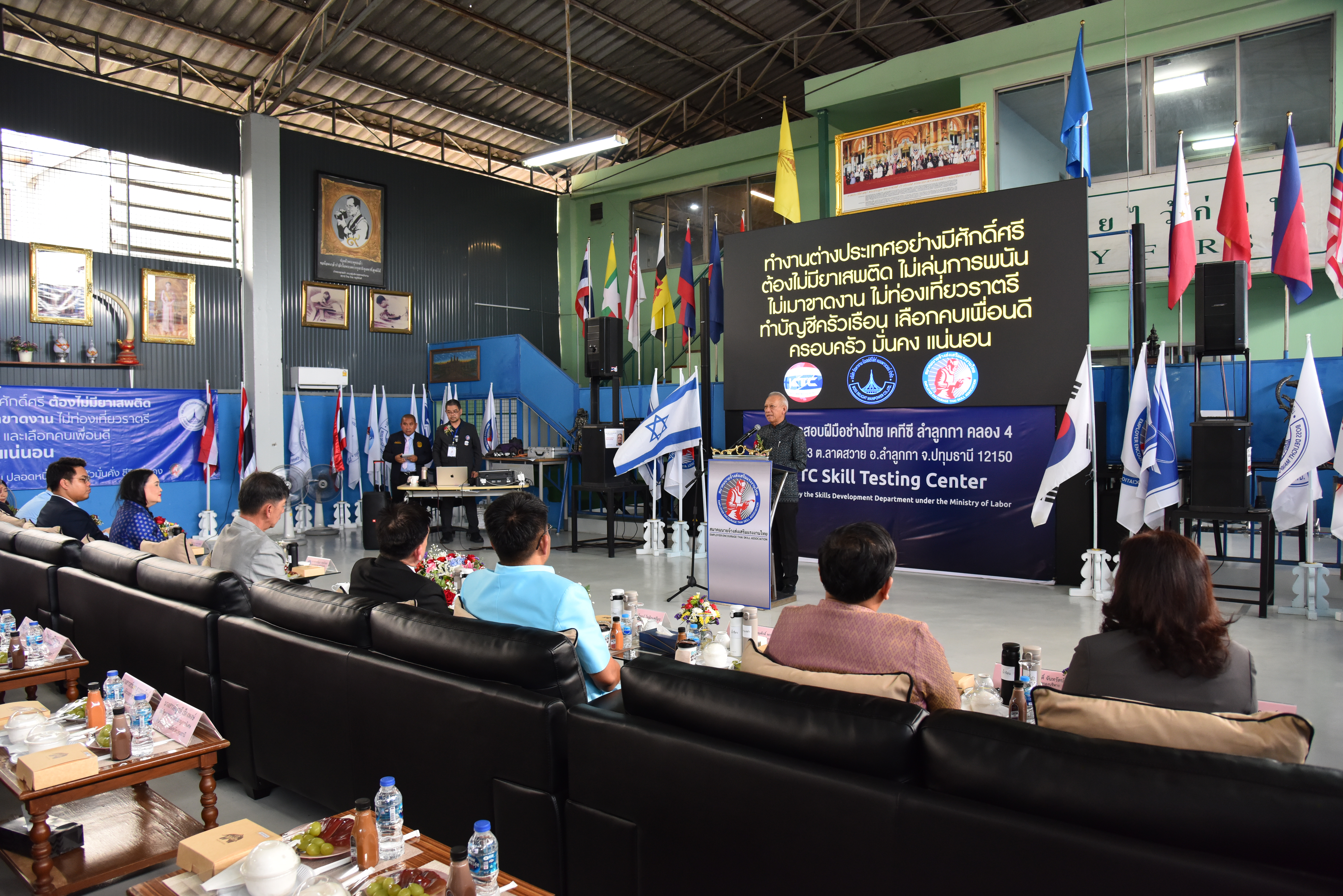 นายพิพัฒน์ รัชกิจประการ รัฐมนตรีว่าการกระทรวงแรงงาน เปิดเผยว่า การเตรียมความพร้อมให้แรงงานไทยไปทำงานต่างประเทศนั้น ทักษะภาษาอังกฤษนับเป็นทักษะที่สำคัญอย่างยิ่ง เพราะต้องใช้ในการสื่อสารให้สามารถทำงานได้อย่างถูกต้อง รวมถึงต้องใช้ติดต่อสื่อสารในการดำรงชีวิตประจำวัน ดังนั้น ผู้ที่ผ่านการทดสอบทักษะฝีมือเพื่อไปทำงานต่างประเทศต้องได้รับการฝึกทักษะด้านภาษาควบคู่กันไปด้วย ต้องขอชื่นชมผู้ที่ผ่านการฝึกอบรม ซึ่งได้ทราบว่ามีจำนวนทั้งสิ้น 120 คน เป็นผู้ที่ผ่านการทดสอบทักษะฝีมือเพื่อไปทำงานต่างประเทศ ด้านงานเชื่อม รวมถึงผ่านการอบรมในด้านอื่น ๆ เพิ่มเติม อาทิ ผ่านการฝึกอบรมความรู้สัญญาณเครน (Rigger) การฝึกอบรมการขับรถบูมลิฟท์ เอ็กลิฟท์ การติดตั้งนั่งร้านแบบริงล็อค การเคลื่อนย้ายสิ่งของในที่สูง และความปลอดภัยในที่ทำงาน ทำให้เชื่อมั่นว่าผู้ที่ผ่านฝึกอบรมในครั้งนี้มีความรู้ ทักษะ และสามารถไปทำงานในต่างประเทศในฐานะแรงงานฝีมือ มีรายได้เลี้ยงตัวเองและส่งกลับมายังครอบครัว เพื่อนำรายได้เข้าสู่ประเทศต่อไป