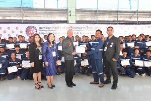 The Labour Minister, Mr. Phiphat Ratchakitprakarn, said that in preparing Thai workers to work abroad, English language skills are extremely important as they are used in communications for effective work and daily life. Therefore, those who pass the skills assessment to work abroad must also receive language skills training. He praised those who have completed the training, in which a total of 120 people have passed the skills assessment to work abroad in welding work, including additional training in other areas, such as crane signal knowledge (rigger), driving boom lifts and ex-lifts, installing ring lock scaffolding, moving things in high places and workplace safety. It is believed that those who pass this training will have the knowledge, skills, and capabilities to work abroad as skilled workers, have an income to support themselves and their families and contribute income to the country.
