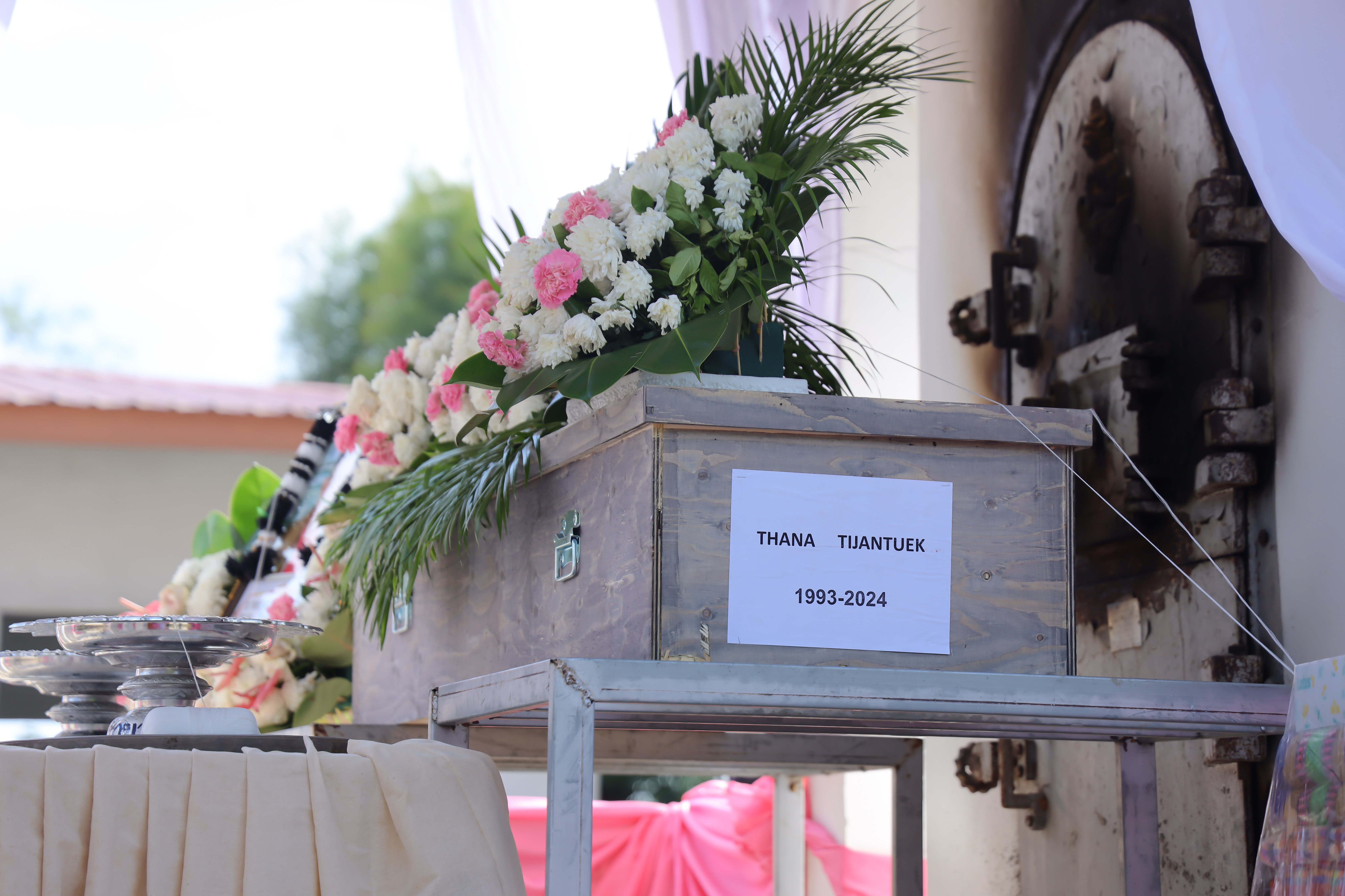 วันที่ 11 พฤศจิกายน 2567 เวลา 15.00 น. นายบุญสงค์ ทัพชัยยุทธ์ ปลัดกระทรวงแรงงาน มอบหมายให้ นางสาวบุปผา เรืองสุด อธิบดีกรมพัฒนาฝีมือแรงงาน รักษาราชการแทน รองปลัดกระทรวงแรงงาน ผู้แทนกระทรวงแรงงาน เป็นประธานพิธีฌาปนกิจศพ นายธนา ติจันทึก แรงงานไทยชาวจังหวัดนครราชสีมา ที่เสียชีวิตจากเหตุจรวดโจมตีจากเลบานอนไปยังเมืองเมตูลาทางตอนเหนือของรัฐอิสราเอล เมื่อวันที่ 31 ตุลาคม 2567 ที่ผ่านมา โดยมี นายอำเภอสีคิ้ว หัวหน้าส่วนราชการสังกัดกระทรวงแรงงานจังหวัดนครราชสีมา ที่มาร่วมงานและแสดงความเสียใจกับญาติของนายธนาในครั้งนี้ ร่วมวางดอกไม้จันทน์ และประกอบพิธีฌาปนกิจศพแสดงความอาลัยเป็นครั้งสุดท้าย ณ วัดสองพี่น้องเจริญธรรม ตําบลกฤษณา อำเภอสี่คิ้ว จังหวัดนครราชสีมา ท่ามกลางความเศร้าโศกเสียใจโดยในระหว่างเคลื่อนย้ายศพของนายธนานั้น ภรรยาและแม่ของนายธนายังคงอยู่ในอาการเศร้าโศกเสียใจ ร้องไห้กอดรูปของนายธนาเพราะยังคงทำใจไม่ได้กับการสูญเสียสามีและลูกชายในครั้งนี้