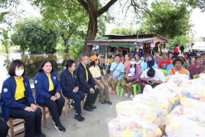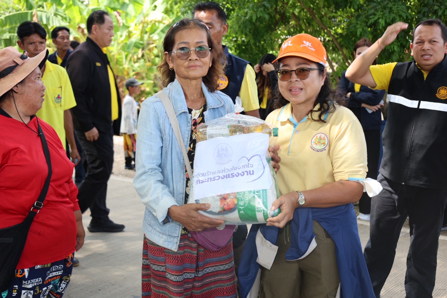 โดย กระทรวงแรงงาน ได้จัดเตรียมถุงยังชีพ ประกอบด้วย ข้าวสาร น้ำปลา น้ำมันพืช น้ำดื่ม ปลากระป๋อง มอบให้กับชาวบ้าน ในพื้นที่หมู่ที่ 12 ที่ได้รับผลกระทบจากน้ำท่วมสูง พร้อมกันนี้ ยังได้ร่วมกับหน่วยงานที่เกี่ยวข้อง นำยารักษาโรค มามอบให้กับชาวบ้านในครั้งนี้ด้วย