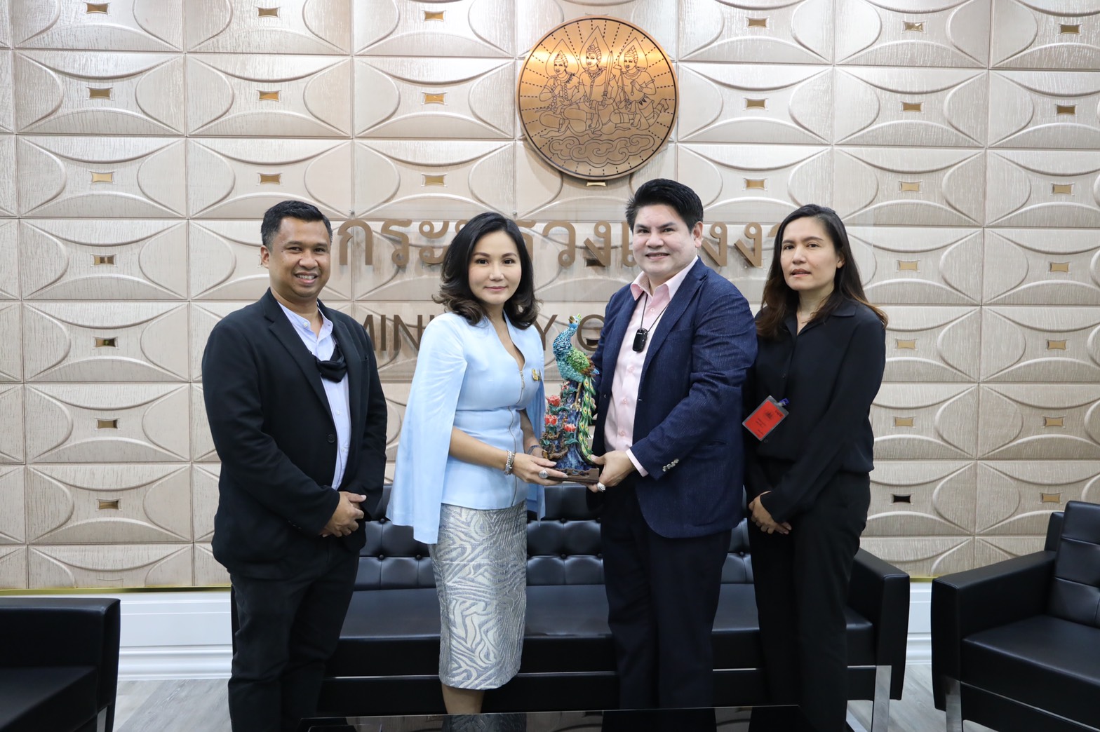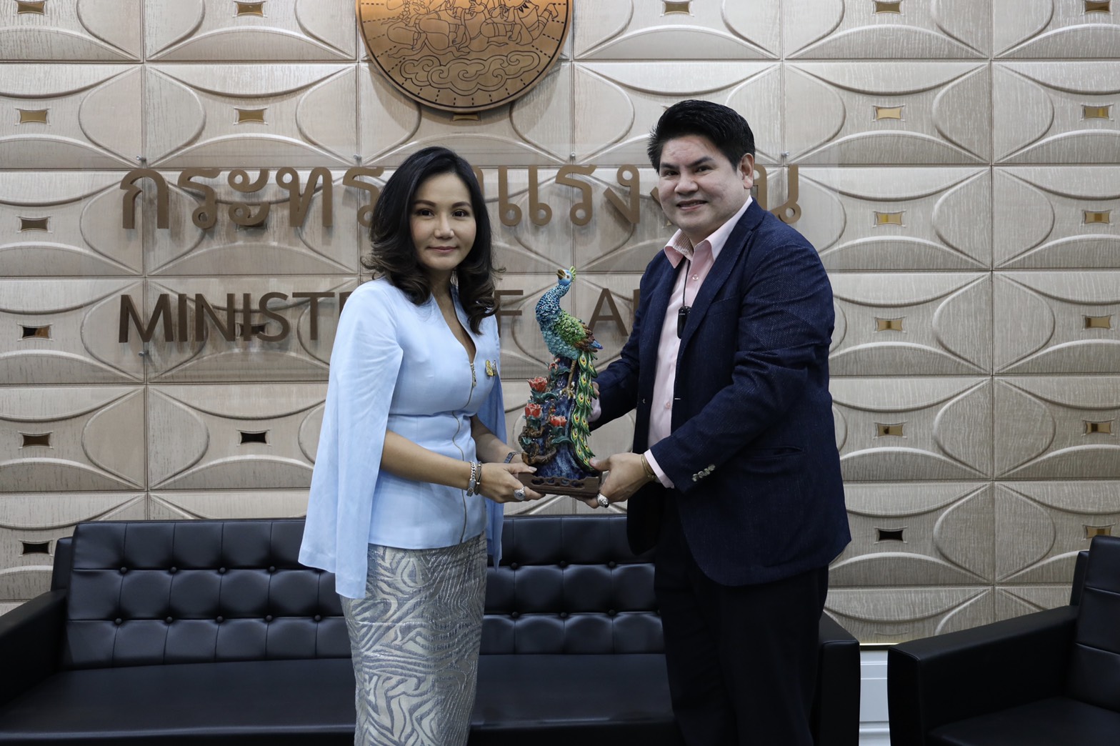 วันที่ 31 สิงหาคม 2563 ศาสตราจารย์ นฤมล ภิญโญสินวัฒน์ รัฐมนตรีช่วยว่าการกระทรวงแรงงาน ให้การต้อนรับคุณณัฐฐินันท์ สุขสมพงษ์ ประธานกรรมการบริหาร บริษัท แคท บัซซ์ ทีวี จำกัด และคณะ ที่ได้เข้าแสดงความยินดีในโอกาสดำรงตำแหน่งรัฐมนตรีช่วยว่าการกระทรวงแรงงาน รวมถึงหารือแนวทางการสร้าง Smart Governance ด้วยการสร้าง Digital Service Platform บน Line Official Account ของกรมพัฒนาฝีมือแรงงาน ณ ห้องรับรองพิเศษ ชั้น 6 อาคารกระทรวงแรงงาน