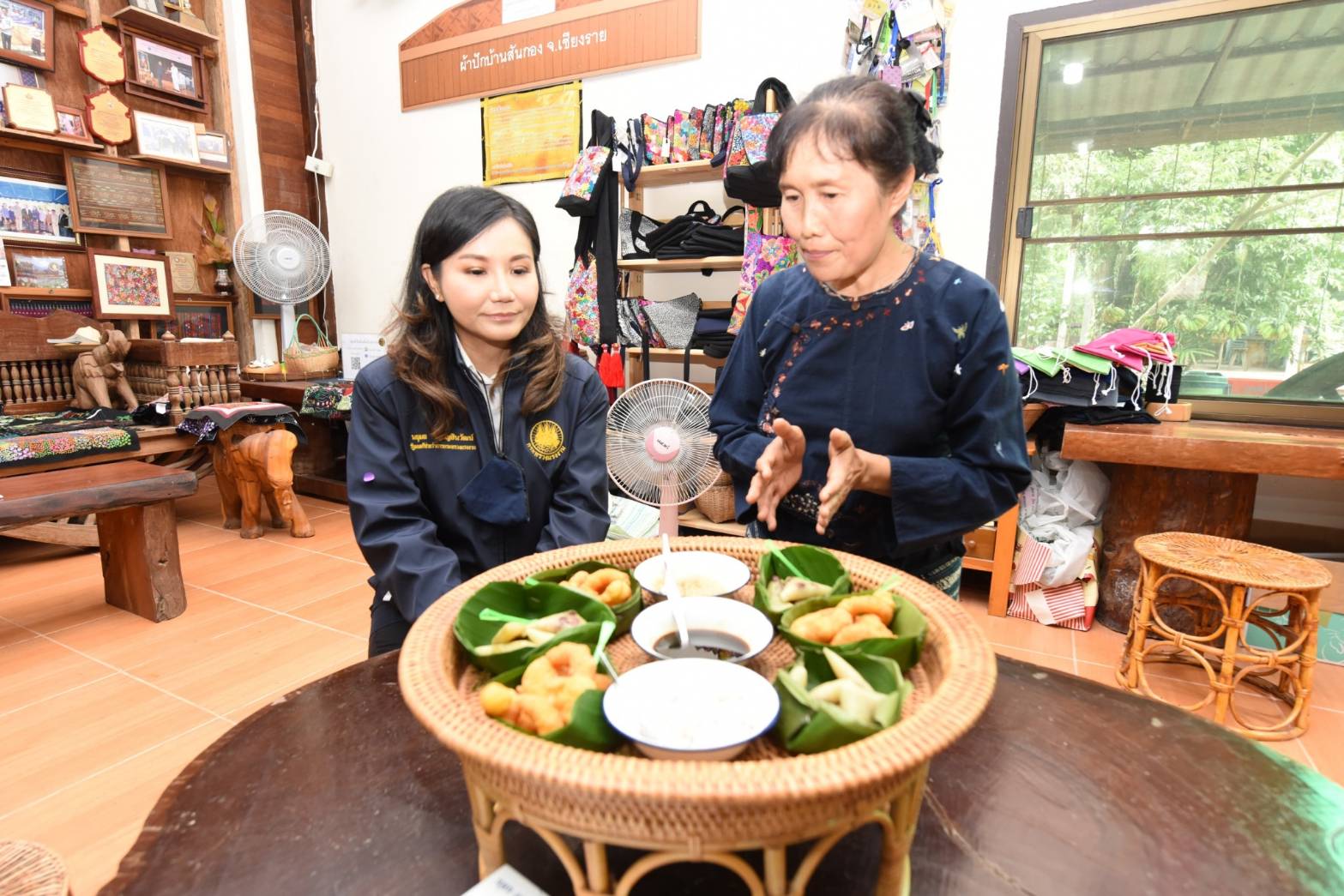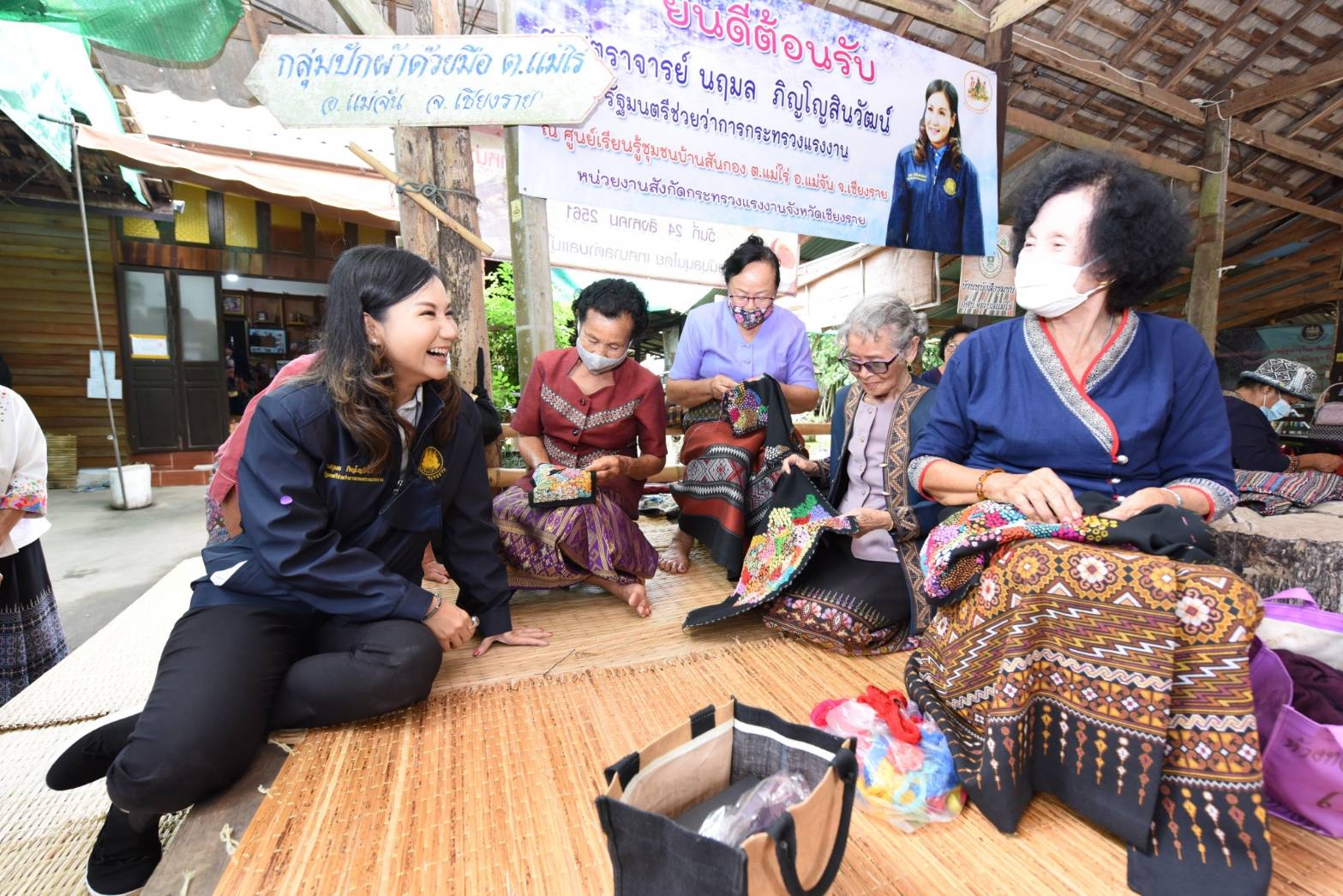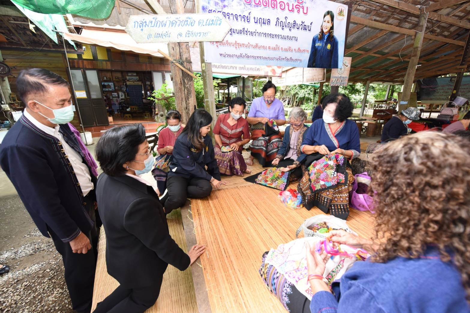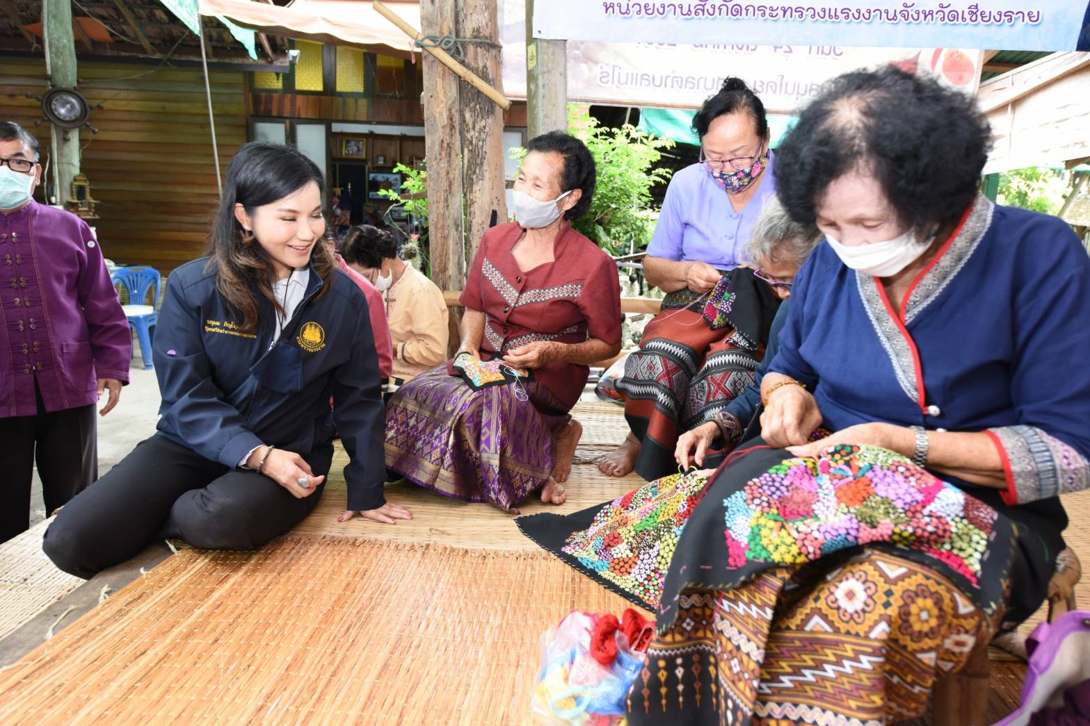 วันที่ 12 กันยายน 2563 ศาสตราจารย์ นฤมล ภิญโญสินวัฒน์ รัฐมนตรีช่วยว่าการกระทรวงแรงงาน พร้อมด้ายนางสาวอำพันธ์ ธุววิทย์ รองปลัดกระทรวงแรงงาน และนายธวัช เบญจาทิกุล อธิบดีกรมพัฒนาฝีมือแรงงาน ได้เยี่ยมชมและให้กำลังใจกลุ่มผู้สูงอายุ จำนวน 50 คน ที่ผ่านการฝึกอบรมพัฒนามักษะฝีมือ และได้รับการส่งเสริมการมีงานทำ จากหน่วยงานของกระทรวงแรงงาน อาทิ การปักผ้า การแปรรูปผลิตภัณฑ์จากไม้ไผ่ การทำผลิตภัณฑ์ของใช้ การแปรรูปอาหารทำไวท์ผลไม้ และของตกแต่งจากเศษวัสดุเหลือใช้ ณ ศูนย์เรียนรู้ชุมชนบ้านสันกอง หมู่ 2 ต.แม่ไร่ อ.แม่จัน จ.เชียงราย