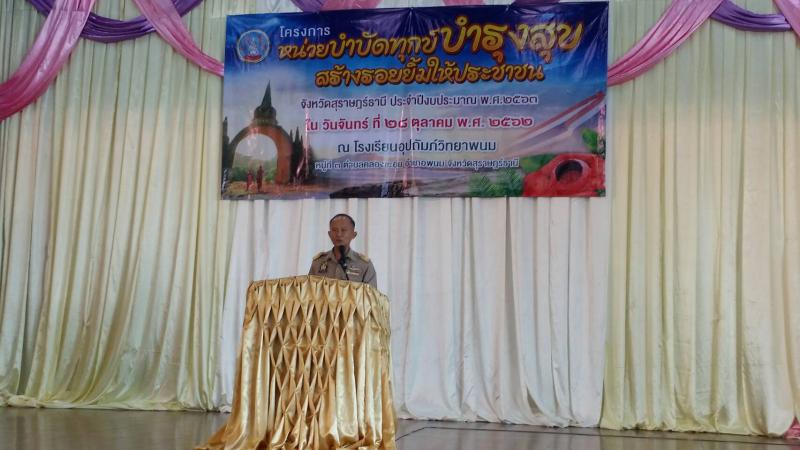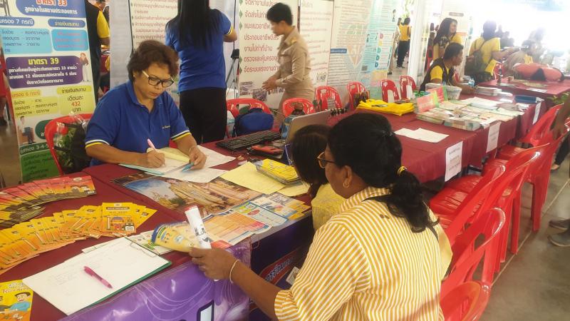 วันที่ 28 ตุลาคม 2562 นางสาวอารีย์ การธิโร แรงงานจังหวัดสุราษฎร์ธานี พร้อมหัวหน้าส่วนราชการในสังกัดฯ นำข้าราชการ เจ้าหน้าที่ อาสาสมัครแรงงานและศูนย์บริการร่วมกระทรวงแรงงานจังหวัดสุราษฎร์ธานี (เคลื่อนที่) ไปให้บริการด้านแรงงาน เช่น การให้บริการความรู้ข้อมูลข่าวสารด้านแรงงาน รับสมัครผู้ประกันตน ม.40 ให้คำปรึกษาแนะนำด้านอาชีพ และกฎหมายแรงงาน รับสมัครงาน โดยมีตำแหน่งงานว่างกว่า 200 ตำแหน่ง 800 อัตรา รับสมัครการฝึกพัฒนาทักษะฝีมือ และการสาธิตอาชีพอิสระ (ทำขนมบัวลอยไม้เสียบ) ร่วมในโครงการ “หน่วยบำบัดทุกข์ บำรุงสุข สร้างรอยยิ้มให้ประชาชน” ณ โรงเรียนอุปถัมภ์วิทยาพนม หมู่ที่ 3 ตำบลคลองชะอุ่น อำเภอพนม จังหวัดสุราษฎร์ธานี โดยมี นายธีระ อนันตเสรีวิทยา รองผู้ว่าราชการจังหวัดสุราษฎร์ธานี เป็นประธานในพิธี