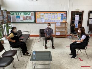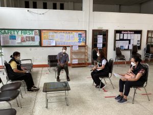 วันพฤหัสบดีที่ ๒๓ กันยายน ๒๕๖๔ เวลา ๑๓.๐๐ น. นายวินัย มะยมทอง แรงงานจังหวัดนครราชสีมามอบหมายให้นางสรงชล เกิดทองคำ นักวิชาการแรงงานชำนาญการ และนายธนกิจ เขียวสอนทอง นักวิชาการแรงงาน ติดตามการดำเนินการควบคุมโรคโดยหลักการ Bubble and Seal เพื่อป้องกันการแพร่เชื้อระหว่างกลุ่มคนในกลุ่มก้อนของการระบาดกับชุมชนรอบนอก ป้องกันการเสียชีวิต และลดผลกระทบทางเศรษฐกิจสังคมจากการหยุดกิจการ และเพื่อให้เกิดประสิทธิภาพสูงสุดในการบริหารจัดการและการควบคุมโรคติดเชื้อไวรัสโคโรนา 2019 ณ โรงงานแหลมทองโพลทริ ตำบลสูงเนิน อำเภอสูงเนิน