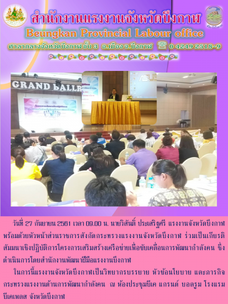 นายวิสันติ์ ประเสริฐศรี แรงงานจังหวัดบึงกาฬ ร่วมเป็นเกียรติโครงการสัมมนาเชิงปฏิบัติการ